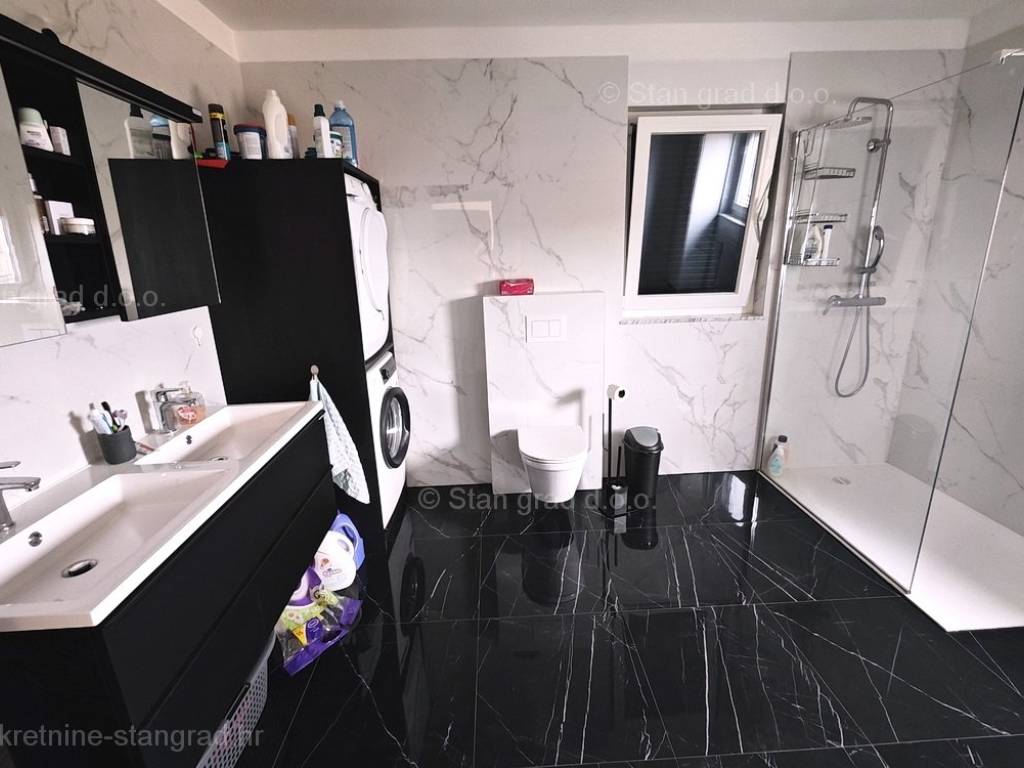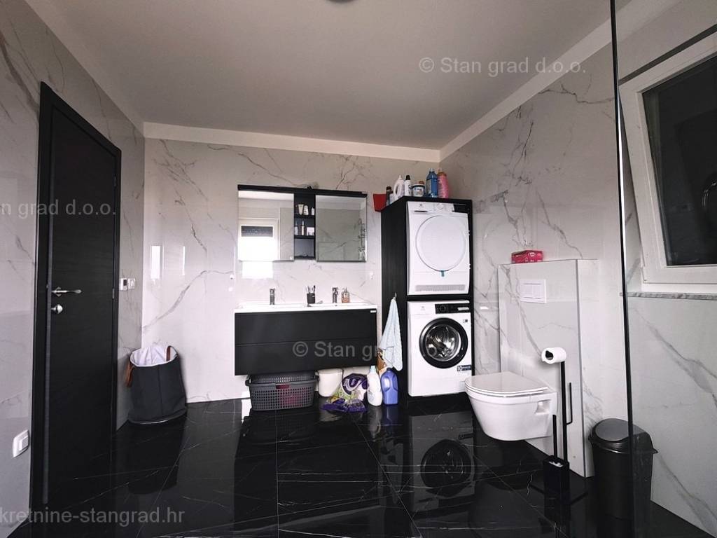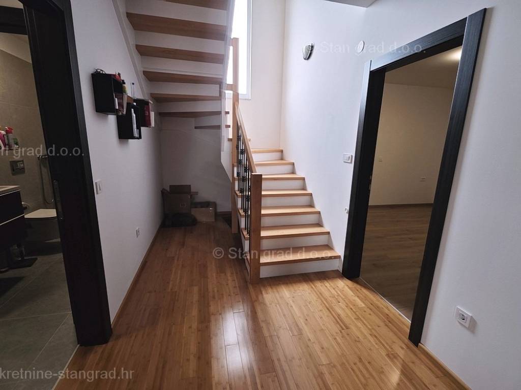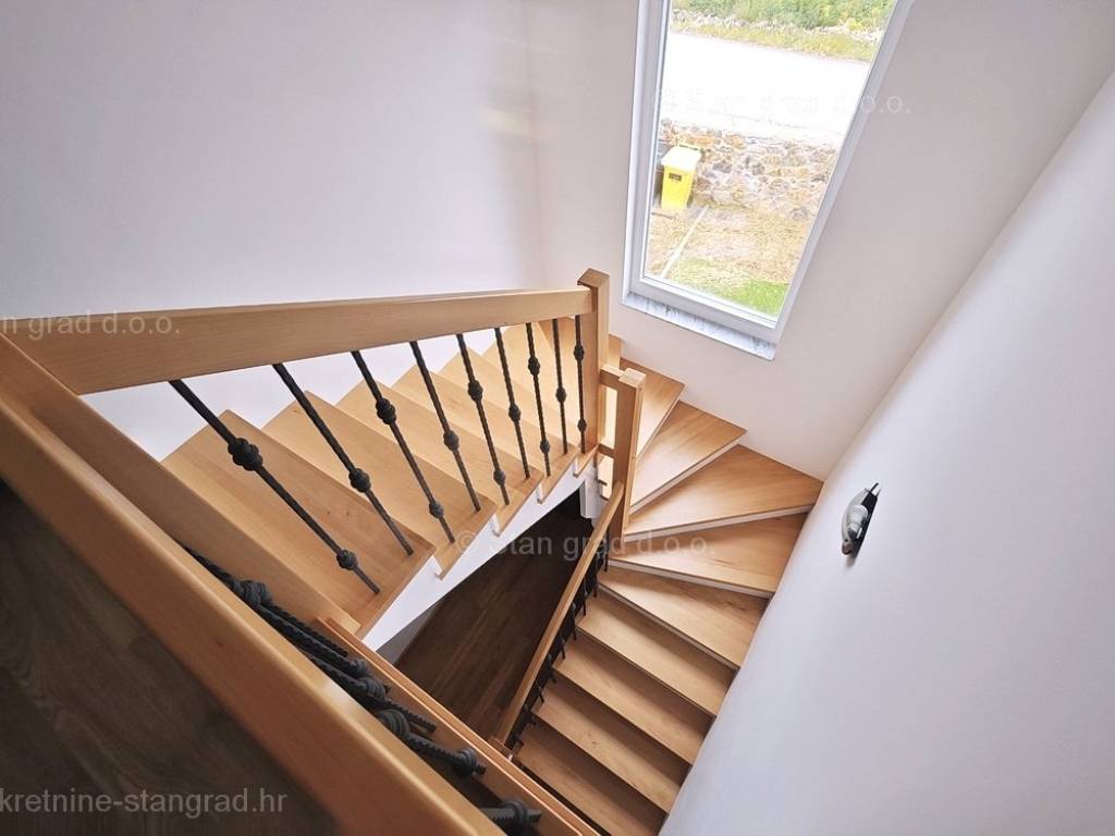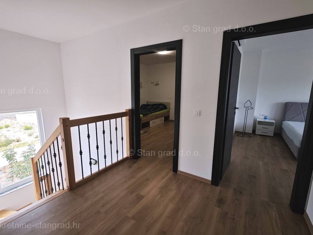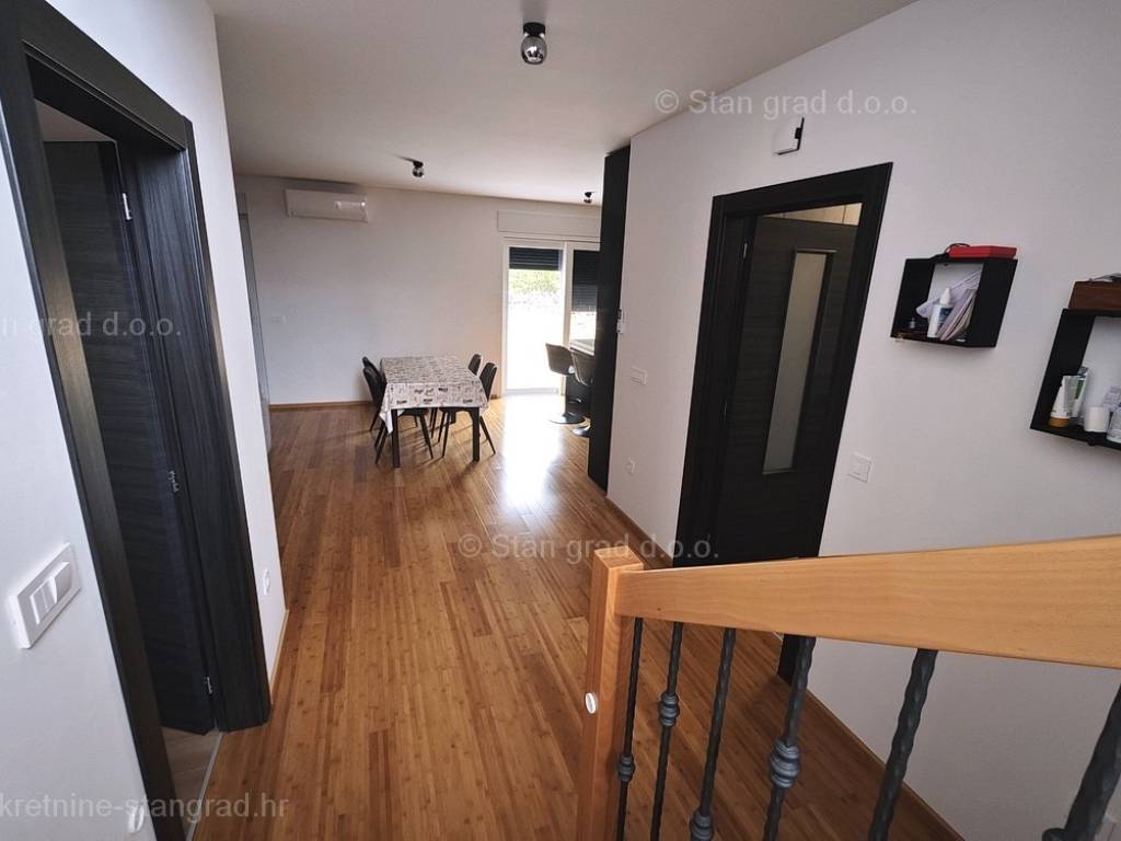 Unutar tradicionalno atraktivne jadranske i kvarnerske turističke regije otok Krk, nudi se uređena i dobro održavana kuća za turistički boravak ili stanovanje. Istaknuta je kuća smještena na zanimljivoj lokaciji nedaleko centra primorskog odredišta Vrbnik. Gledajući strukturno, ovo je samostojeća kuća katnica. Suvremeno građena kuća se sastoji od prostora raspoređenog na ukupno 2 etaže. Kuća zauzima prostor ukupne površine 152 m2. Navedena površina obuhvaća u prizemlju ulazni prostor, ostavu, kupaonicu, spavaću sobu, open space dnevni boravak s kuhinjom i blagovaonicom te natkrivenu terasu, a na 1. katu se nalaze 2 spavaće sobe, kupaonica i glavna spavaća soba s walk in ormarom i natkrivenom terasom. Nekretnina očuvane unutrašnjosti je opremljena setom vrlo dobre tehničke opreme i kvalitetnim komadima namještaja. Bitno je napomenuti da nekretnina ima prostranu okućnicu površine cca 710 m2 na kojoj je moguća izgradnja bazena ili garaže. Na navedenoj okućnici uređeno je komotno parkiranje više vozila. Uz prethodno, važno je napomenuti da kuća ima vrlo lijep otvoreni pogled na more. Predmetna je kuća u vlasništvu fizičke obveze i kod prijenosa vlasništva podliježe obračunu poreza na promet nekretnina u visini 3%. Vlasnik garantira kompletnu i urednu tehničko-vlasničku dokumentaciju te jednostavan prijenos nekretnine na kupca. Javite nam se, pobrinut ćemo se da osjećate sigurnost i zadovoljstvo kupnje nekretnine. Agenti ureda Stan Grad Immobilien će vam rado pomoći u administrativnim poslovima oko prijenosa vlasništva i računa nekretnine.