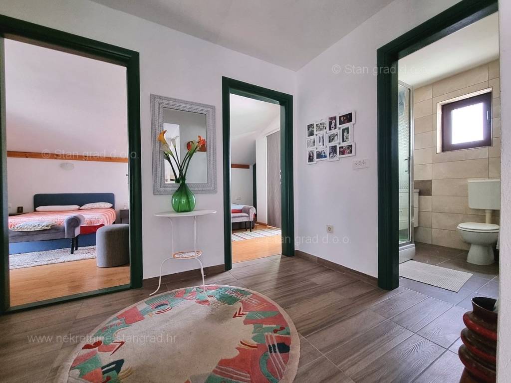 Na prodaji kod agencije Stan Grad Immobilien je vrlo dobar apartman u mediteranskoj regiji otok Krk, tradicionalno atraktivnom području za turistički boravak na hrvatskom Jadranu. Ovaj apartman je smješten na odličnoj i rijetko dostupnoj lokaciji u samoj blizini mora te na pješačkoj udaljenosti od središta mjesta Omišalj i ključnih životnih sadržaja. Ovo je vrlo udobni, srednje veliki jednoetažni apartman vrlo dobrog rasporeda. Unutar lijepo građenog objekta, apartman se nalazi na 1. etaži. Površina ovog apartmana iznosi ukupno 79 m2. Unutar navedene površine su dnevni boravak i kuhinja, 3 spavaće sobe, kupaonica i lođa na 1. katu te ulazno stubište i natkrivena terasa u prizemlju. Održavani interijer nekretnine je opremljen setom kvalitetne tehničke opreme i komadima dobrog namještaja. Vlasnik apartmana može neometano koristiti sve pripadajuće zajedničke dijelove i prostore nekretnine. Vlasnik apartmana na raspolaganju će imati jedno parkirno mjesto. Ponad opisanih karakteristika, nekretnina je i pogodne orijentacije, pa osigurava vrlo lijep pogled na simpatično primorsko naselje. Predmetni je apartman u vlasništvu fizičke obveze i kod prijenosa vlasništva podliježe obračunu poreza na promet nekretnina u visini 3%. Prodavatelj nekretnine garantira brz prijenos vlasničkih prava te urednu vlasničku i tehničku dokumentaciju. Srdačno se veselimo vašem pozivu ili osobnom dolasku u našu poslovnicu na otoku Krku. Povrh stručnog prezentiranja naravnog i pravnog stanja nekretnine, ako se odlučite za kupovinu, agencija Stan Grad Immobilien rado će vam rado pomoći u prijenosu vlasništva nekretnine.