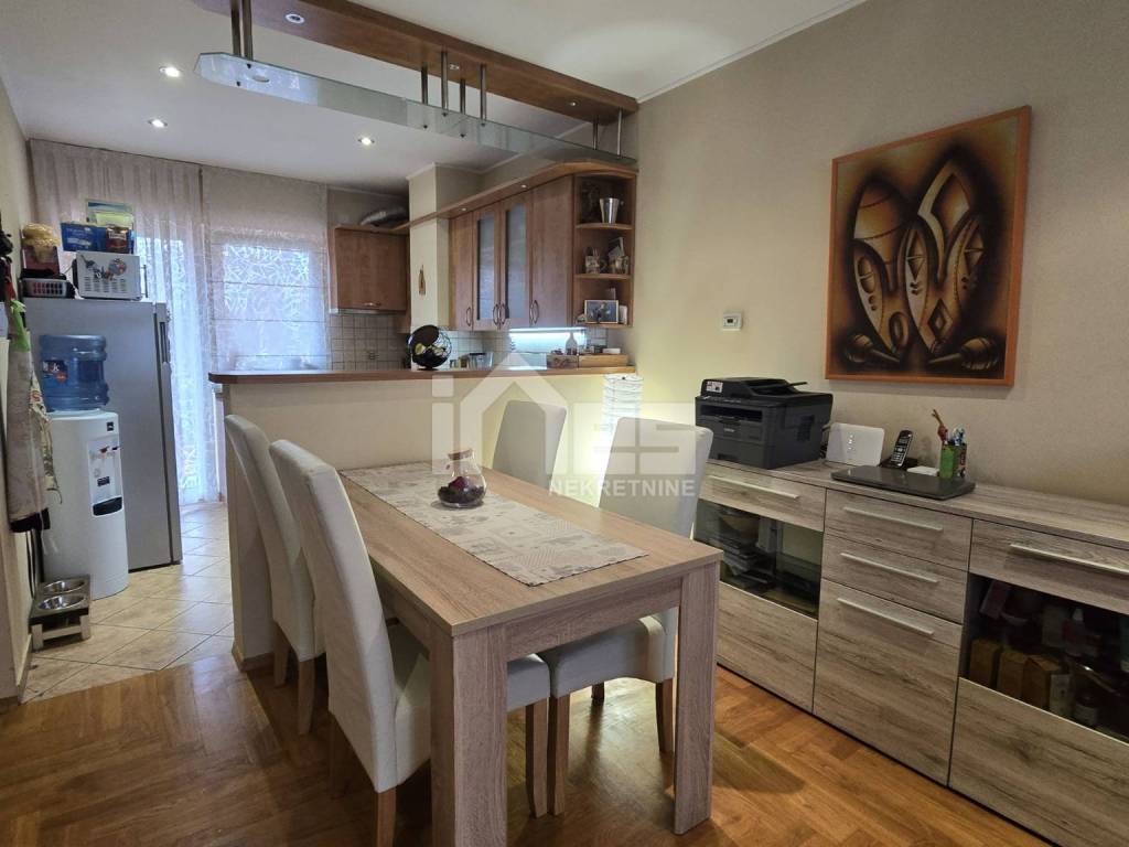Kat: prostrana dnevna soba, blagovaonica, kupaonica te dvije odvojene spavaće sobe.