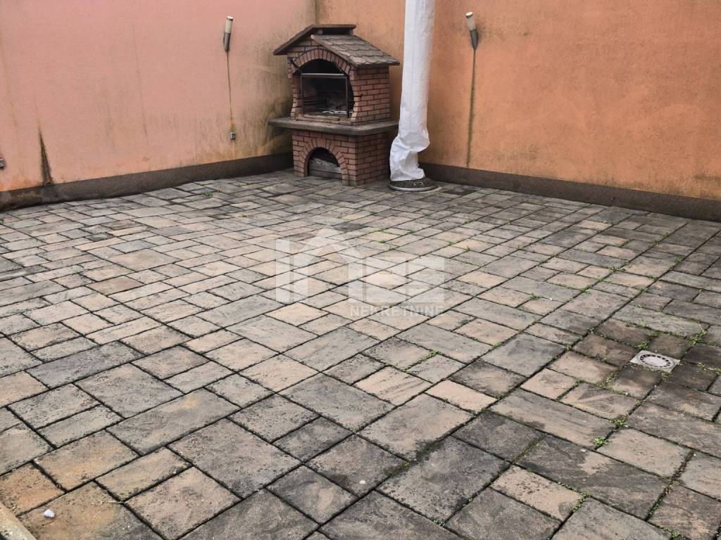U dvorištu se nalazi prostran, popločen vrt s roštiljem, idealan za druženja i opuštanje, dok se garaža i prednje dvorište nalaze u sklopu kuće.