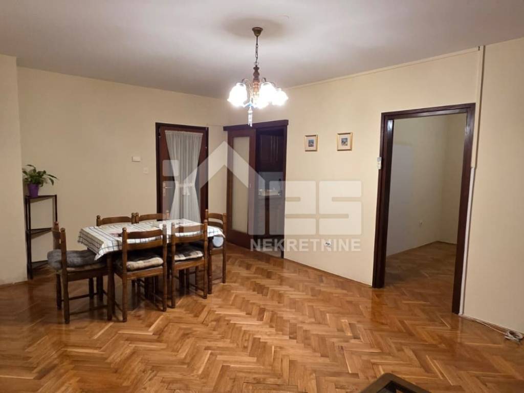 Dvije spavaće sobe nude mir i privatnost, dok zaseban WC i kupaonica s kadom doprinose praktičnosti svakodnevnog života. Drvena stolarija i parketni podovi pažljivo su održavani i u odličnom su stanju, što prostoru daje autentičan, domaći karakter.