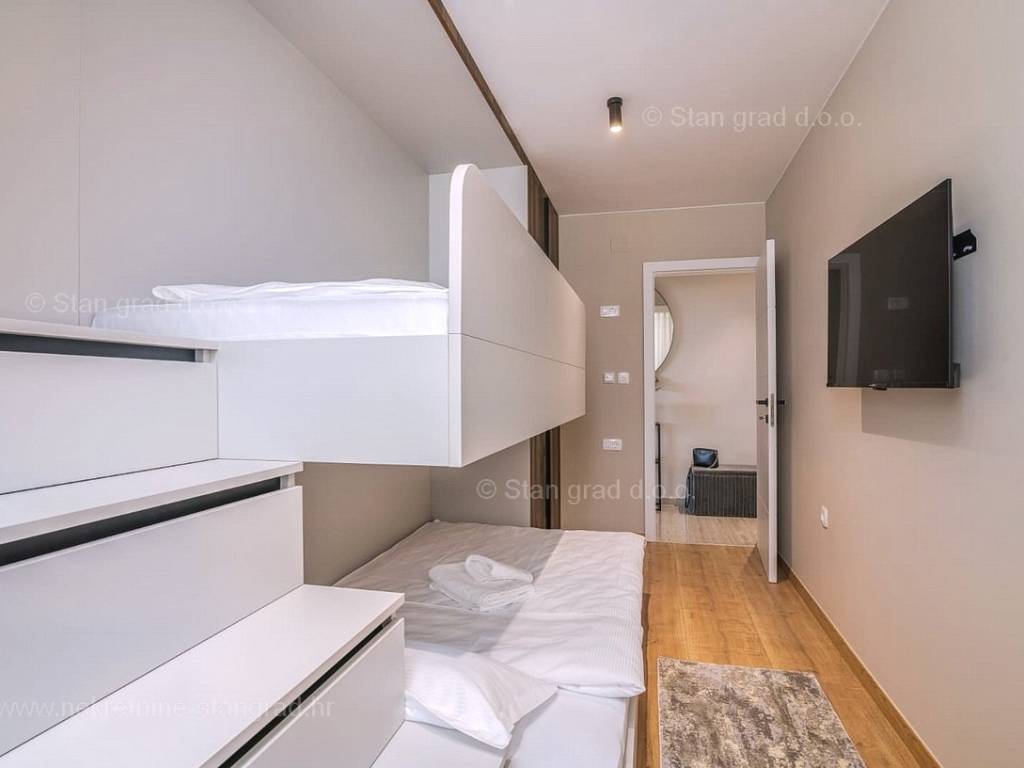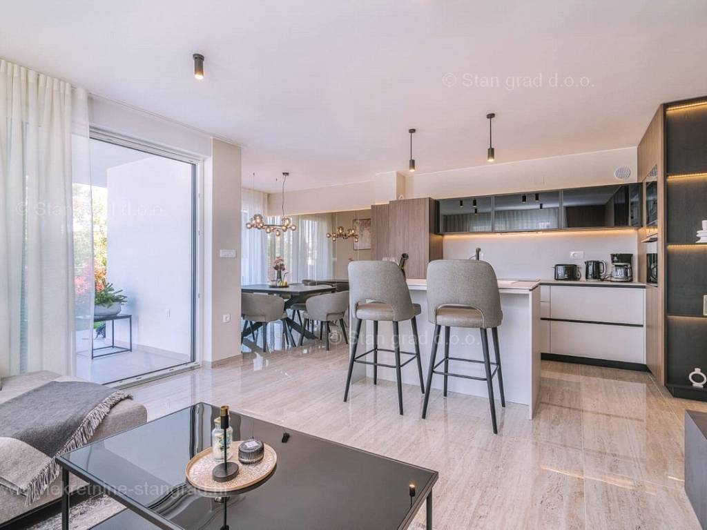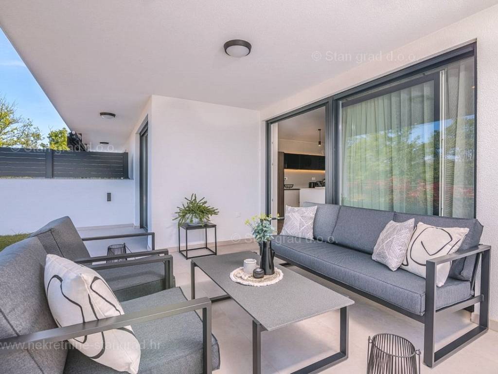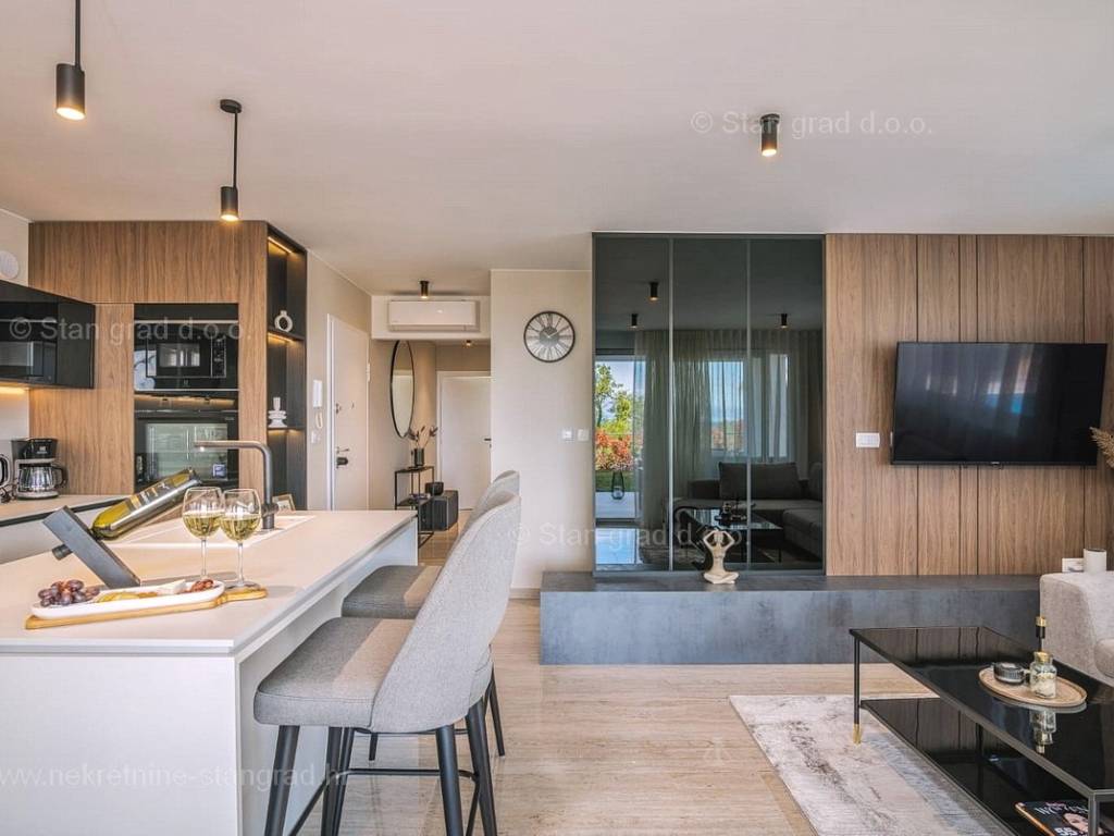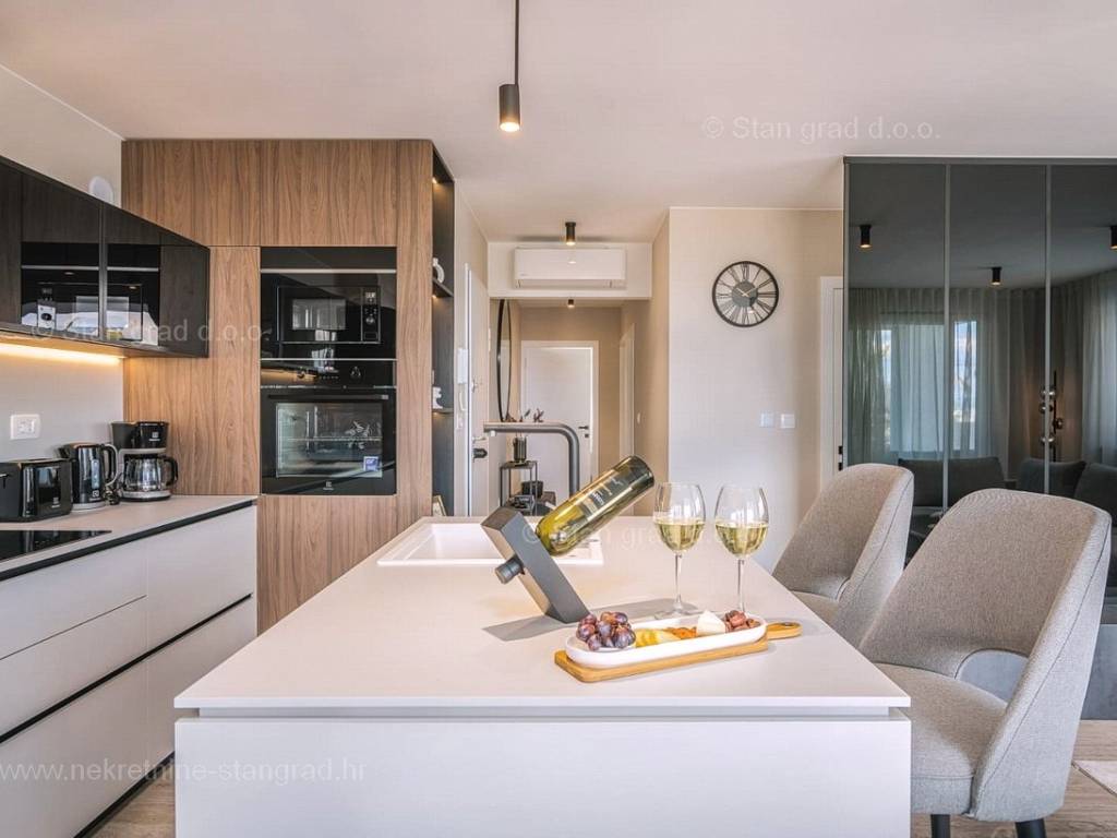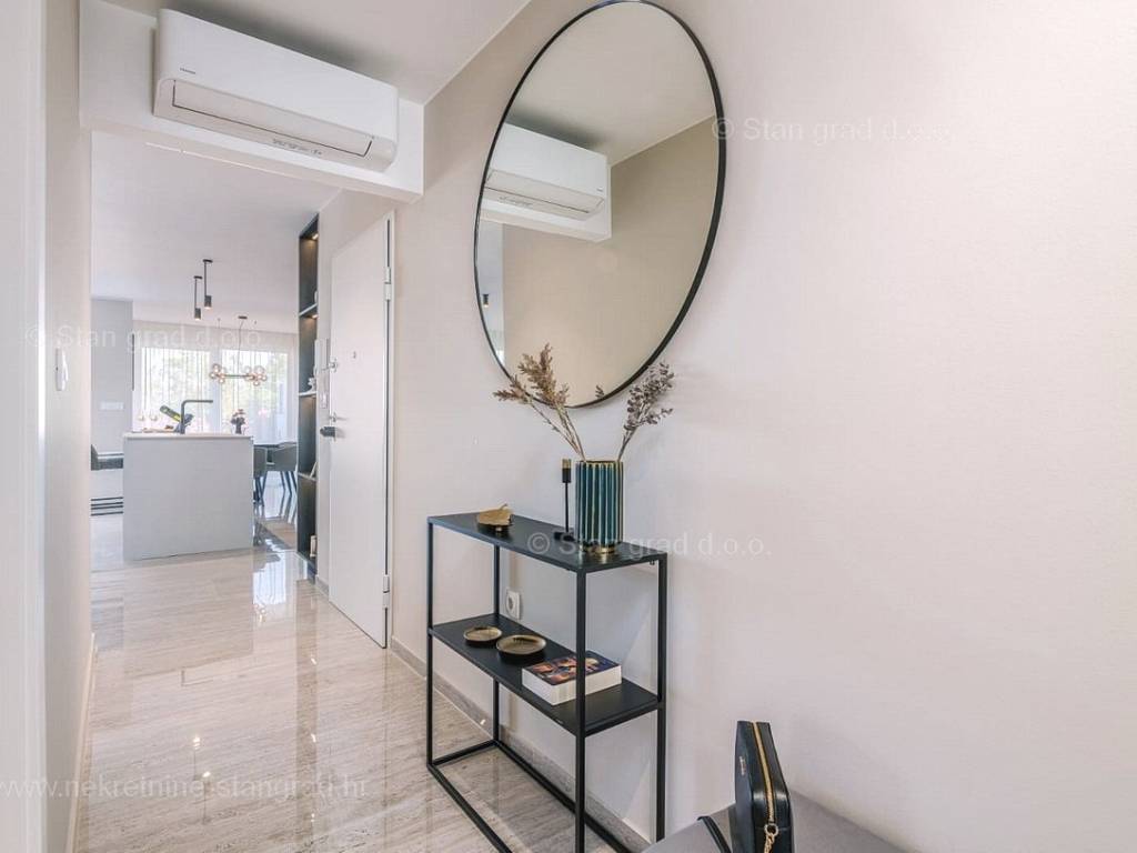 U naravi je to vrlo prostrani i komforni jednoetažni apartman. U suvremeno građenom objektu, apartman se prostire preko prizemne etaže. Površina ovog apartmana iznosi ukupno 84 m2. U toj su površini obuhvaćeni ulazni hodnik, open space dnevni boravak i kuhinja s blagovaonicom, 3 spavaće sobe, kupaonica, wc i terasa s koje se pruža pogled na more. Nekretnina je kompletno opremljena modernim namještajem rađenim po mjeri te suvremenom i kvalitetnom tehničkom opremom.