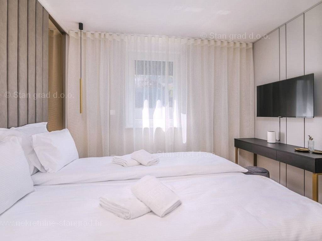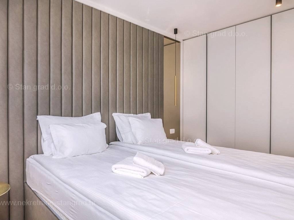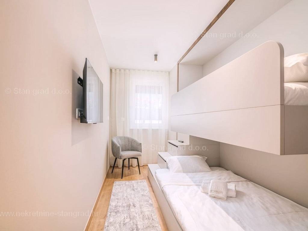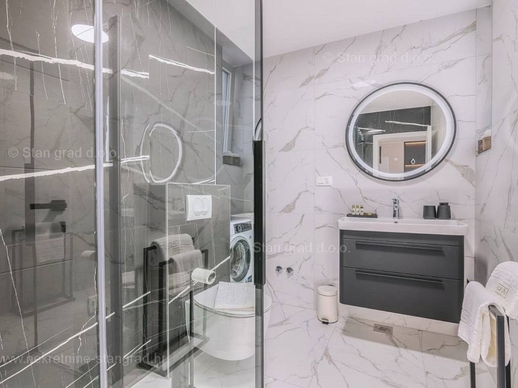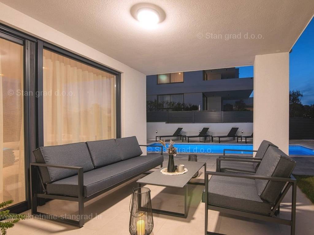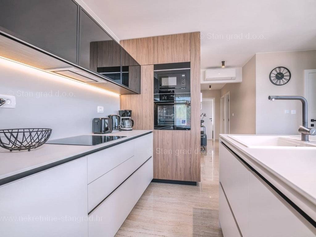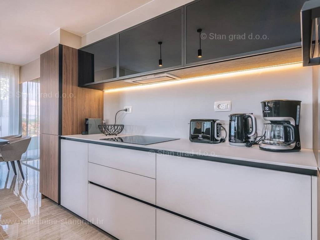 U naravi je to vrlo prostrani i komforni jednoetažni apartman. U suvremeno građenom objektu, apartman se prostire preko prizemne etaže. Površina ovog apartmana iznosi ukupno 84 m2. U toj su površini obuhvaćeni ulazni hodnik, open space dnevni boravak i kuhinja s blagovaonicom, 3 spavaće sobe, kupaonica, wc i terasa s koje se pruža pogled na more. Nekretnina je kompletno opremljena modernim namještajem rađenim po mjeri te suvremenom i kvalitetnom tehničkom opremom.