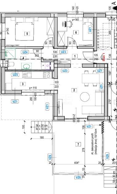 -unutarnji zidovi kombinacija zidanih i gips-kartonskih pregrada