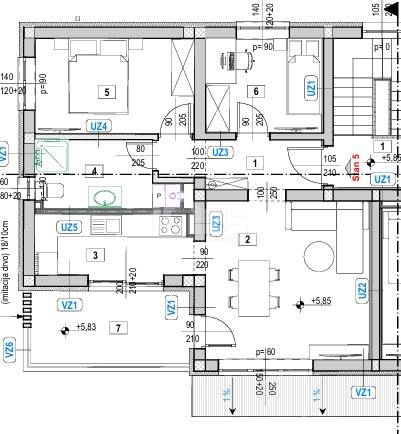 Trosoban stan oznake 5 (Novogradnja) na II katu manje stambene zgrade sa ukupno šest stambenih jedinica koje su raspoređene na tri etaže u Krapinskim Toplicama