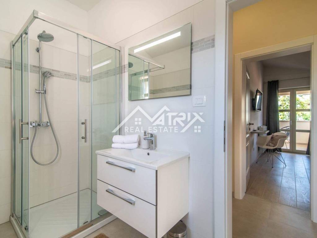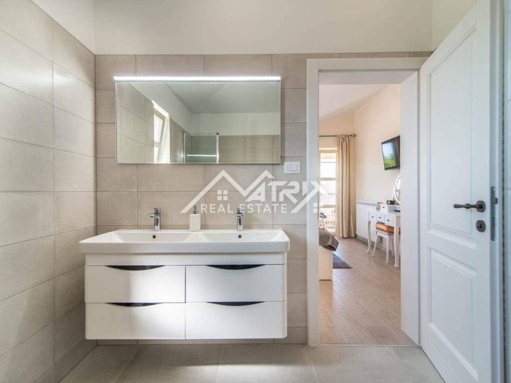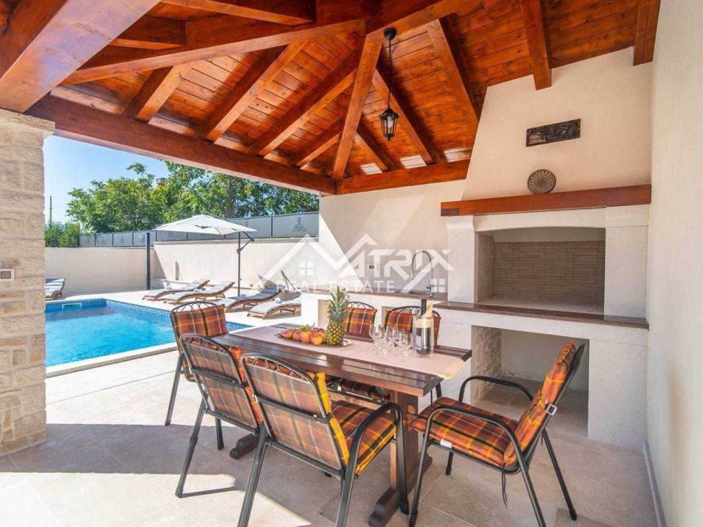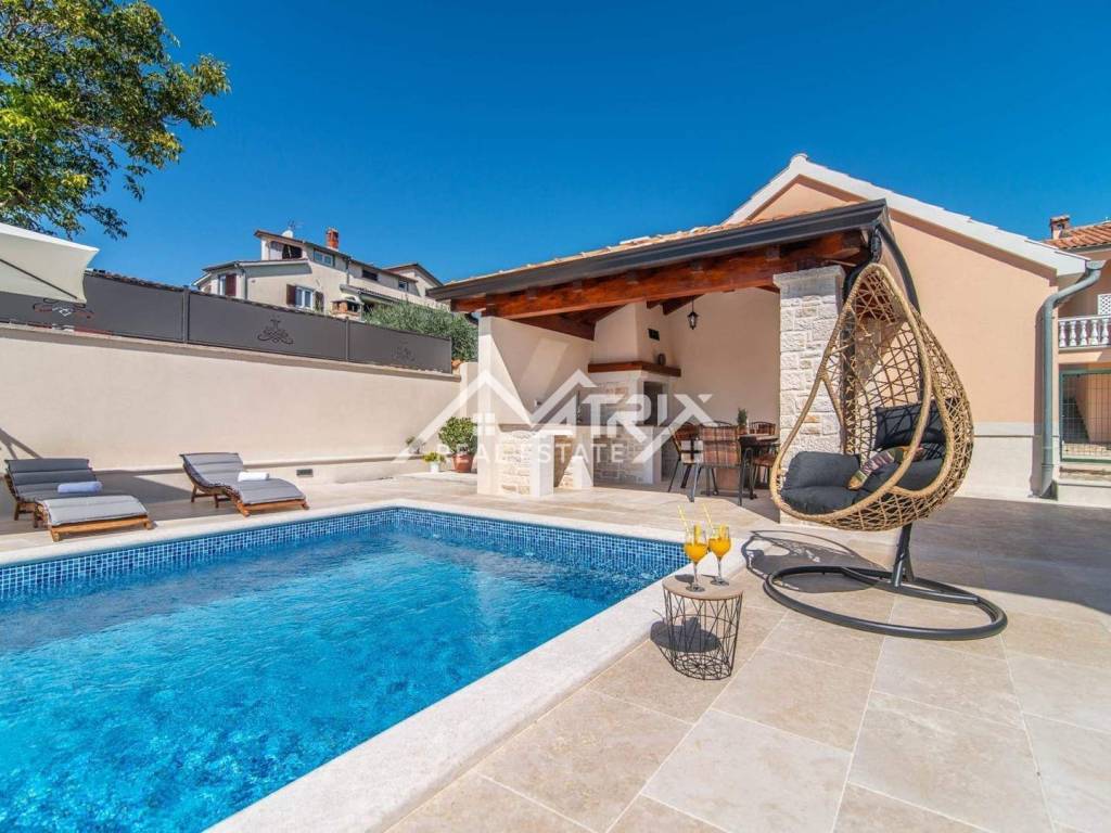 U samom predgrađu grada Poreča prodaje se ova prekrasna luksuzno opremljena kuća s bazenom, ukupne stambene površine 140 m2. Kuća se nalazi u mirnoj ulici prekrasnog naselja, idealno smještenog blizu centra grada, a dovoljno daleko od gradske gužve. Trgovački centar i supermarketi udaljeni su samo 1 km, a more i centar grada su na 3 km.