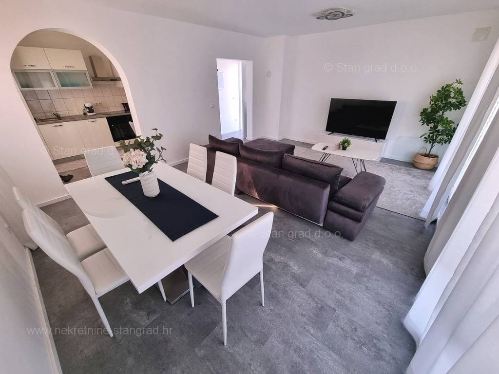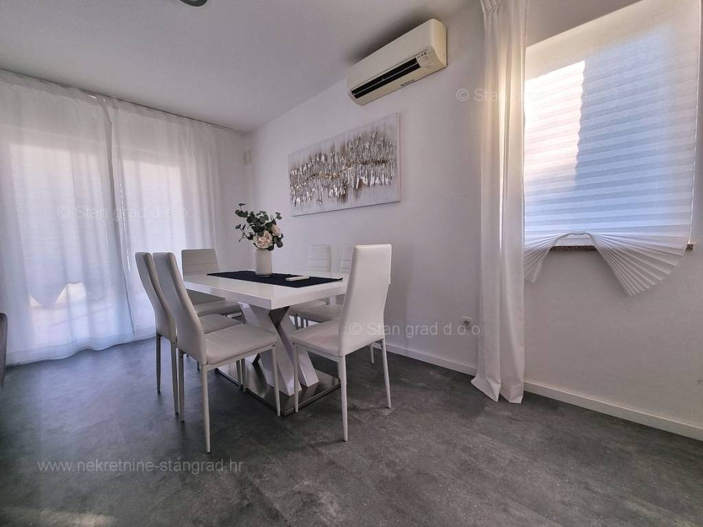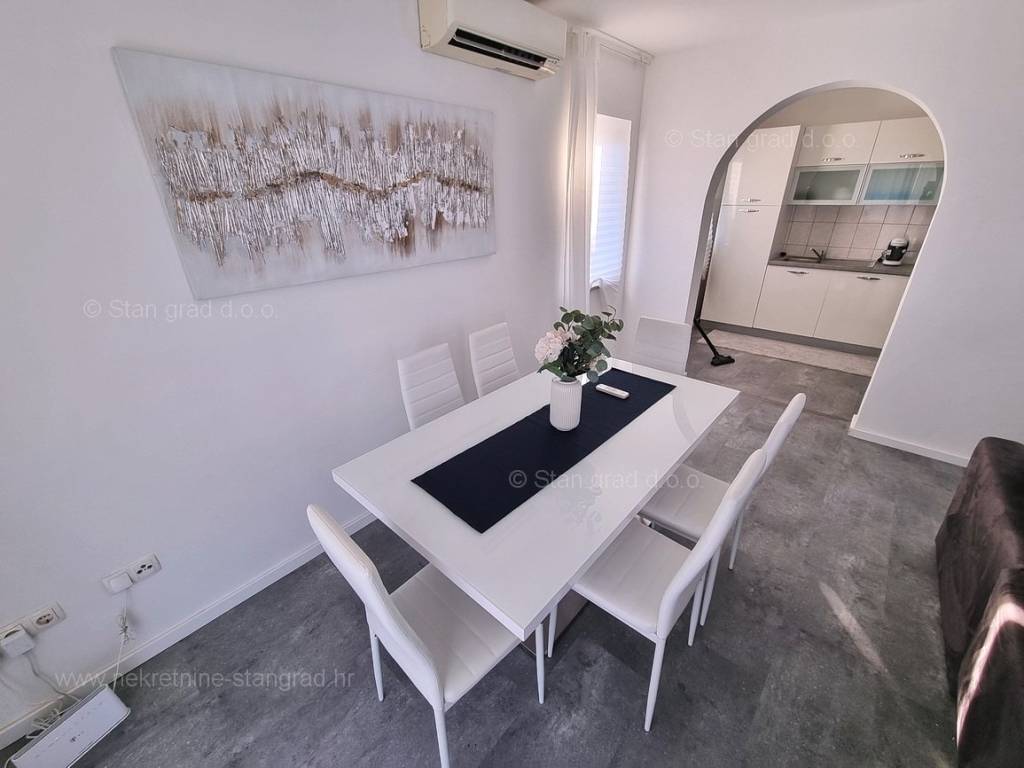 Unutar tradicionalno atraktivne hrvatske jadranske turističke regije otok Krk nudi se uređen i dobro održavan apartman za turistički boravak ili stanovanje. Ovaj je apartman smješten u šarmantnom naselju na vrhunskoj lokaciji nedaleko mora i grada Krka. U naravi je to vrlo prostrani i komforni jednoetažni apartman. U lijepom objektu dobre kvalitete, apartman je smješten na 1. etaži. Površina ovog apartmana iznosi ukupno 84 m2. Unutar navedene površine su dnevni boravak i kuhinja, 2 spavaće sobe, kupaonica i terasa. Unutarnji prostori nekretnine su osobito dobro održavani te u potpunosti opremljeni potrebnim tehničkim uređajima i vrlo kvalitetnim namještajem. Vlasništvo ovog apartmana obuhvaća i mogućnost korištenja zajedničkog dijela okućnice. Vlasnik apartmana na raspolaganju će imati jedno parkirno mjesto. Povrh navedenog, može se napomenuti i da je apartman orijentiran tako da pruža lijep pogled na simpatičan primorski krajolik i bližu okolicu naselja. Predmetni je apartman u vlasništvu fizičke obveze i kod prijenosa vlasništva podliježe obračunu poreza na promet nekretnina u visini 3%. Prodavatelj nekretnine garantira brz prijenos vlasničkih prava te urednu vlasničku i tehničku dokumentaciju. Javite nam se, pobrinut ćemo se da osjećate sigurnost i zadovoljstvo kupnje nekretnine. Ukoliko se odlučite na kupnju nekretnine kod nas, stručni i srdačni tim naše agencije bit će vam na raspolaganju za sve administrativne radnje oko prijenosa vlasništva nekretnine i pripadajućih računa na svoje ime.