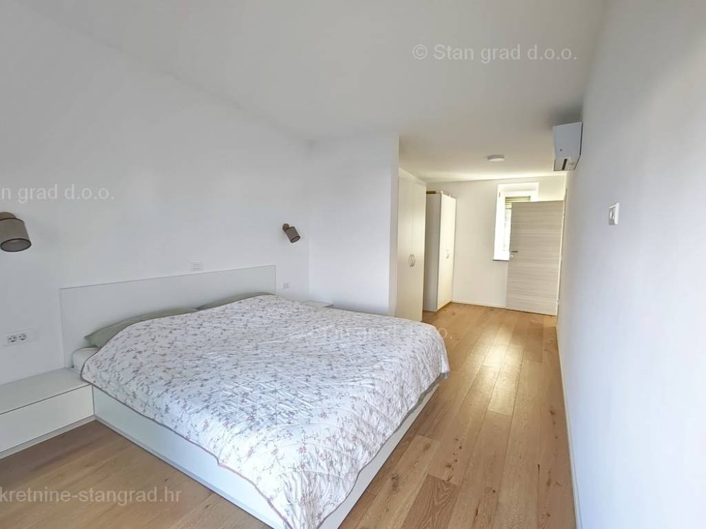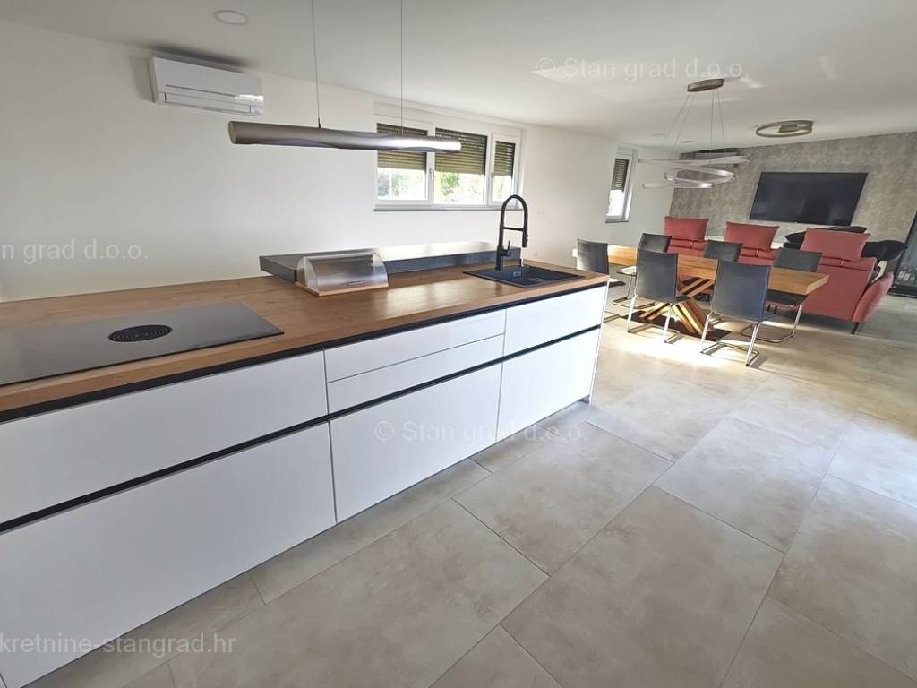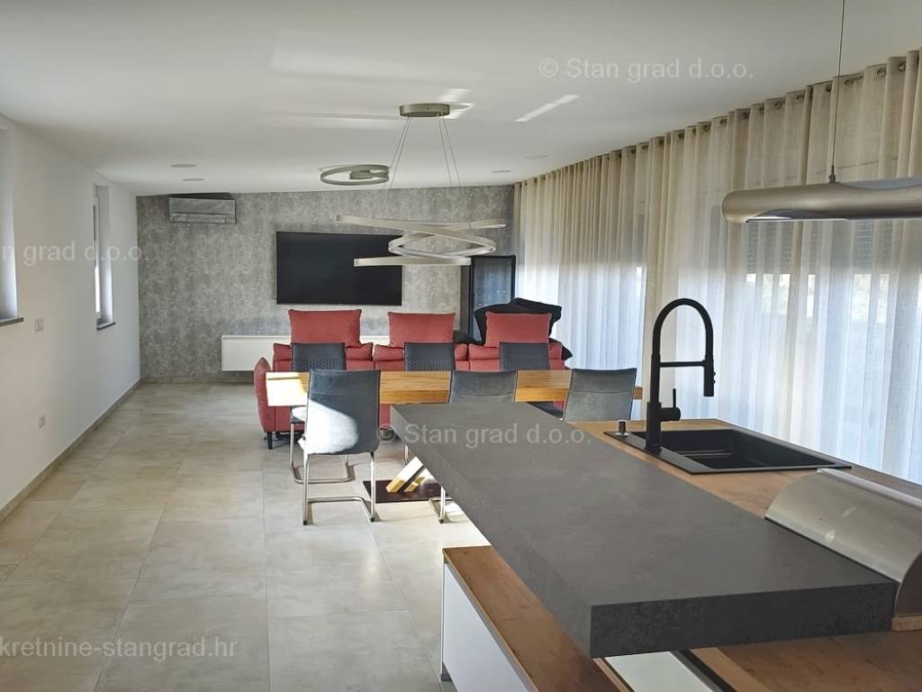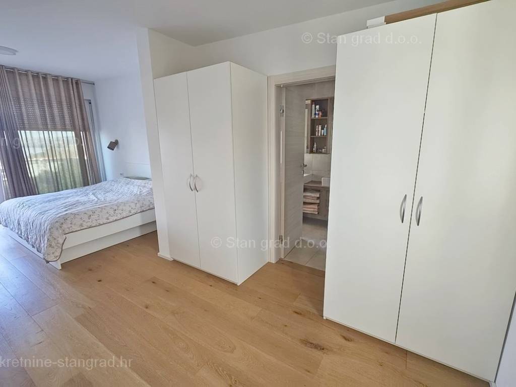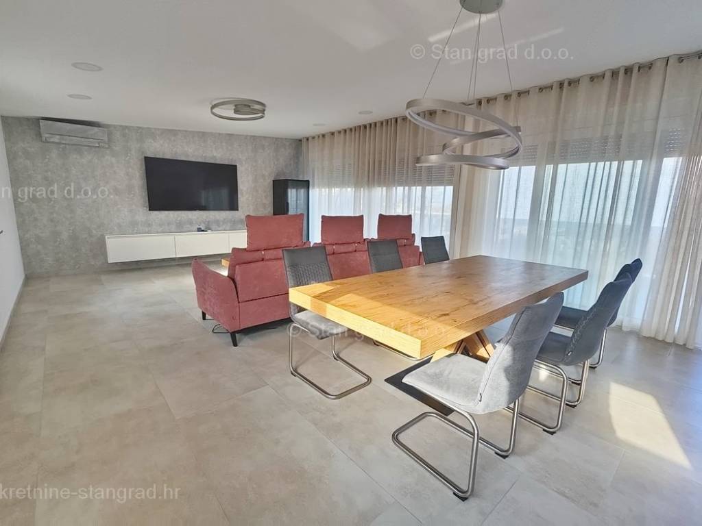 Iz ponude odličnih nekretnina kod naše agencije na sjevernom Jadranu ističe se moderan apartman sagrađen na području tražene hrvatske obalne regije otok Krk. Ova nekretnina se nalazi na top lokaciji, u mjestu Malinska u neposrednoj blizini mora, plaže i drugih turističkih sadržaja. Prema vrsti, ovo je prostrani jednoetažni apartman koji se prostire preko cijele etaže objekta. Unutar luksuzno izgrađenog objekta, apartman se nalazi na 2. etaži. Apartman obuhvaća ukupnu površinu od približno 160 m2. Ovu površinu zauzimaju dnevni boravak i kuhinja s blagovaonicom, 3 spavaće sobe svaka s vlastitom kupaonicom, wc, vešeraj, terasa s natkrivenim dijelom na kojem se nalazi sunčalište i lounge te s otvorenim dijelom na kojem se nalazi bazen s pogledom na more. Nekretnina je kompletno opremljena modernim namještajem te suvremenom i kvalitetnom tehničkom opremom. Vlasnik apartmana može neometano koristiti sve pripadajuće zajedničke dijelove i prostore nekretnine. Vlasništvo apartmana obuhvaća raspolaganje parkirnim prostorom za prijem više vozila. Osim ranije navedenih karakteristika, apartman ima odličan položaj i usmjerenost koji njegovim žiteljima osiguravaju prekrasan otvoreni pogled na more. Predmetni je apartman u vlasništvu fizičke obveze i kod prijenosa vlasništva podliježe obračunu poreza na promet nekretnina u visini 3%. Prodavatelj apartmana jamči kompletnu i urednu dokumentaciju te jednostavan prijenos nekretnine na kupca. Posjetite nas na otoku Krku i uvjerite se da nam je vaše zadovoljstvo prioritet. Osim profesionalnog obilaska i prezentacije nekretnine te njenog pravnog statusa, srdačno osoblje naše agencije će kupcu nekretnine sa zadovoljstvom pomoći u prijenosu vlasničkih prava te prijenosu računa za komunalne usluge na svoje ime.
