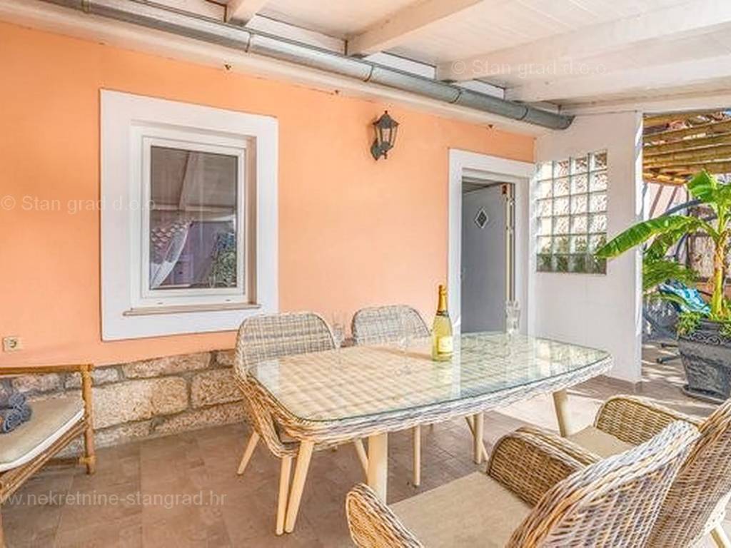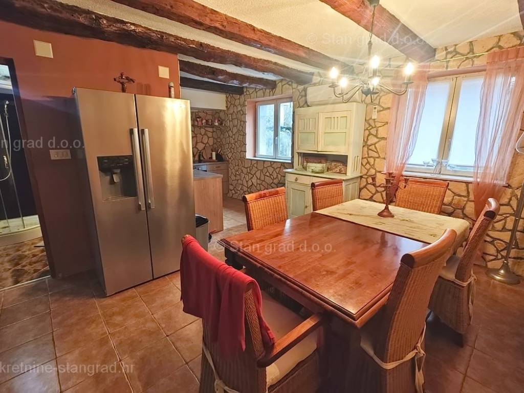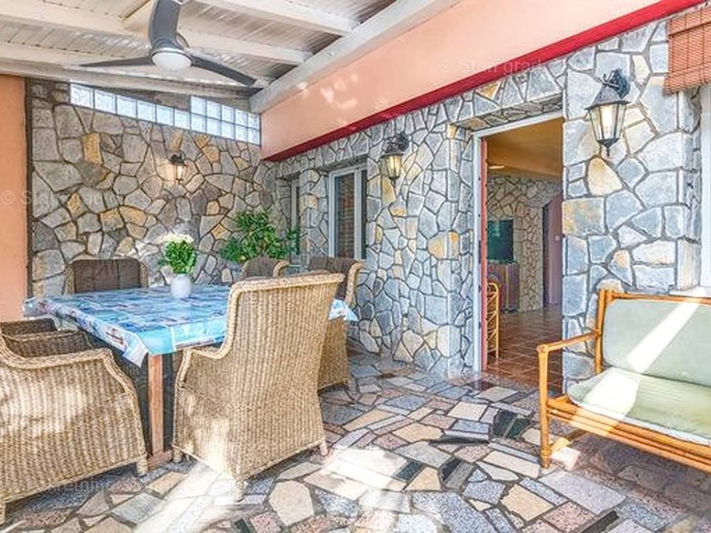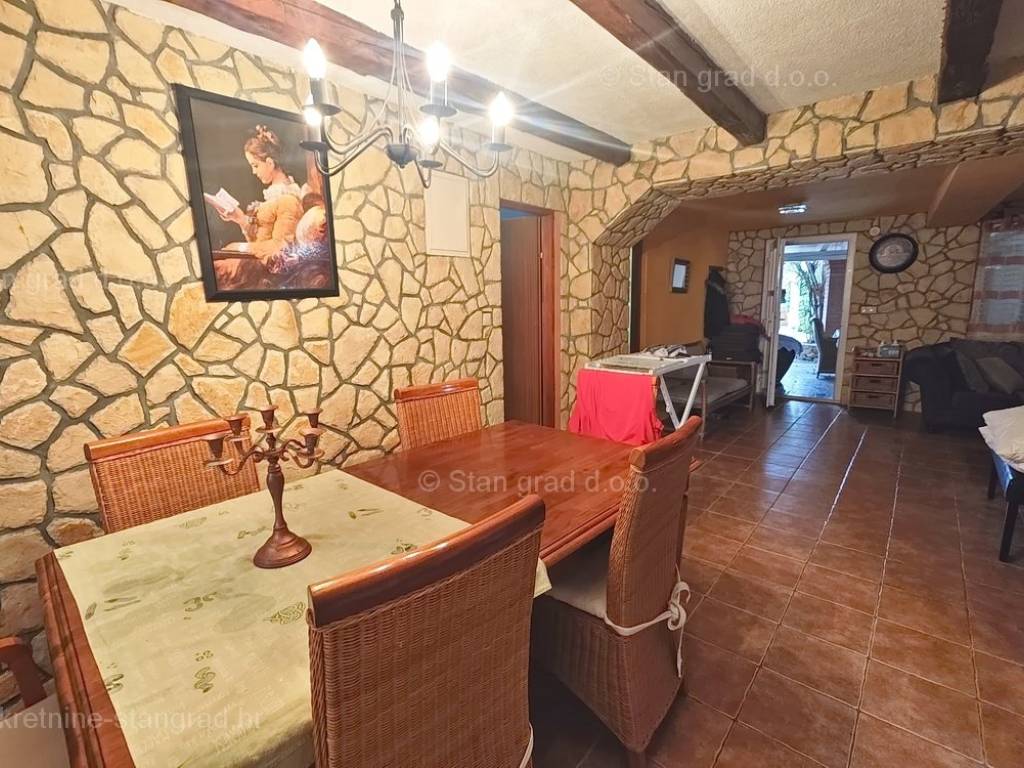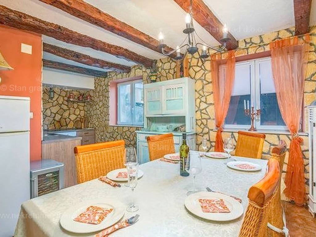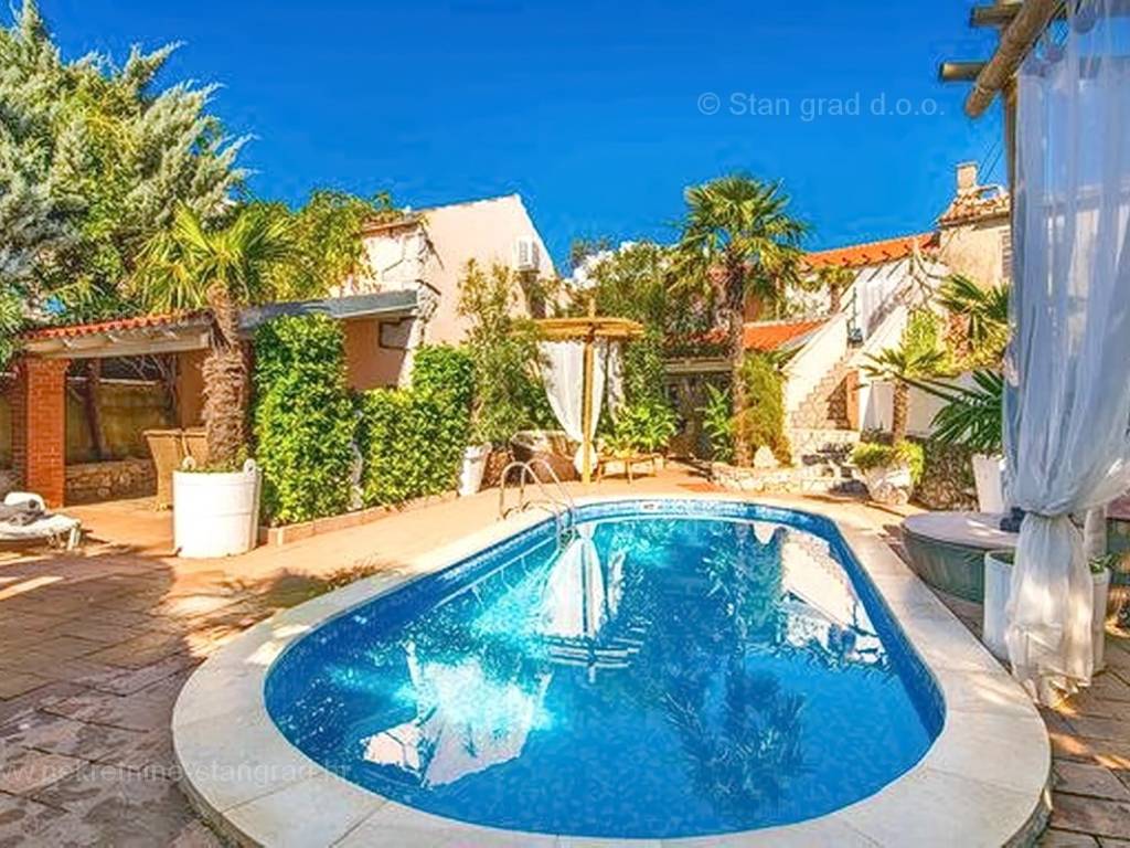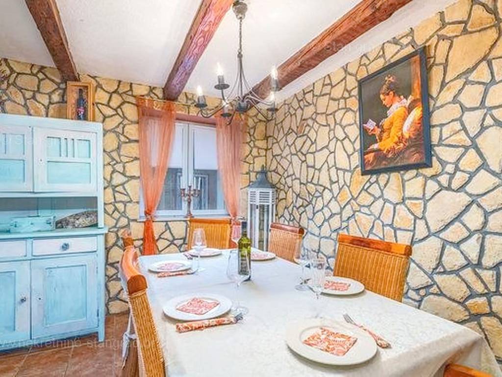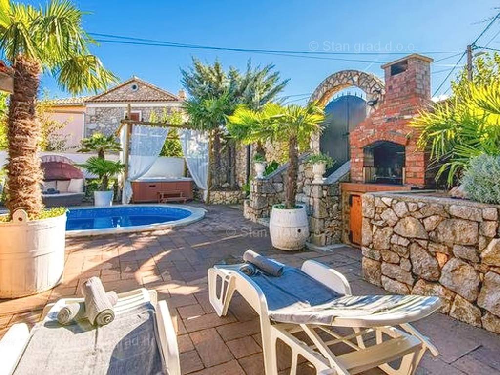 Unutar široke ponude nekretnina na Kvarneru, kod agencije Stan Grad Immobilien se prodaje vrlo dobra i uređena kuća za turizam u traženoj mediteranskoj jadranskoj destinaciji otok Krk. Ova šarmantna kuća je na mirnoj lokaciji nedaleko mora i centra mjesta Šilo. Gledajući strukturno, ovo je samostojeća kuća katnica. U naravi radi se o dva odvojena objekta koji čine tri odvojena apartmana. U prvom objektu u prizemlju nalazi se apartman površine 63 m2 koji obuhvaća dnevni boravak, kuhinju s blagovaonicom, kupaonicu, 2 spavaće sobe i natkrivenu prostranu terasu. Na prvom katu istog objekta nalazi se apartman površine 53 m2 koji se sastoji od dnevnog boravka, kuhinje s blagovaonicom, spavaće sobe, kupaonice i natkrivene terase. Drugi objekt na istoj parceli je studio apartman površine 30 m2 koji se trenutno koristi kao prostor za druženje a sadrži dnevni boravak i kupaonicu u prizemlju i spavaći dio na mansardi. Unutarnji prostori nekretnine su osobito dobro održavani te u potpunosti opremljeni potrebnim tehničkim uređajima i vrlo kvalitetnim namještajem. Vlasništvo ove kuće sadržava i pažljivo uređenu okućnicu posebno oplemenjenu bazenom, sunčalištem, jacuzzijem i grill prostorom za opuštanje. Prostrana okućnica opisane nekretnine uređeno je komotno parkiranje više vozila. Osim navedenog, treba napomenuti da kuća ima lijep pogled na ovo primorsko mjesto. Ova nekretnina je u vlasništvu fizičke osobe i kao takva prilikom prijenosa vlasništva na kupca podliježe obvezi plaćanja poreza na promet nekretnine u visini 3%. Prodavatelj ove kuće jamči kompletnu i urednu dokumentaciju te jednostavan prijenos nekretnine na kupca. Obratite nam se s povjerenjem na adresi poslovnice na otoku Krku i bit ćemo vaš partner za sigurnu kupnju nekretnine na Kvarneru. Povrh prezentacije nekretnine i njenog pravnog statusa te vođenja pregovora s kuće nekretnine, naš će stručni tim kupcu asistirati prilikom prijepisa vlasništva kuće te prenošenju računa za električnu energiju, vodoopskrbu i komunalne usluge na svoje ime.