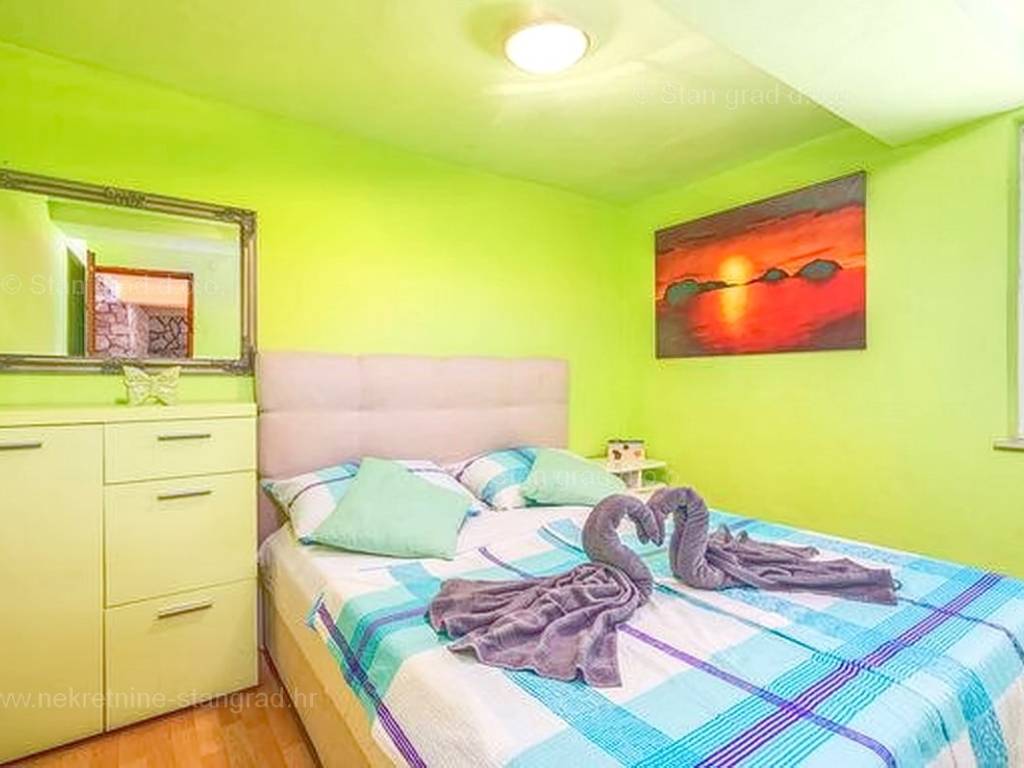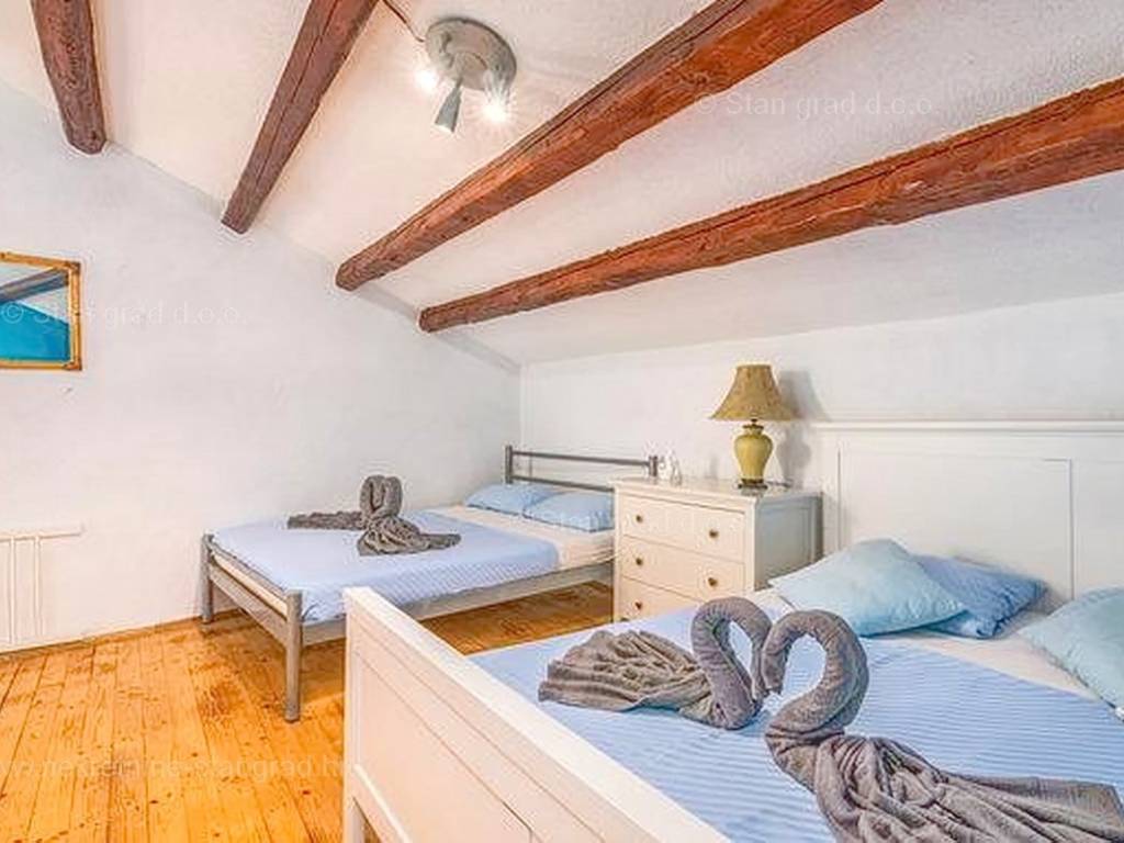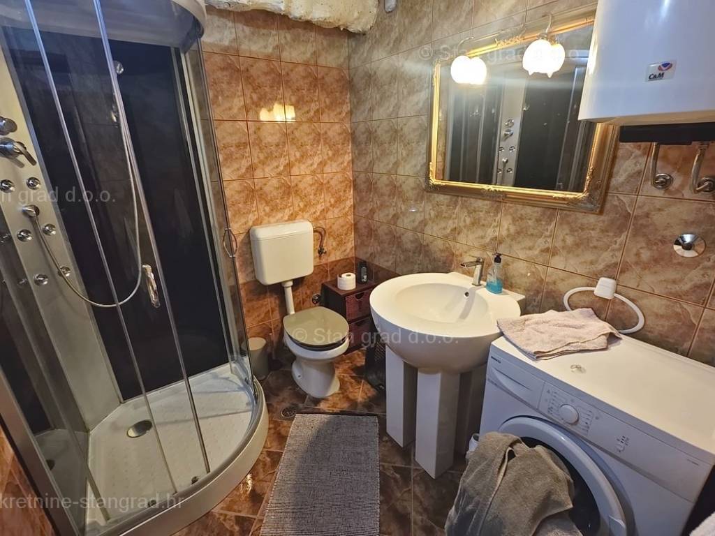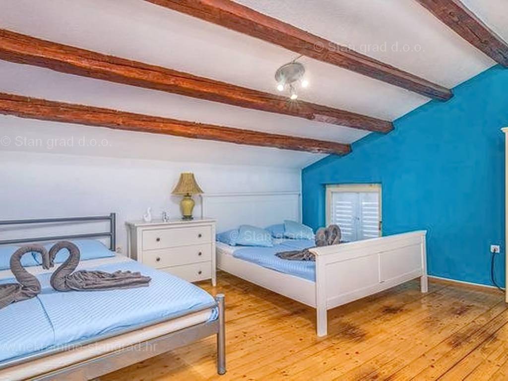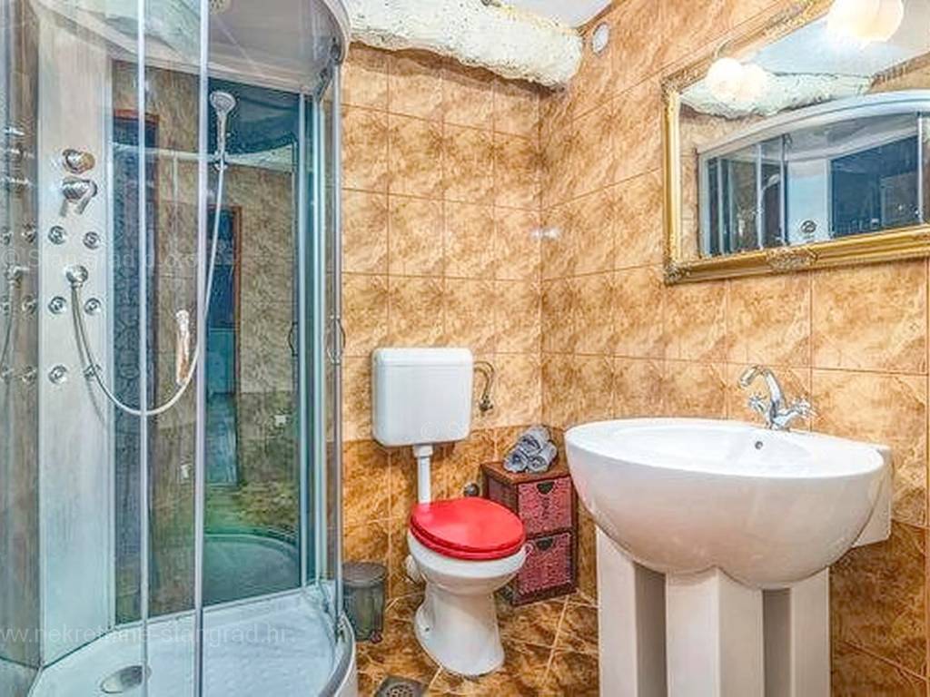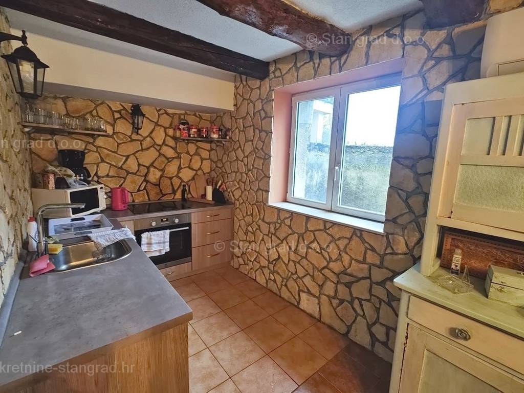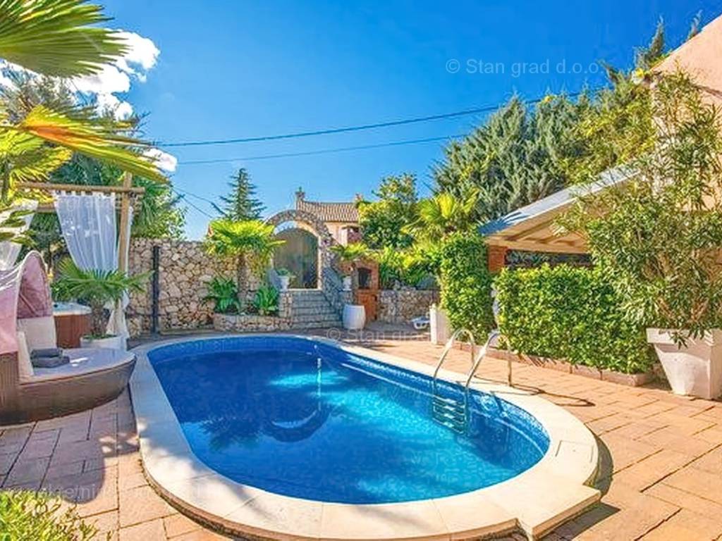Unutar široke ponude nekretnina na Kvarneru, kod agencije Stan Grad Immobilien se prodaje vrlo dobra i uređena kuća za turizam u traženoj mediteranskoj jadranskoj destinaciji otok Krk. Ova šarmantna kuća je na mirnoj lokaciji nedaleko mora i centra mjesta Šilo. Gledajući strukturno, ovo je samostojeća kuća katnica. U naravi radi se o dva odvojena objekta koji čine tri odvojena apartmana. U prvom objektu u prizemlju nalazi se apartman površine 63 m2 koji obuhvaća dnevni boravak, kuhinju s blagovaonicom, kupaonicu, 2 spavaće sobe i natkrivenu prostranu terasu. Na prvom katu istog objekta nalazi se apartman površine 53 m2 koji se sastoji od dnevnog boravka, kuhinje s blagovaonicom, spavaće sobe, kupaonice i natkrivene terase. Drugi objekt na istoj parceli je studio apartman površine 30 m2 koji se trenutno koristi kao prostor za druženje a sadrži dnevni boravak i kupaonicu u prizemlju i spavaći dio na mansardi. Unutarnji prostori nekretnine su osobito dobro održavani te u potpunosti opremljeni potrebnim tehničkim uređajima i vrlo kvalitetnim namještajem. Vlasništvo ove kuće sadržava i pažljivo uređenu okućnicu posebno oplemenjenu bazenom, sunčalištem, jacuzzijem i grill prostorom za opuštanje. Prostrana okućnica opisane nekretnine uređeno je komotno parkiranje više vozila. Osim navedenog, treba napomenuti da kuća ima lijep pogled na ovo primorsko mjesto. Ova nekretnina je u vlasništvu fizičke osobe i kao takva prilikom prijenosa vlasništva na kupca podliježe obvezi plaćanja poreza na promet nekretnine u visini 3%. Prodavatelj ove kuće jamči kompletnu i urednu dokumentaciju te jednostavan prijenos nekretnine na kupca. Obratite nam se s povjerenjem na adresi poslovnice na otoku Krku i bit ćemo vaš partner za sigurnu kupnju nekretnine na Kvarneru. Povrh prezentacije nekretnine i njenog pravnog statusa te vođenja pregovora s kuće nekretnine, naš će stručni tim kupcu asistirati prilikom prijepisa vlasništva kuće te prenošenju računa za električnu energiju, vodoopskrbu i komunalne usluge na svoje ime.