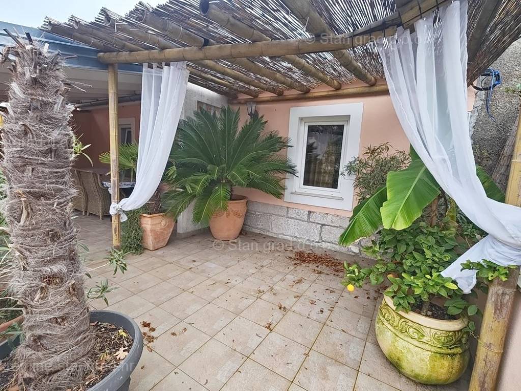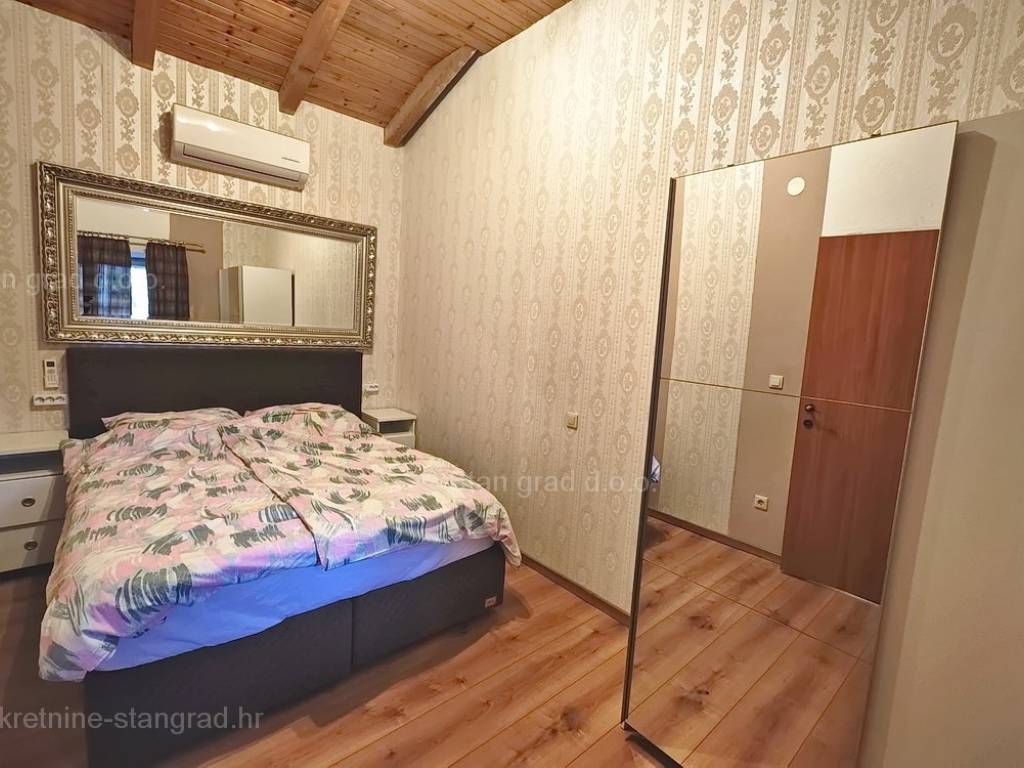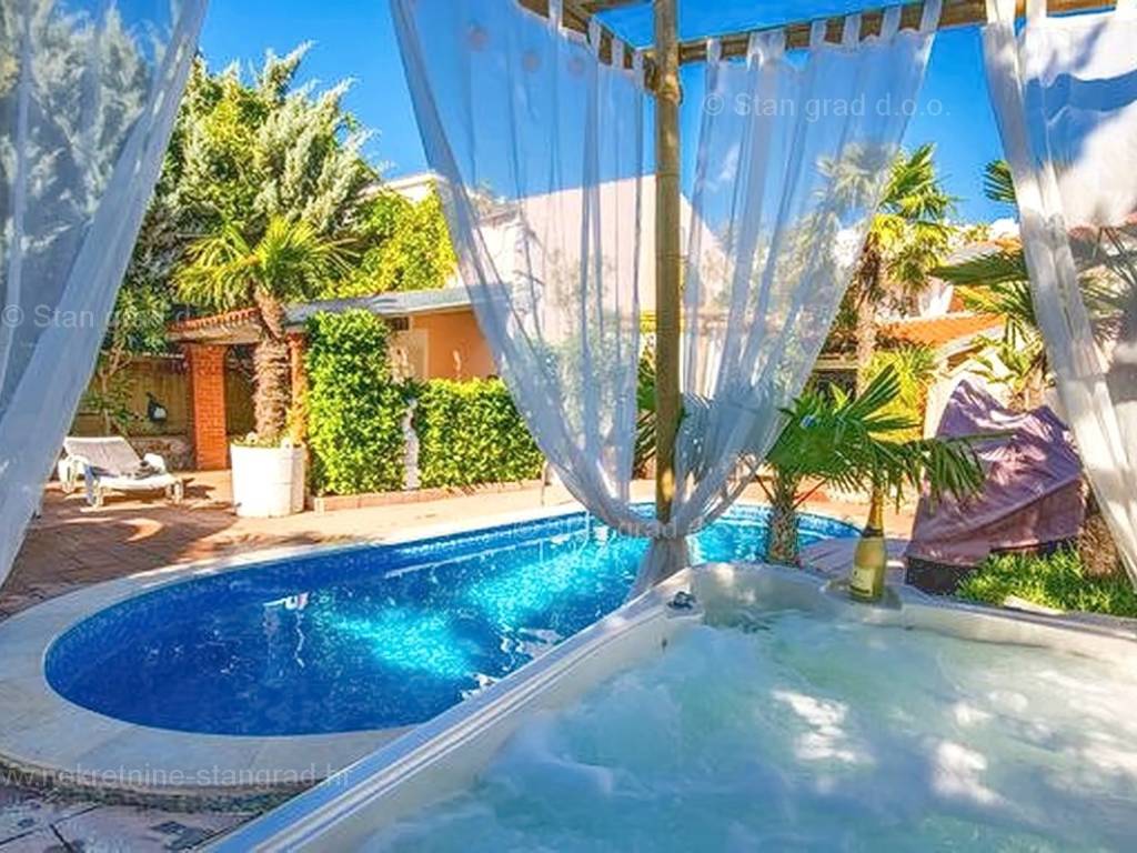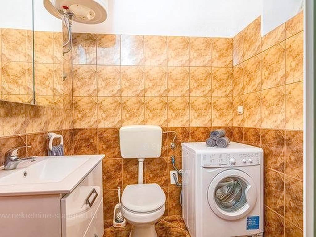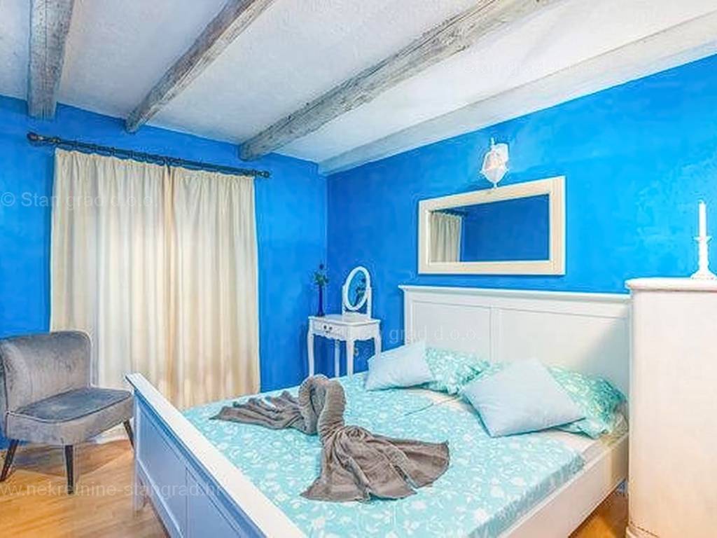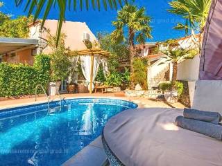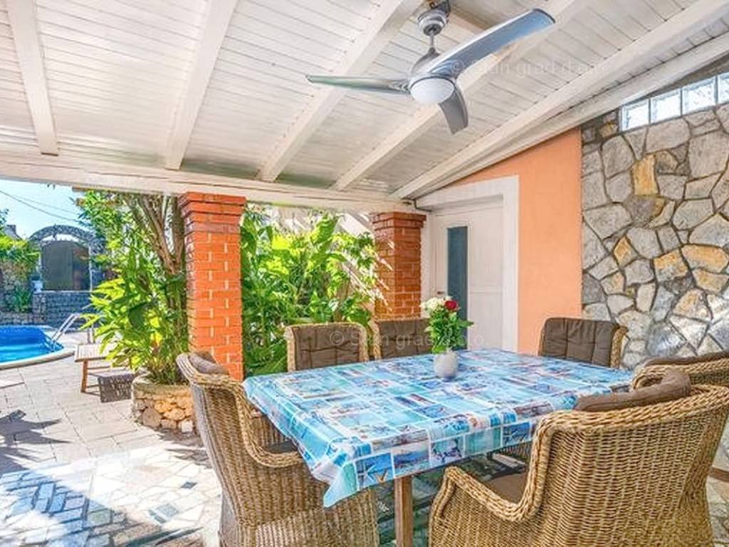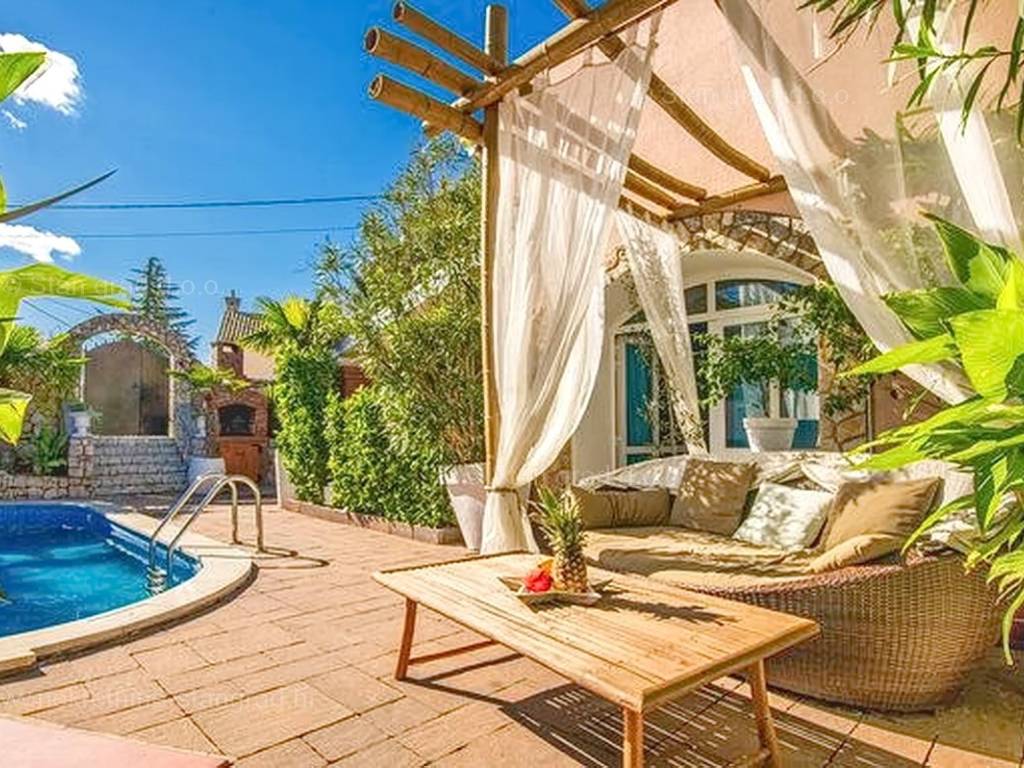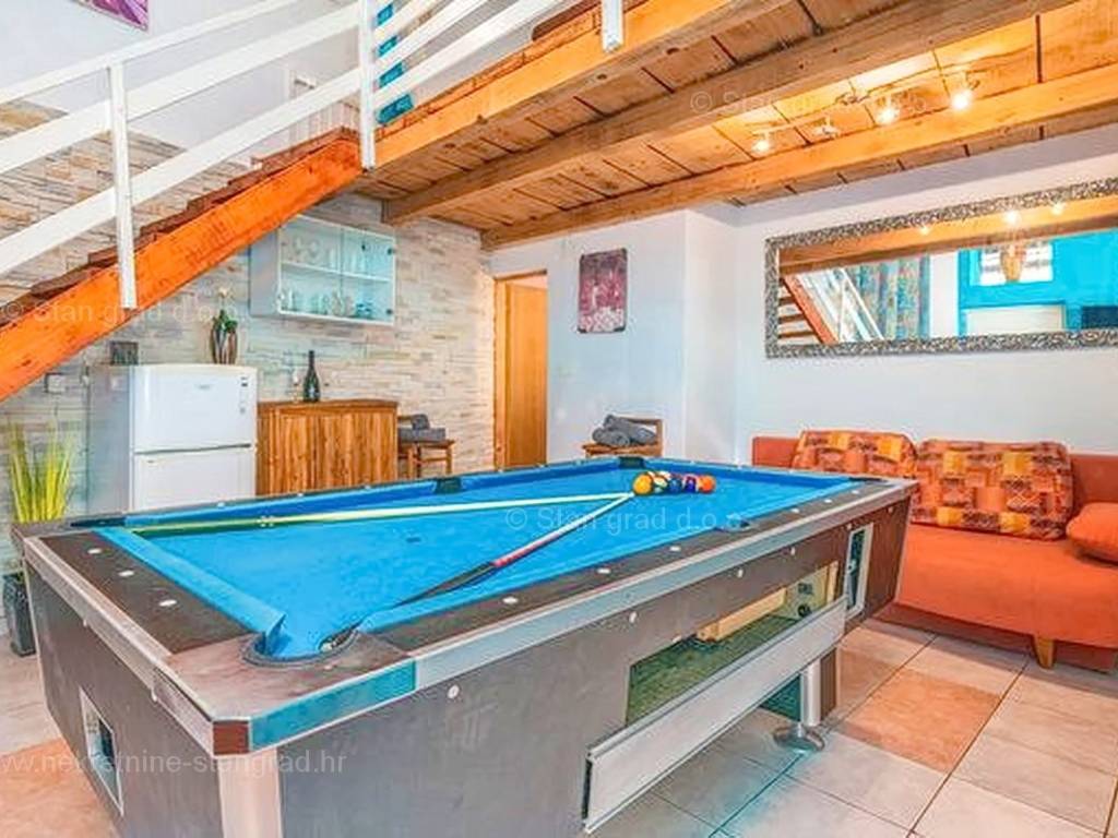 Unutar široke ponude nekretnina na Kvarneru, kod agencije Stan Grad Immobilien se prodaje vrlo dobra i uređena kuća za turizam u traženoj mediteranskoj jadranskoj destinaciji otok Krk. Ova šarmantna kuća je na mirnoj lokaciji nedaleko mora i centra mjesta Šilo. Gledajući strukturno, ovo je samostojeća kuća katnica. U naravi radi se o dva odvojena objekta koji čine tri odvojena apartmana. U prvom objektu u prizemlju nalazi se apartman površine 63 m2 koji obuhvaća dnevni boravak, kuhinju s blagovaonicom, kupaonicu, 2 spavaće sobe i natkrivenu prostranu terasu. Na prvom katu istog objekta nalazi se apartman površine 53 m2 koji se sastoji od dnevnog boravka, kuhinje s blagovaonicom, spavaće sobe, kupaonice i natkrivene terase. Drugi objekt na istoj parceli je studio apartman površine 30 m2 koji se trenutno koristi kao prostor za druženje a sadrži dnevni boravak i kupaonicu u prizemlju i spavaći dio na mansardi. Unutarnji prostori nekretnine su osobito dobro održavani te u potpunosti opremljeni potrebnim tehničkim uređajima i vrlo kvalitetnim namještajem. Vlasništvo ove kuće sadržava i pažljivo uređenu okućnicu posebno oplemenjenu bazenom, sunčalištem, jacuzzijem i grill prostorom za opuštanje. Prostrana okućnica opisane nekretnine uređeno je komotno parkiranje više vozila. Osim navedenog, treba napomenuti da kuća ima lijep pogled na ovo primorsko mjesto. Ova nekretnina je u vlasništvu fizičke osobe i kao takva prilikom prijenosa vlasništva na kupca podliježe obvezi plaćanja poreza na promet nekretnine u visini 3%. Prodavatelj ove kuće jamči kompletnu i urednu dokumentaciju te jednostavan prijenos nekretnine na kupca. Obratite nam se s povjerenjem na adresi poslovnice na otoku Krku i bit ćemo vaš partner za sigurnu kupnju nekretnine na Kvarneru. Povrh prezentacije nekretnine i njenog pravnog statusa te vođenja pregovora s kuće nekretnine, naš će stručni tim kupcu asistirati prilikom prijepisa vlasništva kuće te prenošenju računa za električnu energiju, vodoopskrbu i komunalne usluge na svoje ime.