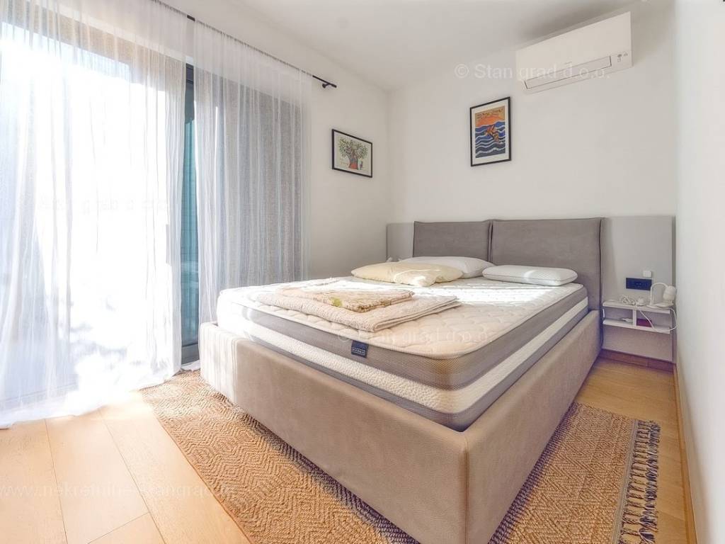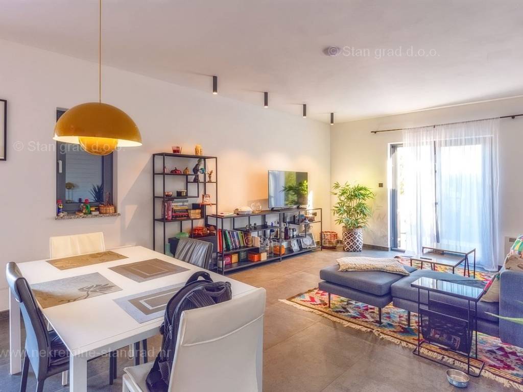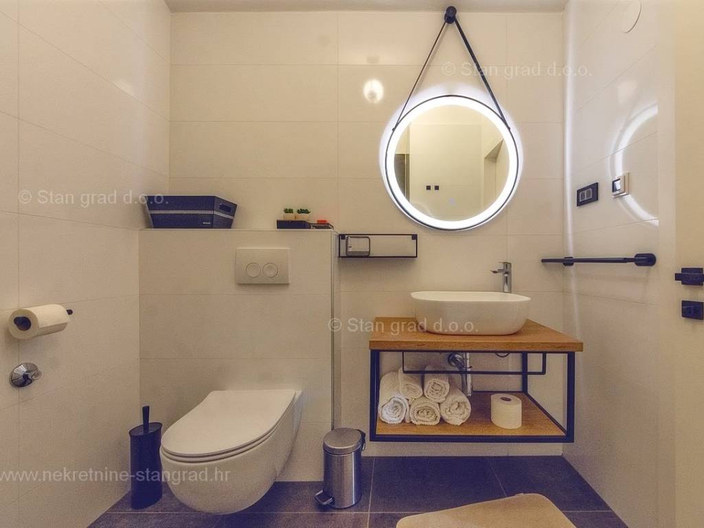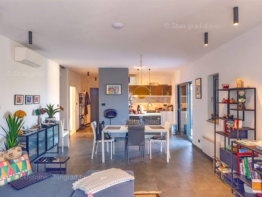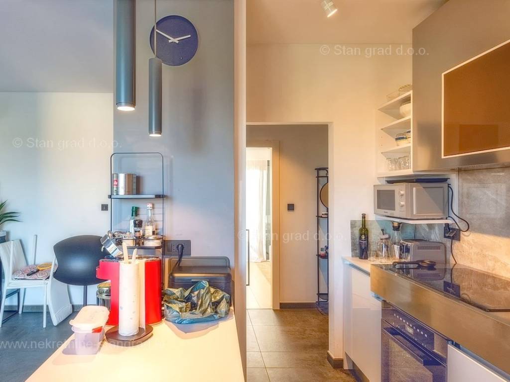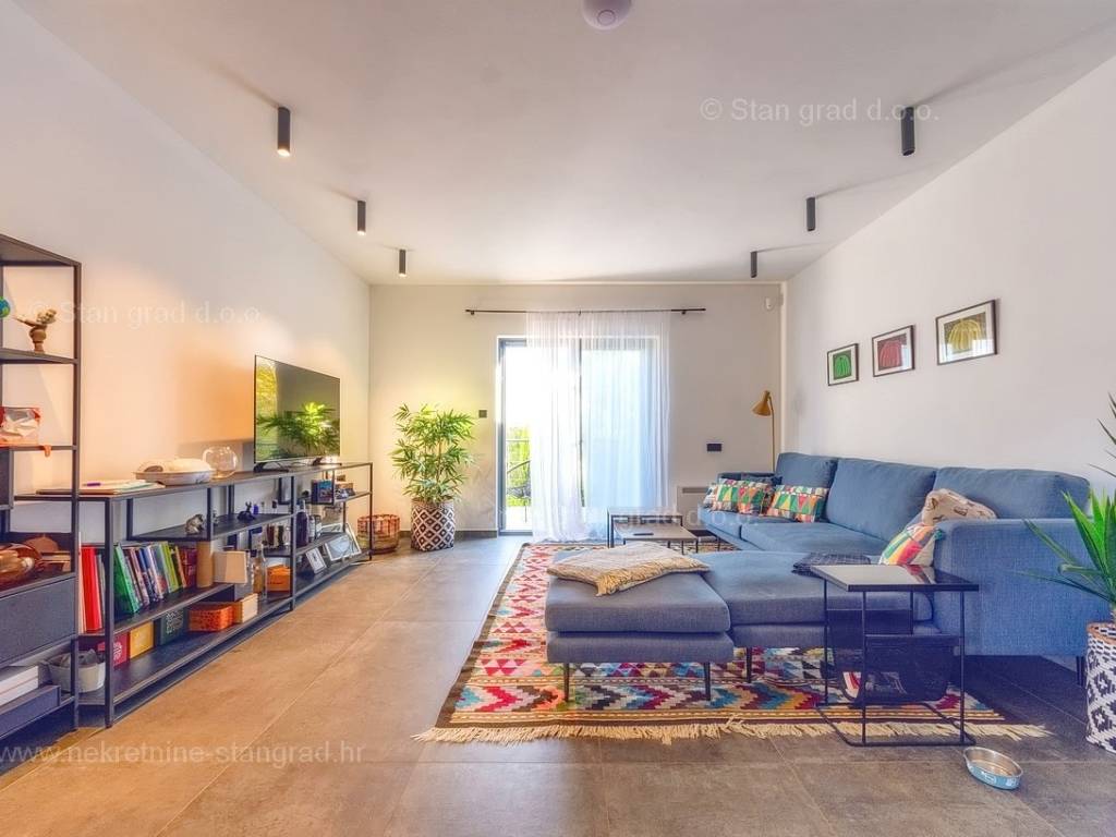 U agenciji Stan Grad Immobilien na Kvarneru prodaje se zanimljiva kuća za odmor unutar tradicionalno najtraženijeg hrvatskog jadranskog područja otok Krk. Navedena se kuća nalazi na vrlo lijepoj poziciji nedaleko mora u Uvali Soline. Gledajući strukturno, ovo je samostojeća kuća katnica. Besprijekorno izvedena nekretnina sastavljena je od ukupno 3 etaže. Kuća ima dva odvojena stana. Površina ove kuće iznosi ukupno 300 m2. U prizemlju navedene nekretnine nalazi se studio apartman, opremljena teretana, sauna i grijani bazen dužine 9 metara. Na prvom katu smješten je dvoetažni apartman. Donju etažu apartmana čini prostrani dnevni boravak, kuhinja i blagovaonica, 1 spavaća soba s vlastitom kupaonicom, gostinjski wc i izlaz na veliku terasu s panoramskim pogledom na more. Na gornjoj etaži apartmana nalaze se dvije spavaće sobe, svaka sa svojom kupaonicom. Unutarnji prostori nekretnine su osobito dobro održavani te u potpunosti opremljeni potrebnim tehničkim uređajima i vrlo kvalitetnim namještajem. Dodanu vrijednost ovom cijelom objektu daje okućnica oplemenjena bazenom koji se grije dizalicom topline, a voda zagrijava putem solarnih panela i sunčalištem, mediteranskim biljem te ljetnom kuhinjom. Prostrana okućnica opisane nekretnine nudi natkriveni parking za više vozila s punionicom za električna vozila. Uz sve navedeno, treba istaknuti da nekretnina ima prekrasan otvoreni pogled na more. Ova nekretnina je u vlasništvu fizičke osobe i kao takva prilikom prijenosa vlasništva na kupca podliježe obvezi plaćanja poreza na promet nekretnine u visini 3%. Vlasnik kuće jamči brz prijenos prava raspolaganja nekretninom na kupca. Bit će nam zadovoljstvo primiti vas i uslužiti na otoku Krku. Agencija Stan Grad Immobilien će svim svojim klijentima pružiti svu potrebnu pomoć kod uknjižbe vlasništva i preuzimanja same nekretnine.