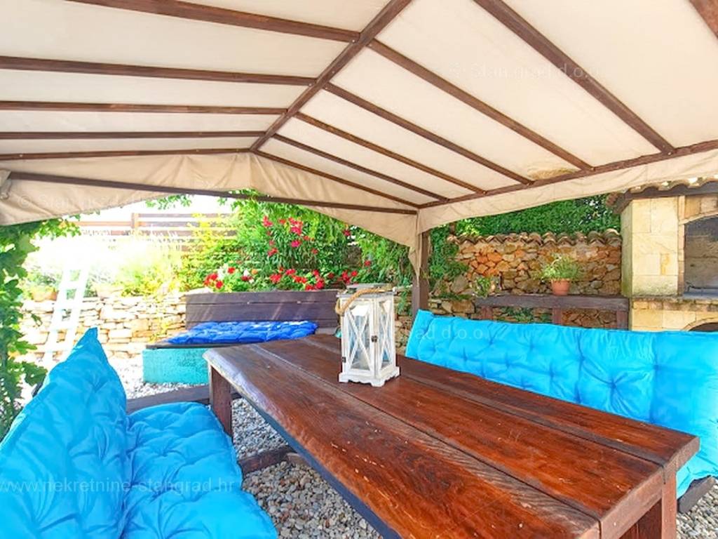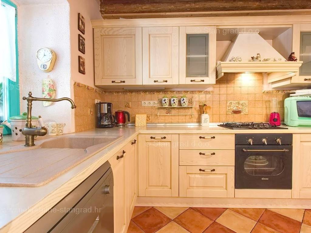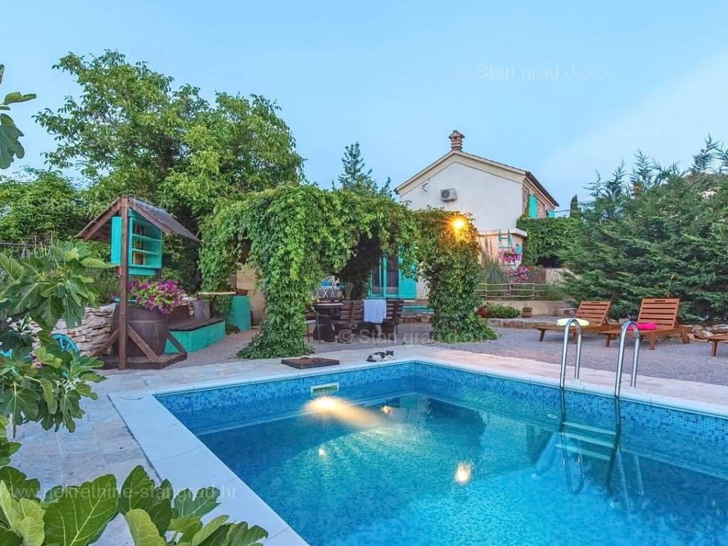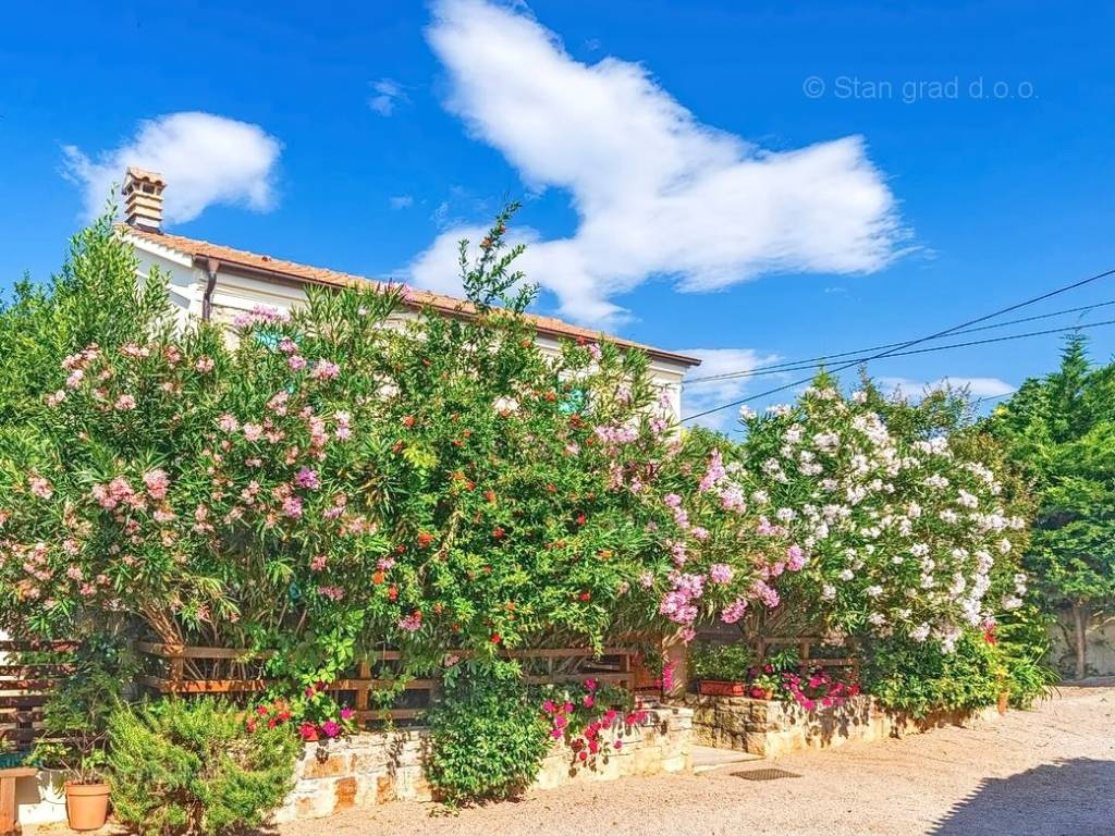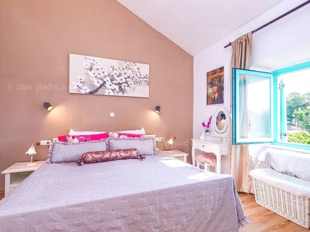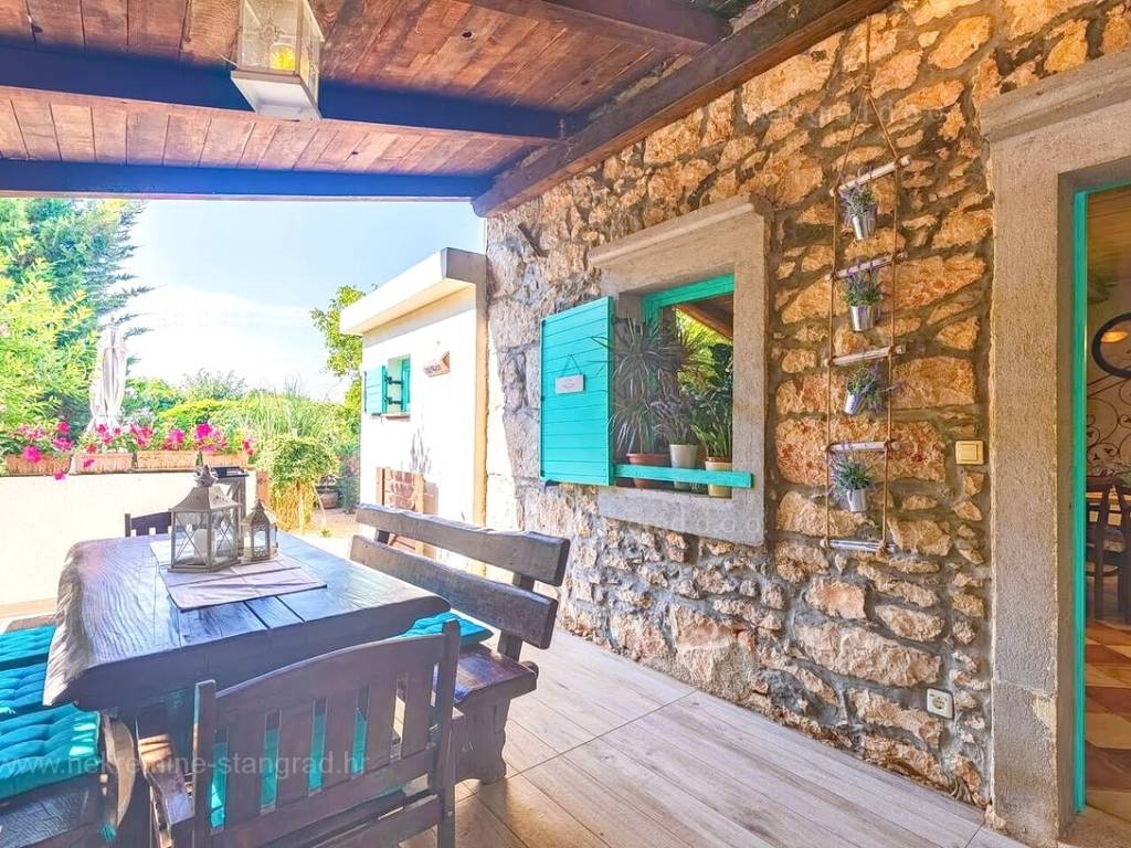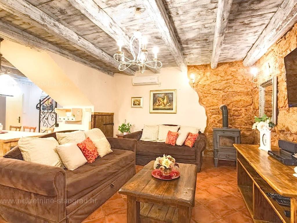 Na prodaju kod naše agencije na Kvarneru je stavljena vrlo vrijedna i skupocjeno građena kuća za odmor na poznatom i atraktivnom jadranskom turističkom području otok Krk. Ova je kuća pozicionirana na mirnoj lokaciji u okolici primorskog mjesta Malinska, ne predaleko od mora. Gledajući strukturno, ovo je samostojeća kuća katnica s pomoćnim objektom površine cca 50 m2. Besprijekorno izvedena nekretnina sastavljena je od ukupno 2 etaže. Površina ove kuće iznosi ukupno 180 m2. Ovom površinom su u prizemlju obuhvaćeni dnevni boravak i kuhinja s blagovaonicom, toalet, spavaća soba opremljena kupaonicom s jacuzzijem, spremište i izlaz na natkrivenu terasu od 50 m2. Spiralnim stepeništem od kovanog željeza dolazi se na prvi kat na kojem se nalazi dječja soba i glavna spavaća soba koja ima vlastitu kupaonicu. U izvanredno održavani i raskošno namješteni interijer predmetne nekretnine je instaliran bogati set uređaja novije generacije. Dodanu vrijednost ovom cijelom objektu daje okućnica oplemenjena bazenom i sunčalištem. Također kuća ima konobu od 60 m2 i više natkrivenih terasa idealnih za druženje. Pomoćni objekt se sastoji od kuhinje, blagovaonice, galerije, kupaonice, konobe i wc-a. Prostrana okućnica opisane nekretnine uređeno je komotno parkiranje više vozila. Uz prethodno, nije zanemarivo kazati da kuća ima lijep pogled na šumu i prirodno raslinje. Predmetna je kuća u vlasništvu fizičke obveze i kod prijenosa vlasništva podliježe obračunu poreza na promet nekretnina u visini 3%. Prodavatelj nekretnine garantira brz prijenos vlasničkih prava te urednu vlasničku i tehničku dokumentaciju. Najavite se i rado ćemo vas primiti u našem uredu na otoku Krku. Odlučite li se za nas, stručni tim posredničkog ureda Stan Grad Immobilien će vam sa zadovoljstvom pomoći kod prijenosa vlasništva nekretnine i računa za komunalne priključke na svoje ime.