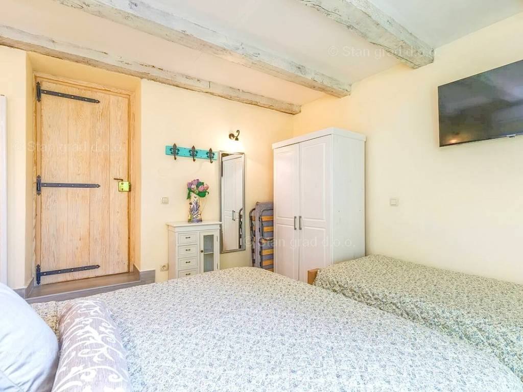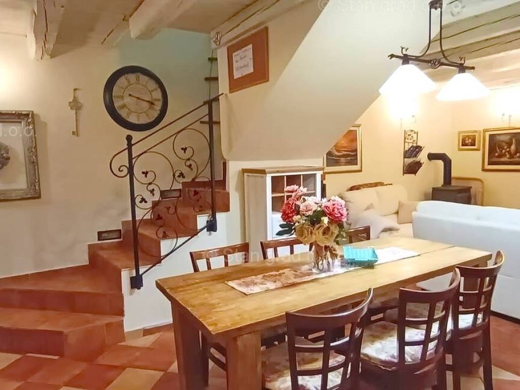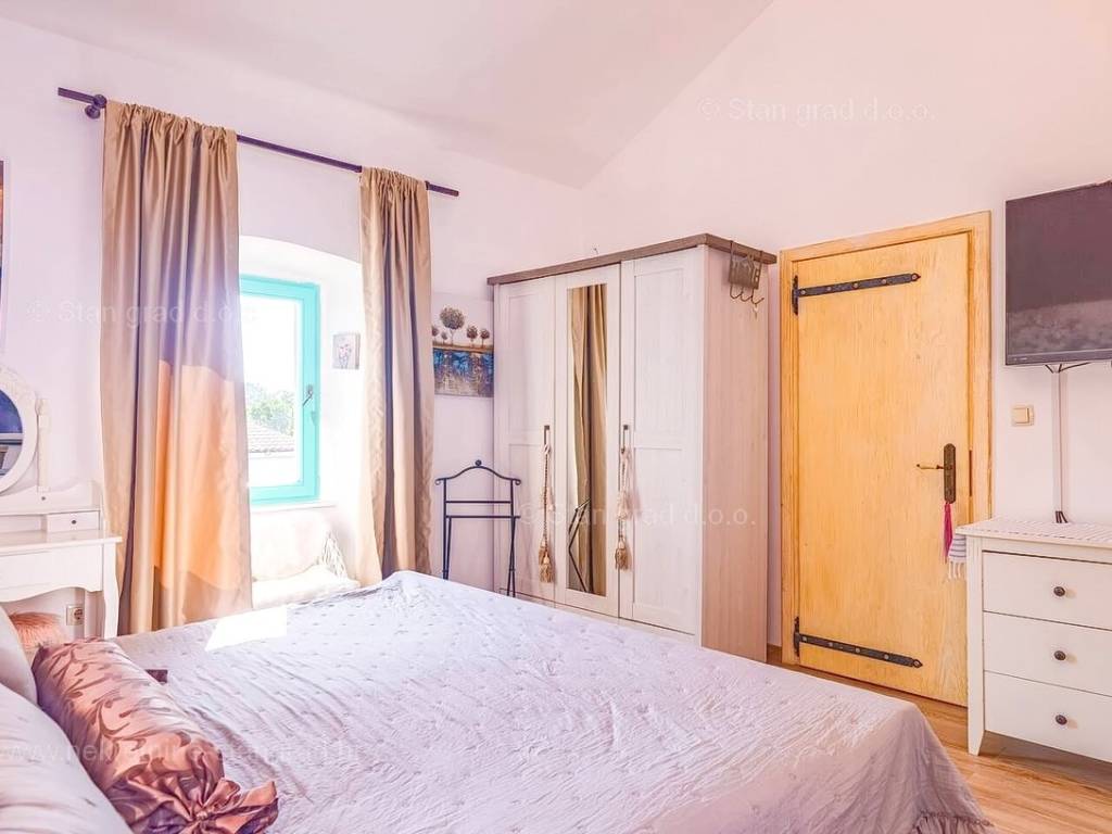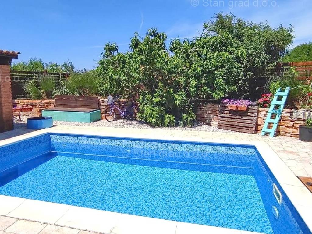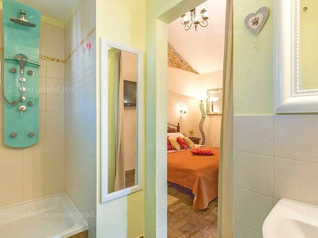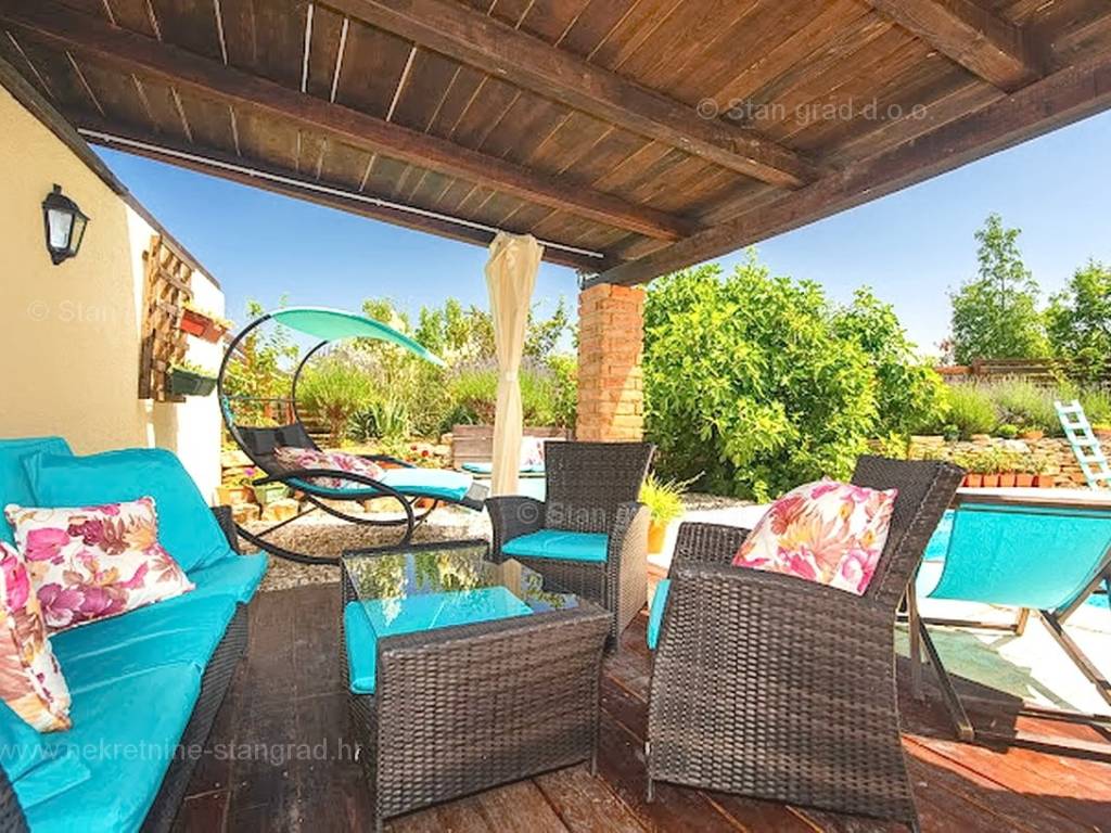 Na prodaju kod naše agencije na Kvarneru je stavljena vrlo vrijedna i skupocjeno građena kuća za odmor na poznatom i atraktivnom jadranskom turističkom području otok Krk. Ova je kuća pozicionirana na mirnoj lokaciji u okolici primorskog mjesta Malinska, ne predaleko od mora. Gledajući strukturno, ovo je samostojeća kuća katnica s pomoćnim objektom površine cca 50 m2. Besprijekorno izvedena nekretnina sastavljena je od ukupno 2 etaže. Površina ove kuće iznosi ukupno 180 m2. Ovom površinom su u prizemlju obuhvaćeni dnevni boravak i kuhinja s blagovaonicom, toalet, spavaća soba opremljena kupaonicom s jacuzzijem, spremište i izlaz na natkrivenu terasu od 50 m2. Spiralnim stepeništem od kovanog željeza dolazi se na prvi kat na kojem se nalazi dječja soba i glavna spavaća soba koja ima vlastitu kupaonicu. U izvanredno održavani i raskošno namješteni interijer predmetne nekretnine je instaliran bogati set uređaja novije generacije. Dodanu vrijednost ovom cijelom objektu daje okućnica oplemenjena bazenom i sunčalištem. Također kuća ima konobu od 60 m2 i više natkrivenih terasa idealnih za druženje. Pomoćni objekt se sastoji od kuhinje, blagovaonice, galerije, kupaonice, konobe i wc-a. Prostrana okućnica opisane nekretnine uređeno je komotno parkiranje više vozila. Uz prethodno, nije zanemarivo kazati da kuća ima lijep pogled na šumu i prirodno raslinje. Predmetna je kuća u vlasništvu fizičke obveze i kod prijenosa vlasništva podliježe obračunu poreza na promet nekretnina u visini 3%. Prodavatelj nekretnine garantira brz prijenos vlasničkih prava te urednu vlasničku i tehničku dokumentaciju. Najavite se i rado ćemo vas primiti u našem uredu na otoku Krku. Odlučite li se za nas, stručni tim posredničkog ureda Stan Grad Immobilien će vam sa zadovoljstvom pomoći kod prijenosa vlasništva nekretnine i računa za komunalne priključke na svoje ime.
