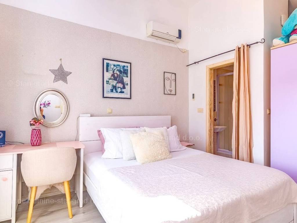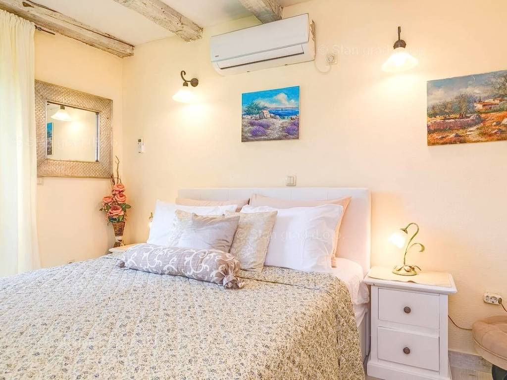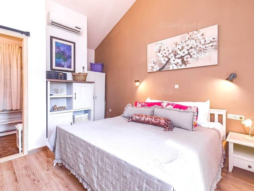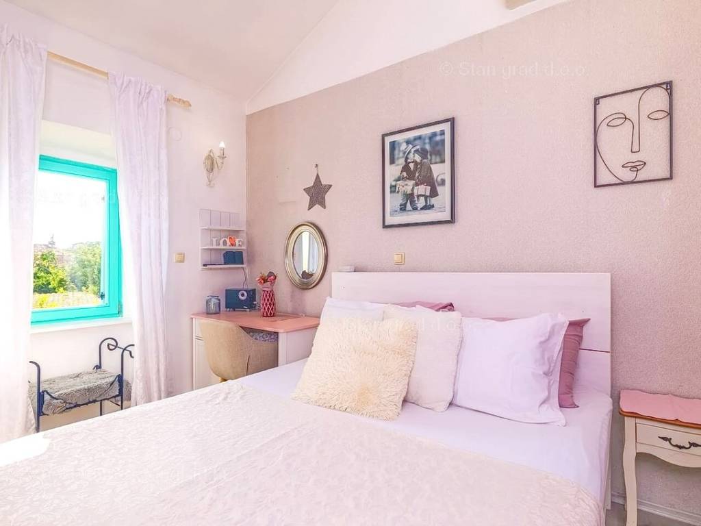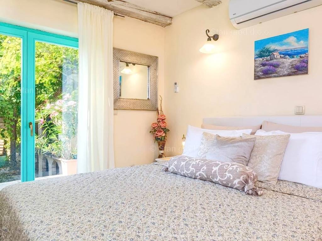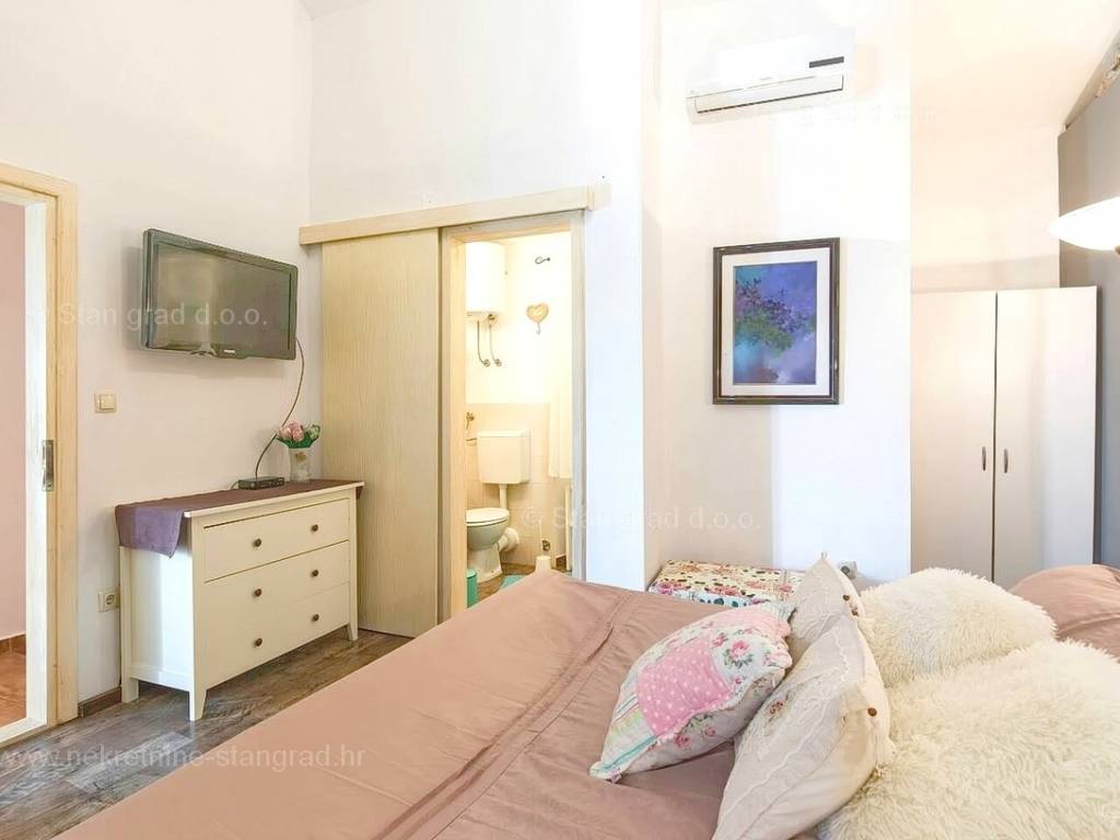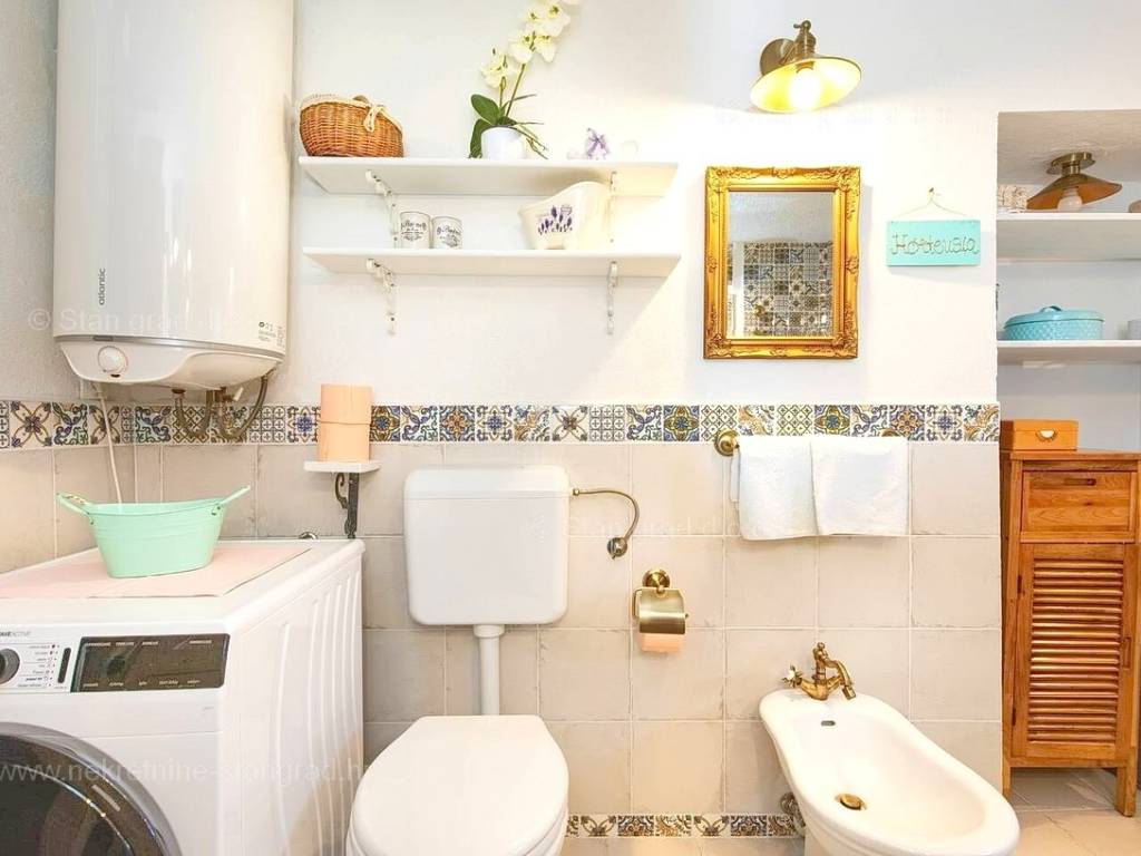 Na prodaju kod naše agencije na Kvarneru je stavljena vrlo vrijedna i skupocjeno građena kuća za odmor na poznatom i atraktivnom jadranskom turističkom području otok Krk. Ova je kuća pozicionirana na mirnoj lokaciji u okolici primorskog mjesta Malinska, ne predaleko od mora. Gledajući strukturno, ovo je samostojeća kuća katnica s pomoćnim objektom površine cca 50 m2. Besprijekorno izvedena nekretnina sastavljena je od ukupno 2 etaže. Površina ove kuće iznosi ukupno 180 m2. Ovom površinom su u prizemlju obuhvaćeni dnevni boravak i kuhinja s blagovaonicom, toalet, spavaća soba opremljena kupaonicom s jacuzzijem, spremište i izlaz na natkrivenu terasu od 50 m2. Spiralnim stepeništem od kovanog željeza dolazi se na prvi kat na kojem se nalazi dječja soba i glavna spavaća soba koja ima vlastitu kupaonicu. U izvanredno održavani i raskošno namješteni interijer predmetne nekretnine je instaliran bogati set uređaja novije generacije. Dodanu vrijednost ovom cijelom objektu daje okućnica oplemenjena bazenom i sunčalištem. Također kuća ima konobu od 60 m2 i više natkrivenih terasa idealnih za druženje. Pomoćni objekt se sastoji od kuhinje, blagovaonice, galerije, kupaonice, konobe i wc-a. Prostrana okućnica opisane nekretnine uređeno je komotno parkiranje više vozila. Uz prethodno, nije zanemarivo kazati da kuća ima lijep pogled na šumu i prirodno raslinje. Predmetna je kuća u vlasništvu fizičke obveze i kod prijenosa vlasništva podliježe obračunu poreza na promet nekretnina u visini 3%. Prodavatelj nekretnine garantira brz prijenos vlasničkih prava te urednu vlasničku i tehničku dokumentaciju. Najavite se i rado ćemo vas primiti u našem uredu na otoku Krku. Odlučite li se za nas, stručni tim posredničkog ureda Stan Grad Immobilien će vam sa zadovoljstvom pomoći kod prijenosa vlasništva nekretnine i računa za komunalne priključke na svoje ime.