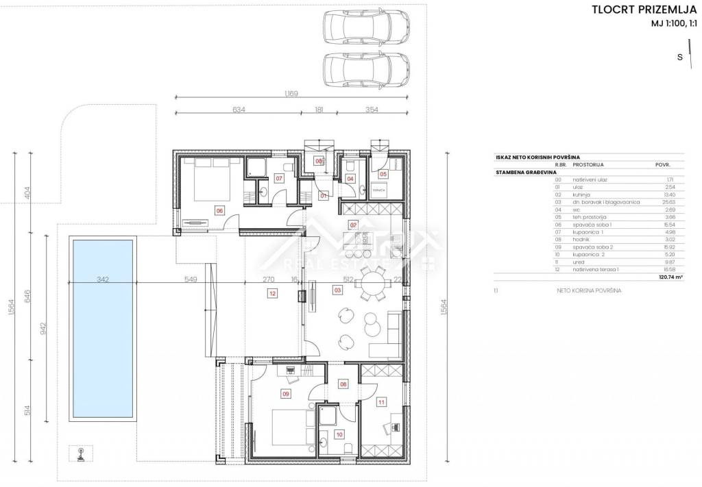 Prodaje se ova moderna nisko-energetska prizemnica s bazenom ukupne neto stambene površine 120 m2, smještena u mirnom naselju u predgrađu Poreča, u neposrednoj blizini mora i svih potrebnih sadržaja za život.