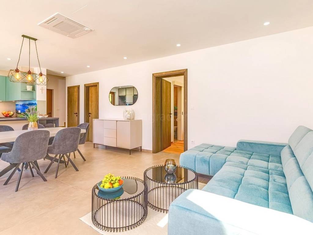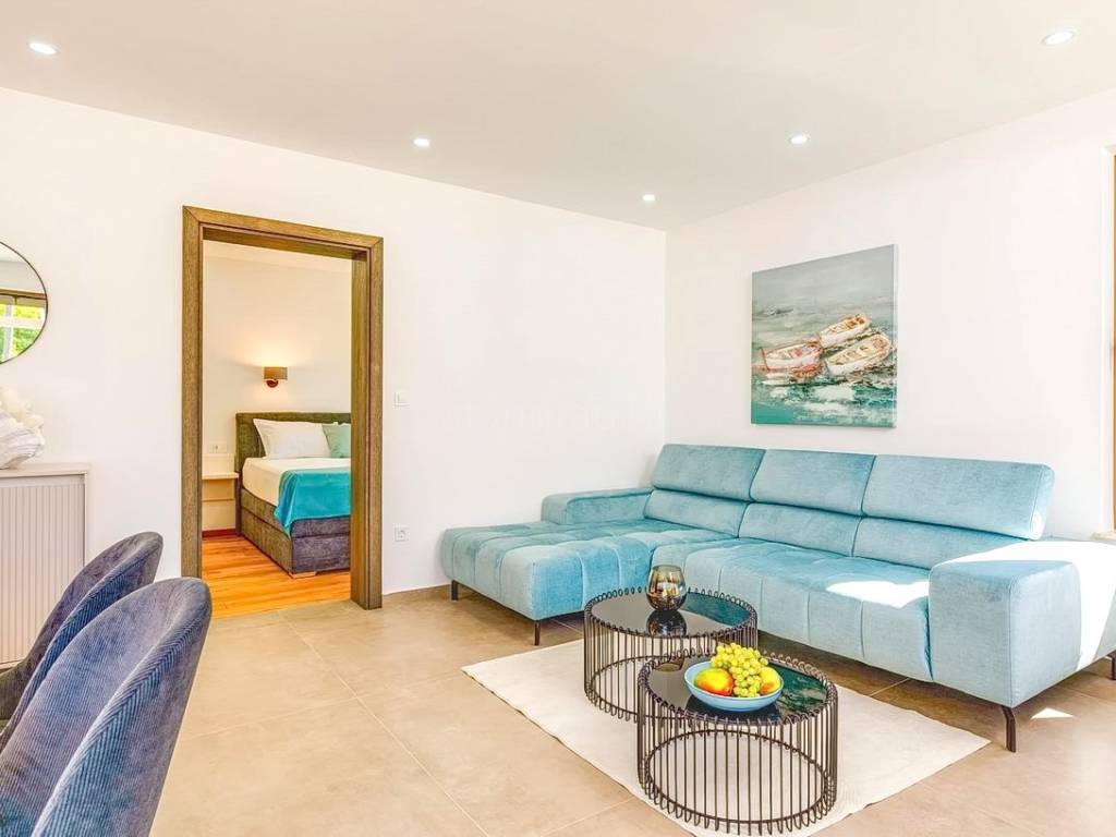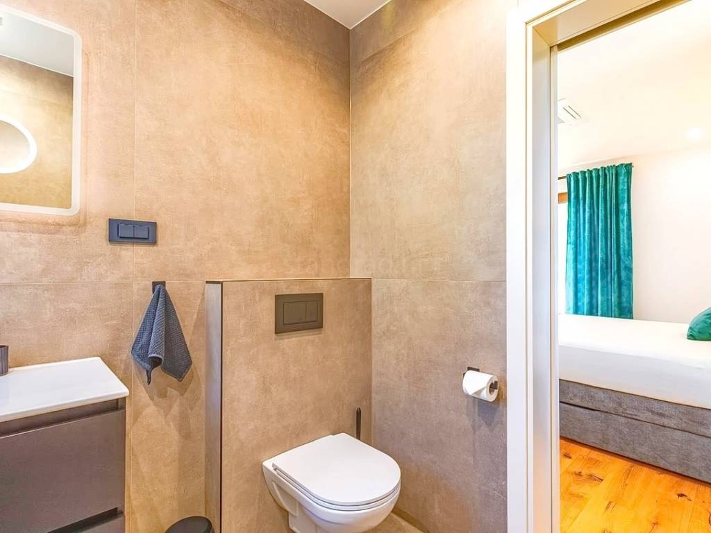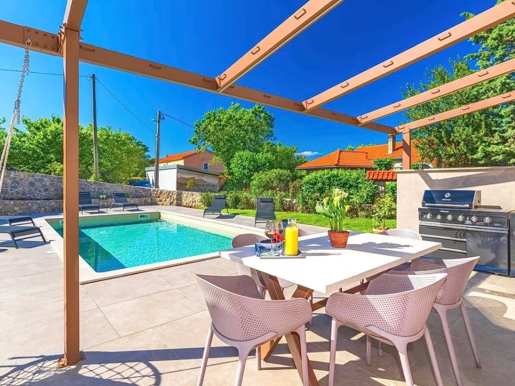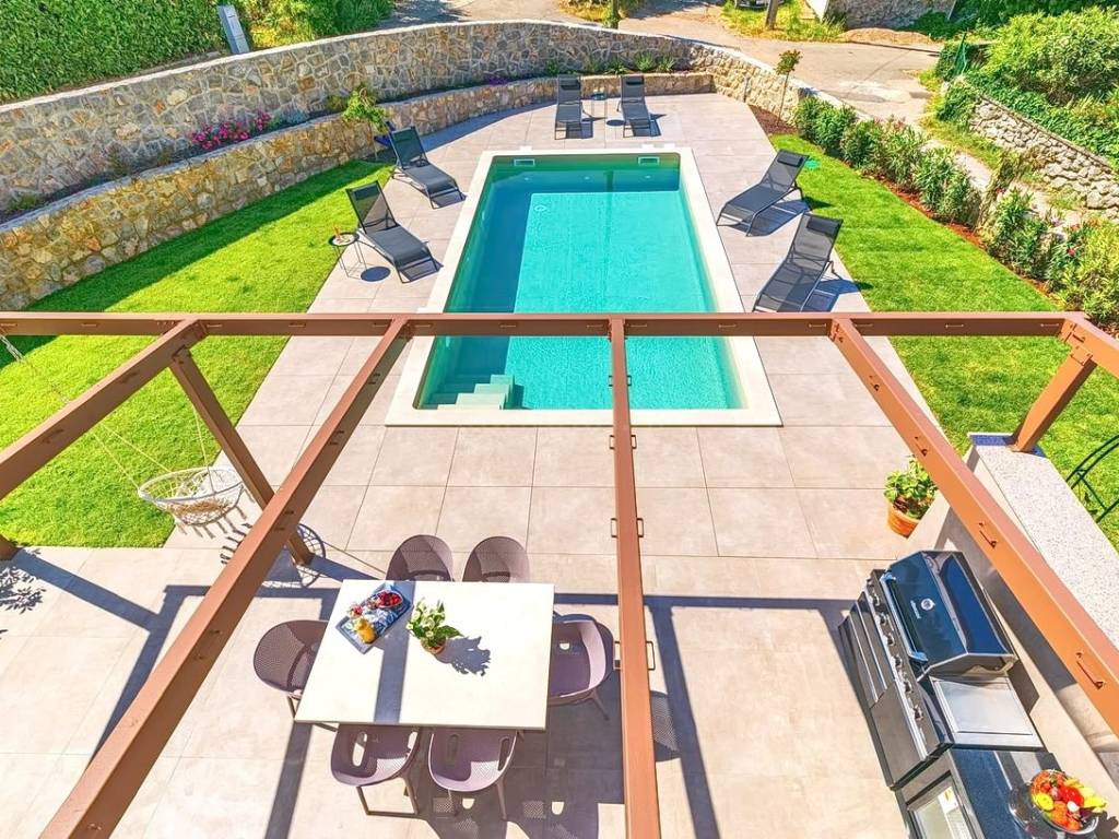 Na prodaju kod naše agencije na Kvarneru je stavljena vrlo vrijedna i skupocjeno građena kuća za odmor na poznatom i atraktivnom jadranskom turističkom području otok Krk. Ova je kuća pozicionirana na mirnoj lokaciji u okolici grada Krka, ne predaleko od mora. Strukturno, ovo je dvojna kuća katnica. Suvremeno građena kuća se sastoji od prostora raspoređenog na ukupno 2 etaže. Nekretnina obuhvaća ukupnu površinu od 140 m2. U navedenoj površini u prizemlju sadržani su ulazni hodnik, wc, ostava, spavaća soba s vlastitom kupaonicom, open space kuhinja s blagovaonicom i dnevni boravak s izlazom na okućnicu. Na katu kuće nalaze se dvije spavaće sobe, svaka s vlastitom kupaonicom, garderobom i izlazom na veliku terasu. Posebnu čar ovom posjedu daje iznimno uređena okućnica koja sadržava bazen, sunčalište, natkrivenu terasu, ljetnu kuhinju i lounge za druženje. Na okućnici ove kuće je dovoljno prostora za parkiranje dva automobila. Osim navedenog, treba napomenuti da kuća ima lijep pogled na ovo primorsko mjesto. Ova nekretnina je u vlasništvu fizičke osobe i na ime njenog prijenosa kupac kuće je u obvezi plaćanja poreza na promet nekretnine u visini 3%. Vlasnik kuće jamči brz prijenos prava raspolaganja nekretninom na kupca. Kontaktirajte nas i rado ćemo vam prezentirati ovu nekretninu. Osim profesionalne prezentacije nekretnine, posrednički ured Stan Grad Immobilien će vam rado pomoći u poslovima prijenosa nekretnine i računa za komunalije.