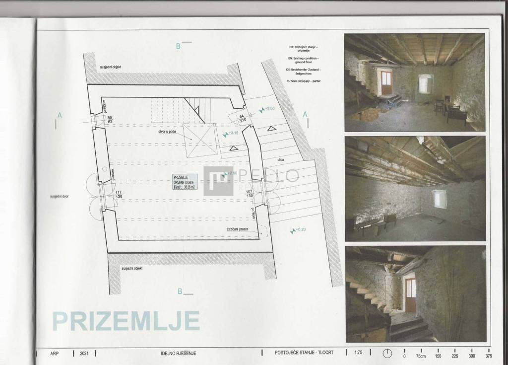 Javni parking nalazi se na udaljenosti od približno 240 metara. Nekretnina se nalazi u mirnoj ulici, u neposrednoj blizini svih sadržaja, te predstavlja izvrsnu priliku za investiciju u autentičnu dalmatinsku kuću s posebnim šarmom.