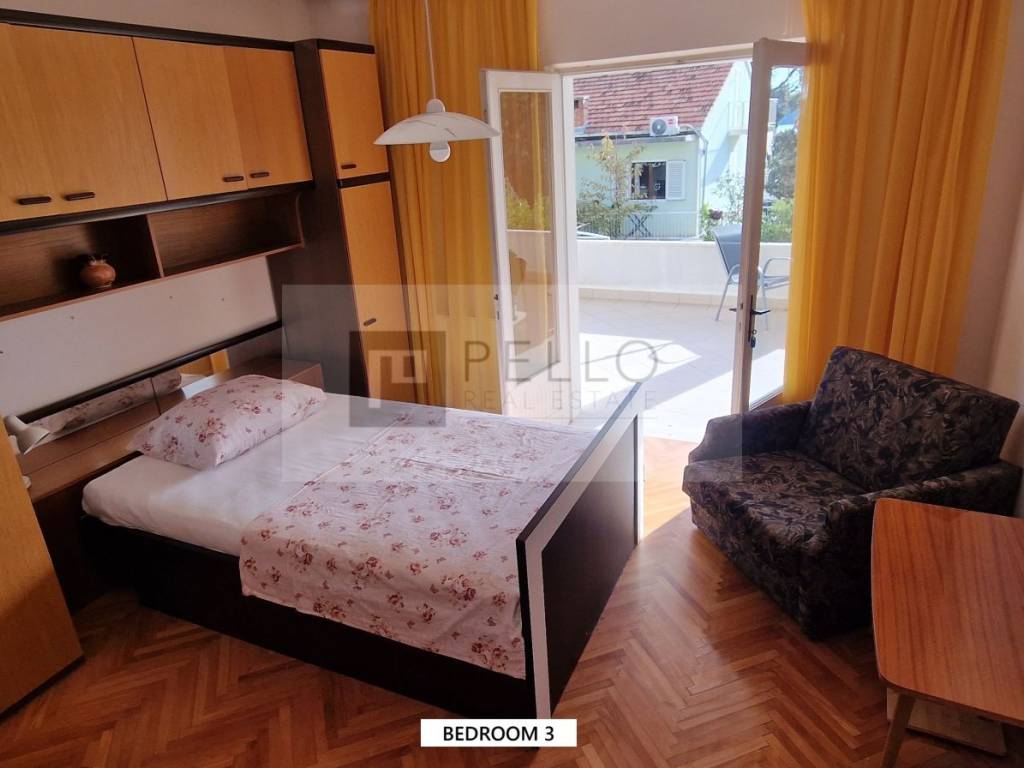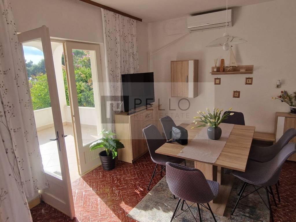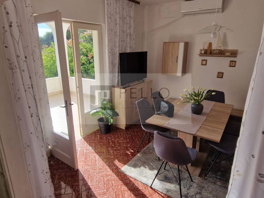 Prodaje se prostrani stan u prizemlju (istočna orijentacija) u Orebiću, na prekrasnom Pelješcu, smješten u mirnoj i neprometnoj ulici, idealan za obiteljski život ili odmor. Udaljen je svega 250 metara od mora, odnosno 3 minute laganog hoda. Stan nudi djelomičan pogled na more, okružen je zelenilom i mediteranskim agrumima, što dodatno doprinosi osjećaju mira i privatnosti.