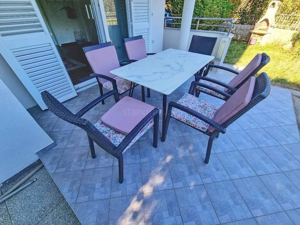 Treba naglasiti da, uz vlasništvo samog apartmana, novi vlasnik nekretnine kupnjom steče i pripadajuću okućnicu površine cca 90 m2. Vlasnik apartmana na raspolaganju će imati jedno parkirno mjesto. Povrh ranije spomenutih prostornih svojstava, apartman nudi lijep osjećaj boravka, kojem osobito pogoduje dobar pogled karakteristični primorski okoliš.