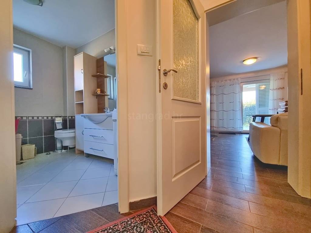 Razmatrajući nekretninu prema vrsti, ovo je prostrani jednoetažni apartman. U vrlo dobrom i kvalitetnom objektu, apartman je smješten na prizemnoj etaži. Apartman obuhvaća ukupnu površinu od približno 66 m2. Na navedenoj površini se nalaze ulazni hodnik, ostava, 2 spavaće sobe, kupaonica, kuhinja s blagovaonicom i dnevni boravak s izlazom na natkrivenu terasu i uređenu okućnicu. Odlično održavana unutrašnjost nekretnine je u potpunosti uređena kvalitetnim namještajem i svom potrebnom tehničkom opremom.