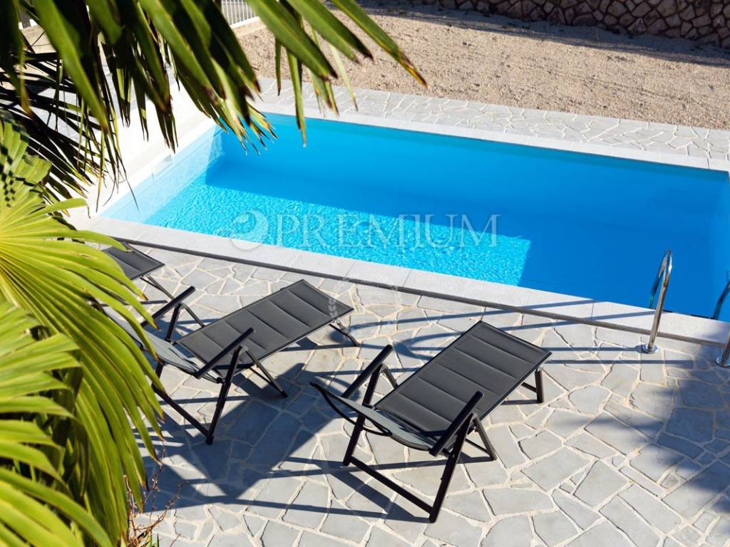 Na okućnici površine 665 m2 nalaze se bazen, sunčalište, natkriveni prostor za druženje i osam parkirnih mjesta.