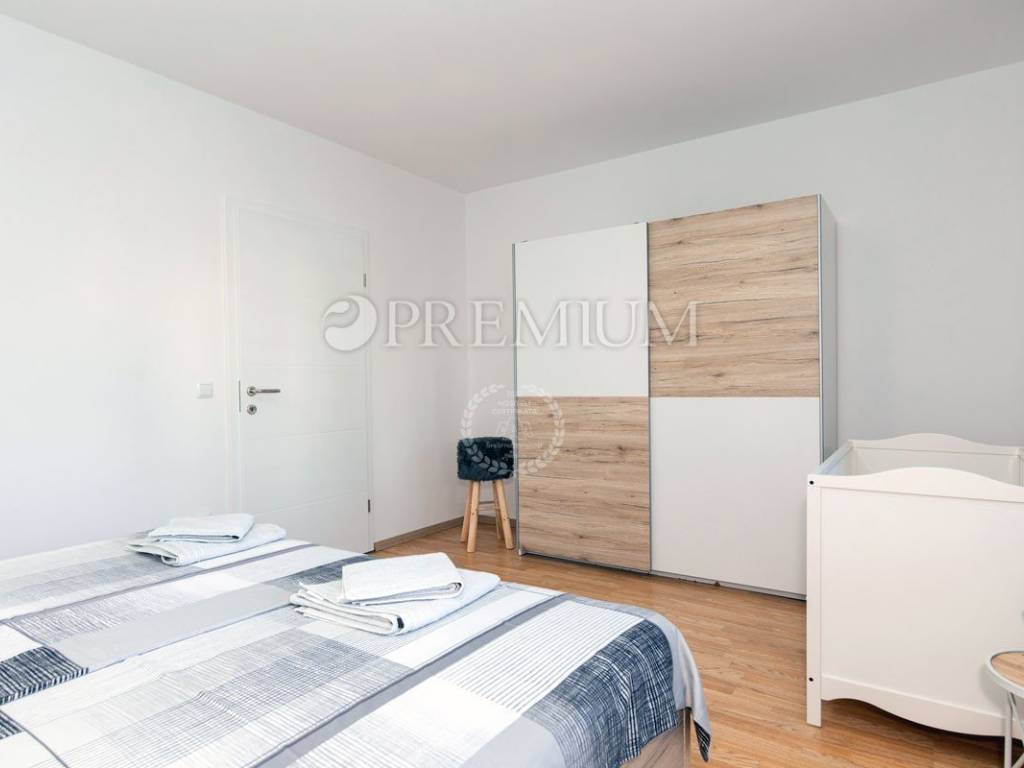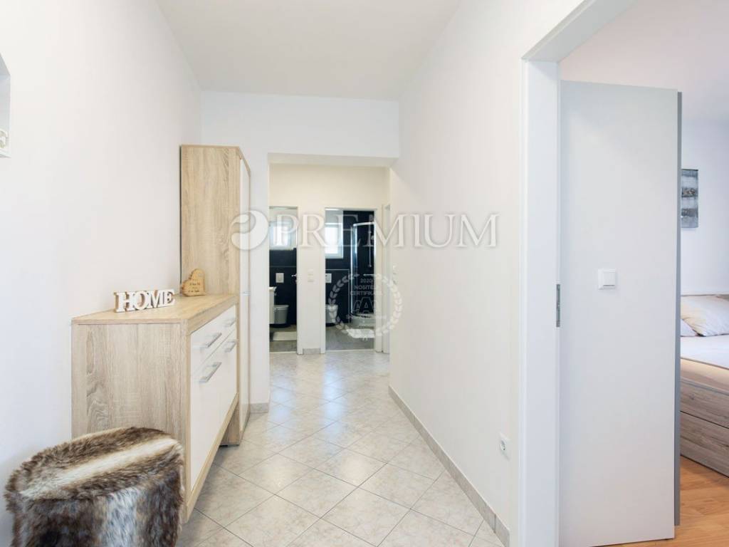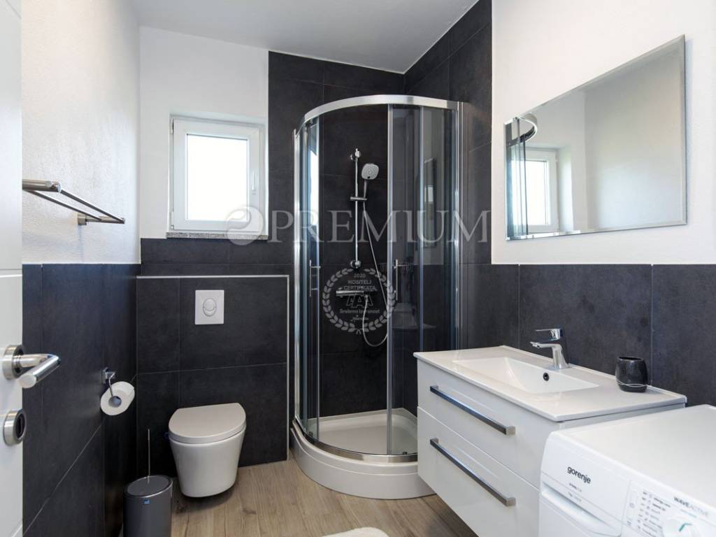 Na prvom katu se prostire apartman površine 114 m2, koji se sastoji od četiri spavaće sobe, dvije kupaonice, kuhinje, blagovaonice i dnevnog boravka s izlazom na terasu s djelomičnim pogledom na more!