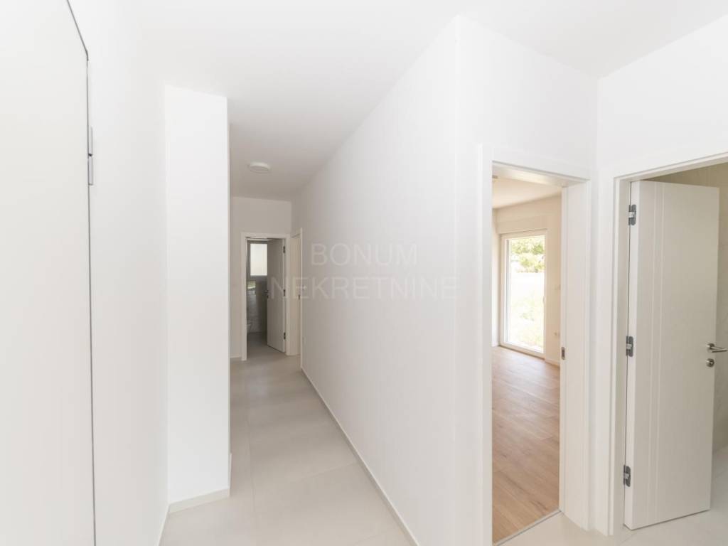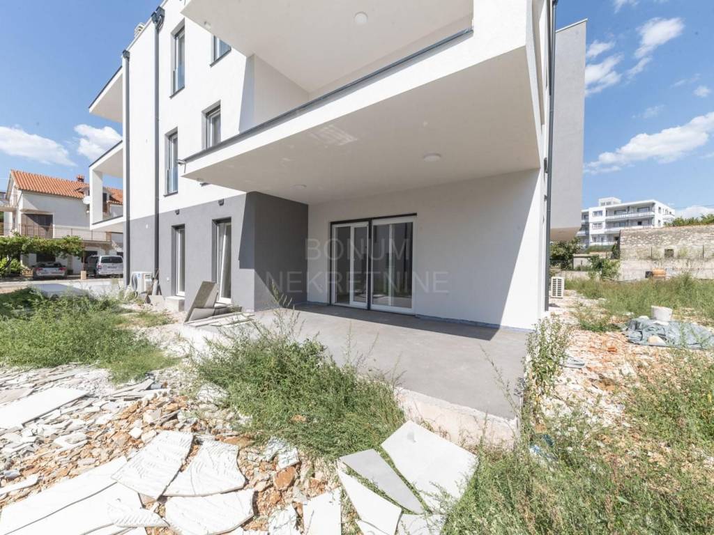 Prodaje se se apartman u prizemlju zgrade s vrtom, drugi red do mora, Vodice- Srima. Zgrada se nalazi na izuzetno atraktivnoj lokaciji, modernih je linija te ima svega osam stambenih jedinica. Sam apartman (62.22 m2 ) se sastoji od dvije spavaće sobe, kupaonice, toaleta, dnevnog dijela sa kuhinjom i blagovaonom u jednoj cjelini. Iz dnevnog dijela je izlaz na terasu od 16.35 m2 te vrt od 105.70 m2. Apartmanu pripada i jedno parkirno mjesto od 12.50 m2. Apartmani su izuzetno kvalitetno opremljeni (podno grijanje u kupaoni, klima uređaj, komarnici, električne rolete,...) Odlična nekretnina bilo za stanovanje tijekom cijele godine bilo za turističko iznajmljivanje.