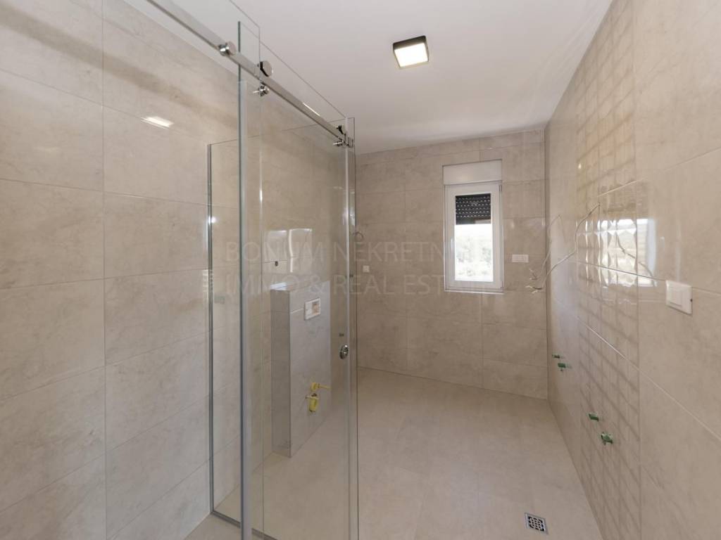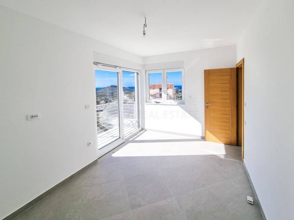 Prodaje se lijepi apartman u novogradnji, okolica Primoštena. Apartman se nalazi u zgradi sa svega šest stanova te dva ulaza. Sam apartman se nalazi na drugom katu zgrade. Sastoji se od dvije spavaće sobe, dvije kupaone, kuhinje s blagovaonom, dnevnog boravka te lijepe terase i balkona. Sam apartman ima 78.05 m2 te terasa ima 18.47 m2 te balkon ima 2.61 m2. Apartmanu pripada i jedno parkirno mjesto te spremište u podrumu zgrade. Apartman je kvalitetno opremljen( klima, električno podno grijanje u kupaoni, električni podizači roleta te kvalitetna stolarija..). Odlična i kvalitetna nekretnina na mirnoj lokaciji. Također ima prekrasan pogled na more.
