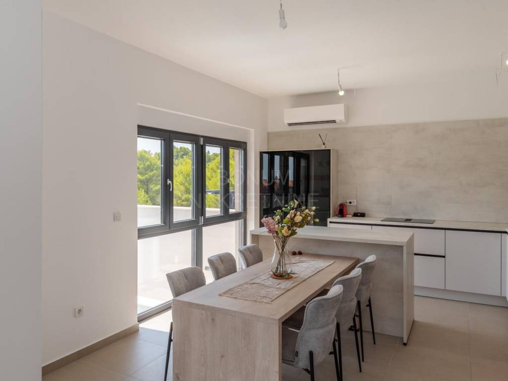 Kat kuće nudi dodatnu razinu komfora s tri prostrane spavaće sobe, dvije luksuzne kupaonice i dvije terase s još impresivnijim pogledom na more, pružajući vam savršen prostor za opuštanje.