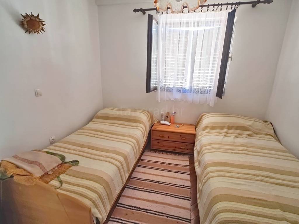 Kvalitetno izgrađena kuća sastoji se od sveukupno 2 prostorno i visinski korisne etaže. Kuća je strukturno podijeljena na dva zasebna stana. Nekretnina obuhvaća ukupnu površinu od 101 m2. Ovom površinom su obuhvaćena dva stana od kojih se apartman u prizemlju sastoji od ulaznog hodnika, dnevnog boravka, kuhinje s blagovaonicom, spavaće sobe, kupaonice i terase a stan na prvom katu se sastoji od dnevnog boravka, kuhinje s blagovaonicom, 2 spavaće sobe, kupaonice i dvije terase. Održavani interijer nekretnine je opremljen setom kvalitetne tehničke opreme i komadima dobrog namještaja.