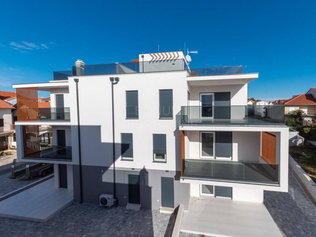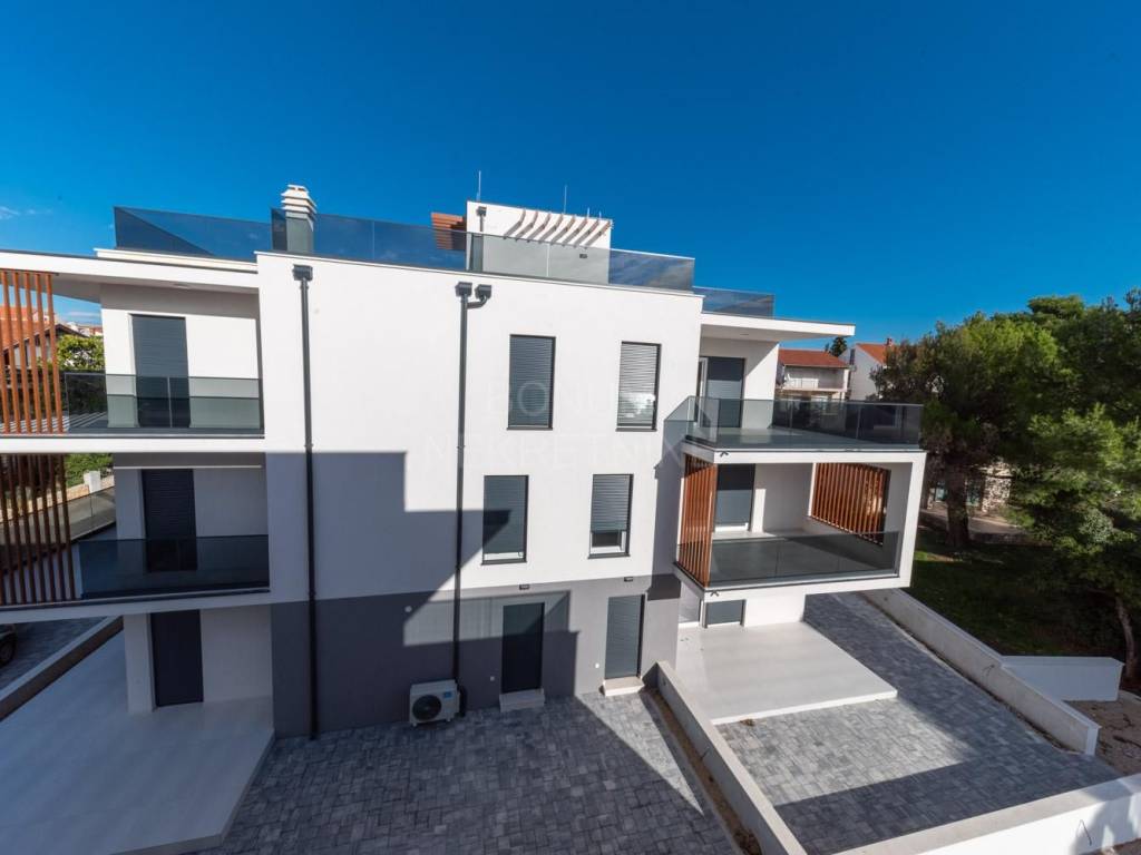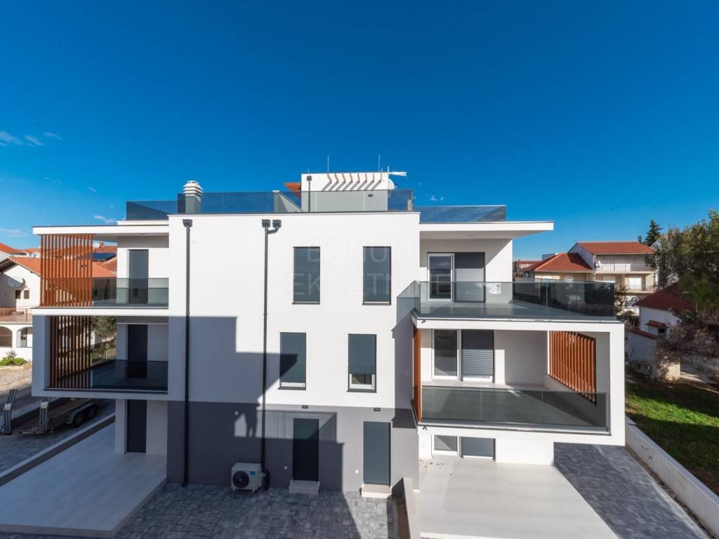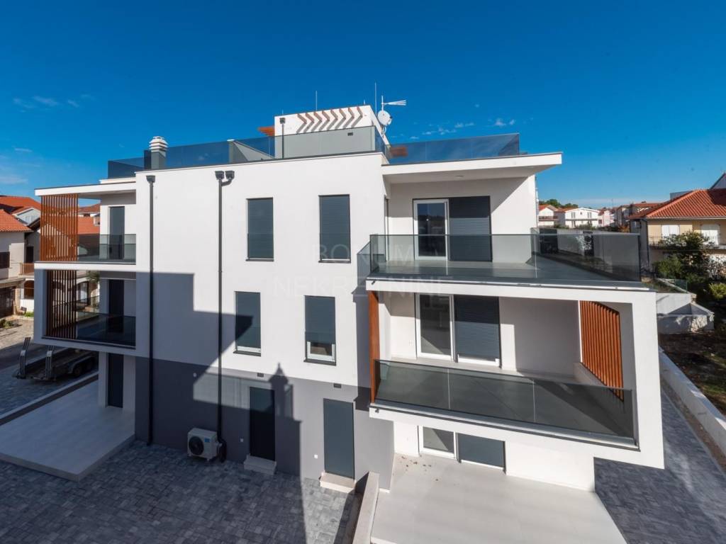 Prodaju se apartmani u novogradnji u neposrednoj blizini plaže, Vodice. Prekrasna zgrada modernog dizajna uklopljena u okoliš sastoji se od šest stambenih jedinica. U podrumu se nalaze garažna mjesta te spremišta. Apartmani će biti opremljeni po najnovijim standardima gradnje ( rolete s elektropodizačima, komarnici, podno grijanje,...). Idealna lokacija za boravak tijekom cijele kalendarske godine, udaljena je svega 100 m do plaže. Planirano useljenje je svibanj 2024 godine. Garažno mjesto te spremište su obavezni za kupnju uz svaki stan uz nadoplatu.