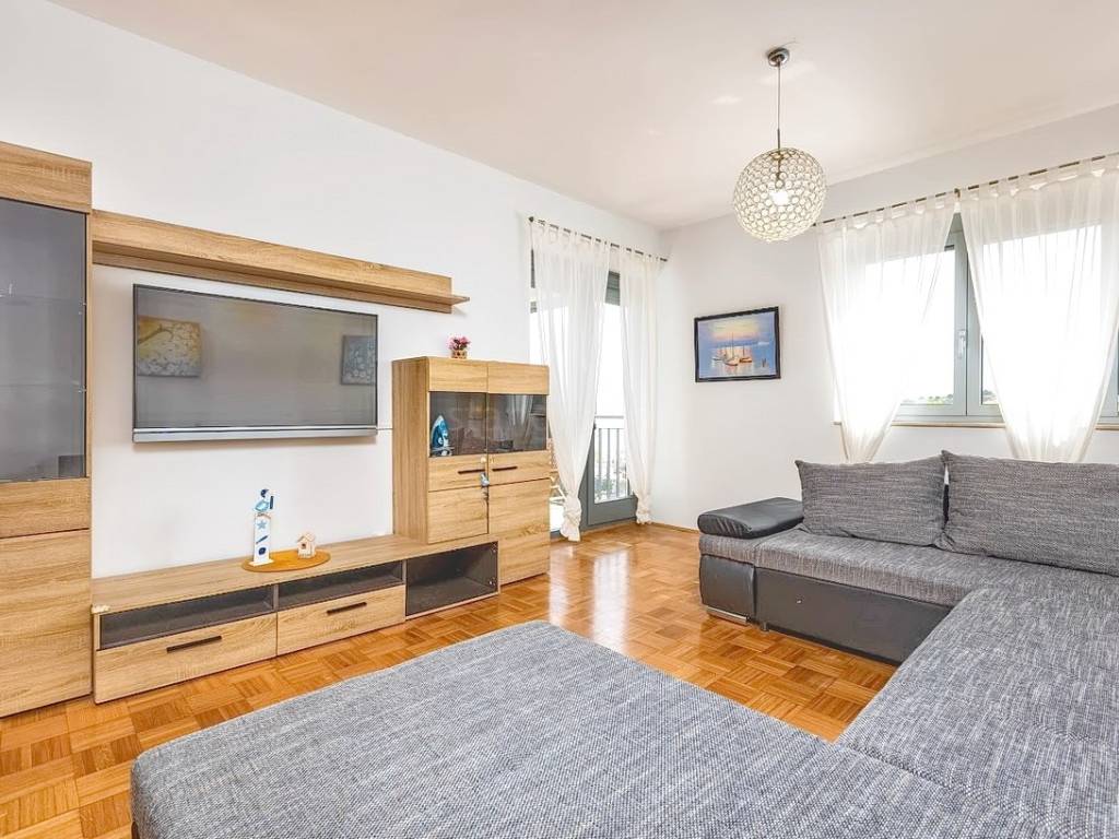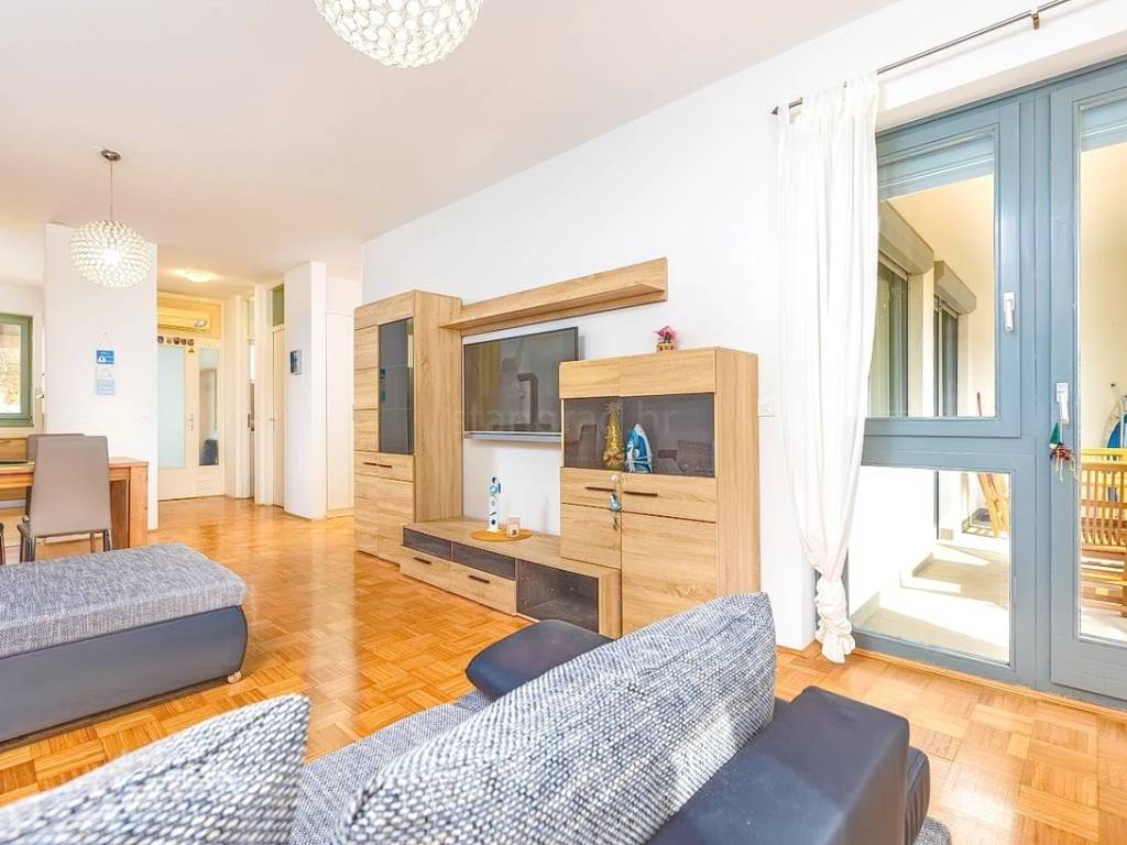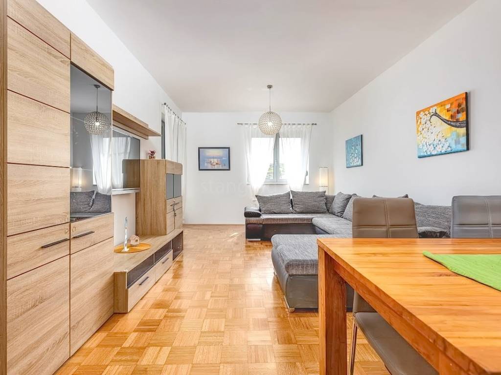 Apartman se nalazi na prvom katu uredno održavane stambene zgrade i prostire se na ukupno 90 kvadratnih metara. Sastoji se od prostranog dnevnog boravka povezanog s kuhinjom i blagovaonicom, tri spavaće sobe, kupaonice, dodatnog WC-a i balkona. Cijeli prostor je pažljivo uređen, potpuno opremljen kvalitetnim namještajem i suvremenim uređajima, te spreman za useljenje bez dodatnih ulaganja.