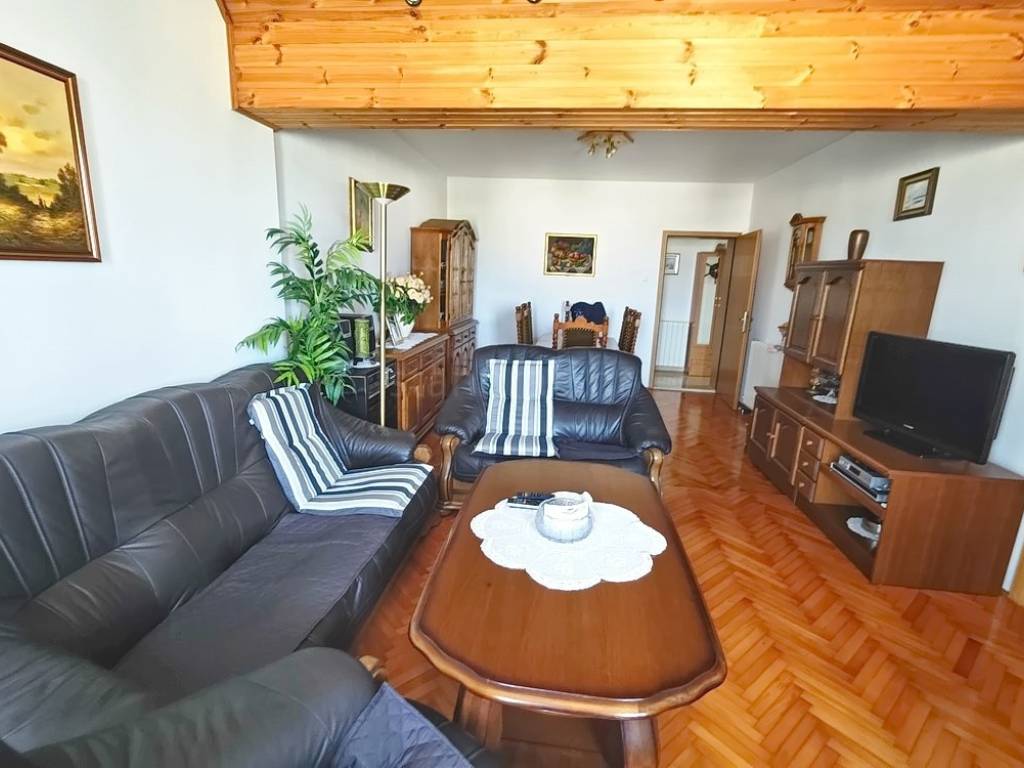 Nekretnina se sastoji od tri odvojena stana raspoređena na tri etaže, ukupne površine 267 četvornih metara. U prizemlju se nalazi stan površine 100 četvornih metara koji uključuje ulazni hodnik, spremište, kupaonicu, tri spavaće sobe, dnevni boravak, kuhinju s blagovaonicom i dvije terase. Na katu se nalazi drugi stan iste kvadrature, a sastoji se od ulaznog hodnika, kupaonice, spremišta, balkona, dvije spavaće sobe, kuhinje s blagovaonicom, dnevnog boravka i terase. Treća stambena jedinica smještena je u suterenu. Interijer kuće je dobro očuvan, a opremljen je kvalitetnim komadima namještaja i tehničkom opremom koja omogućuje funkcionalno i ugodno korištenje prostora.