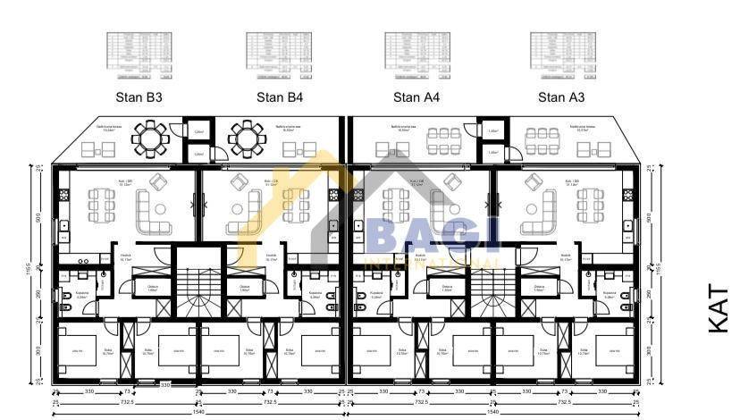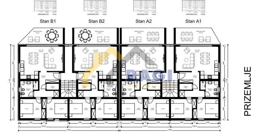 U visoko kvalitetnoj novogradnji prodaju se trosobni stanovi veličine od 75 m2 do 80 m2. Stanovima u prizemlju pripada i dio zemljišta odnosno vrt.