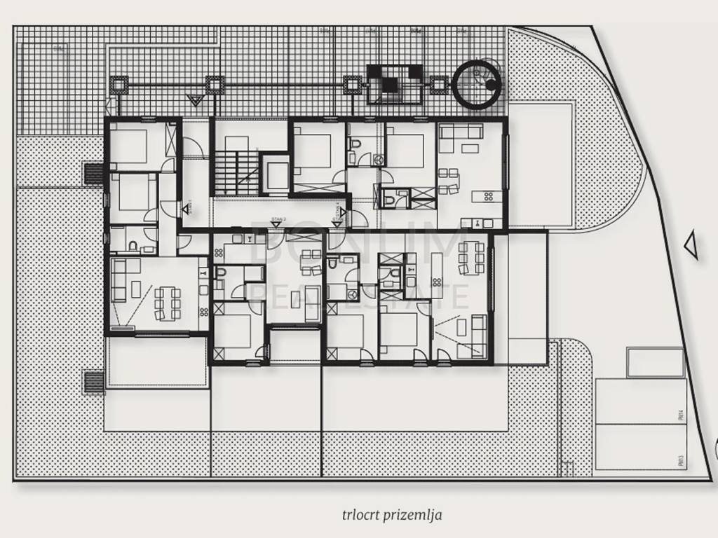 Prodaju se apartmani u zgradi s 16 stambenih jedinica. Zgrada je smještena na otoku Čiovo, Okrug Gornji. Planirana je kao simbol ekskluzivnosti, smještena je na dijelu otoka s nevjerojatnim pogledom na Jadransko more. Arhitektonska rješenja su pažljivo odabrana kako bi se uklopila u prirodnu ljepotu okoline, koristeći materijale vrhunske kvalitete i održive tehnologije. Dizajnirana je s naglaskom na prostranost, udobnost i luksuz. Svaki apartman pruža prozračnost i obilje prirodne svjetlosti, dok terase omogućuju neometani pogled na more i zalazak sunca. Objekt je projektiran kao nisko energetski, te će biti visoke energetske učinkovitosti. Stambena zgrada posjeduje 12 podzemnih garažnih mjesta te 7 vanjskih parkinga. Uz garažno mjesto dostupne su i punionice za električna vozila. Također, zgrada posjeduje i dizalo.