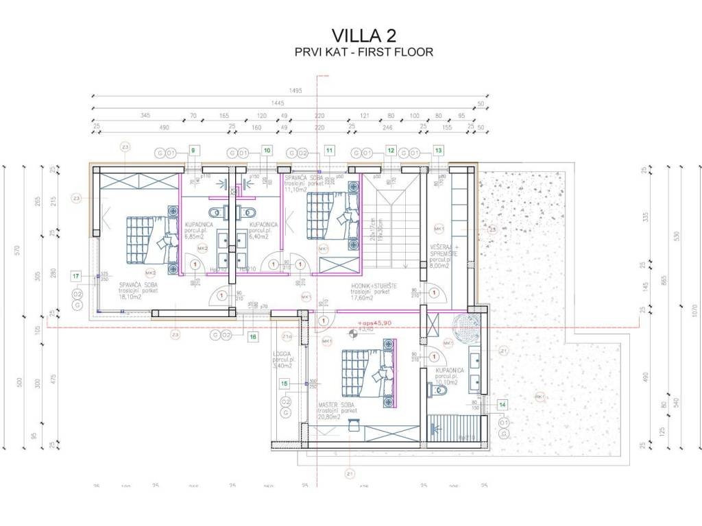 Površina građevinske parcele ove vile iznosi 604 m2, a ukupna neto površina iznosi 231,13 m2.