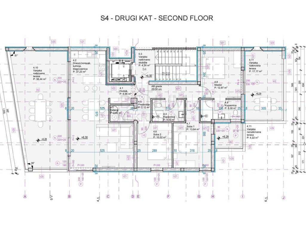 Stan S4 ima tri prostrane spavaće sobe, dvije moderno opremljene kupaonice, dnevni boravak povezan s kuhinjom i blagovaonicom te veliku vanjsku terasu (38.44 m2) za uživanje na otvorenom. Master soba ima izlaz na svoju vlastitu terasu od 17.17 m2, dok jedna spavaća soba ima svoju manju nenatkrivenu terasu od 4.22 m2.