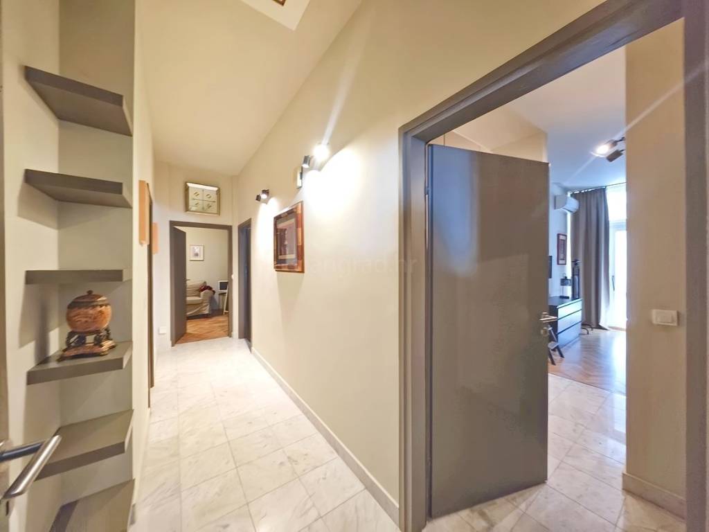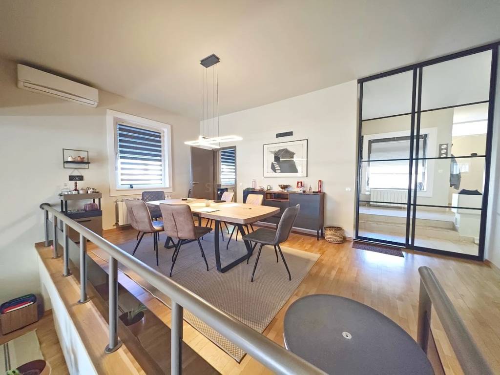 Kuća je dvojna prizemnica s garažom i prostire se na ukupnoj površini od 270 kvadratnih metara. Sastoji se od prostranog dnevnog boravka s kuhinjom i blagovaonicom, tri spavaće sobe, dvije kupaonice, zasebnog wc-a te lođe na koju izlaze dvije spavaće sobe. Unutarnji prostori kuće izuzetno su dobro održavani i u potpunosti opremljeni modernim tehničkim uređajima te kvalitetnim namještajem, čime se osigurava ugodan i funkcionalan boravak.