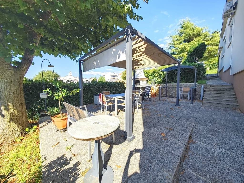 Vlasništvo kuće obuhvaća uređenu i oplemenjenu okućnicu površine 550 kvadratnih metara, koja dodatno pruža prostor za odmor i aktivnosti na otvorenom. Nekretnina uključuje kotlovnicu i spremište, što predstavlja vrijedan dodatni prostor za pohranu. Na posjedu je moguće parkiranje vozila u garaži, a dodatno se mogu parkirati dva vozila na otvorenom dijelu okućnice. Kuća također nudi prekrasan pogled na more, što dodatno naglašava njenu atraktivnost i kvalitetu.