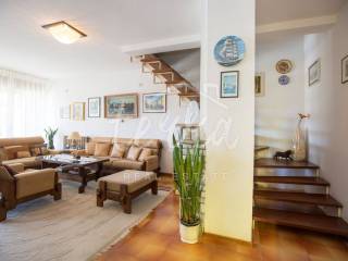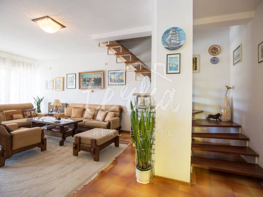 Info 00385 98 592122 Roberta Kuća sa garažom se nalazi u Rapcu, 3. red od mora, zračne udaljenosti cca 130 m od mora i obale. Pogled na more i zaljev pruža se sa sve tri etaže nesmetano. Centar mjesta, te plaže udaljene su cca 10 minuta pješke. Kuća je dvojni dio građevine sa dijelom parcele na jugoistočnoj strani dvojne građevine. Kuća se sastoji od tri etaže: na prvoj etaži se nalazi studio apartman sa spremištem i terasom površine 30 m2. Na drugoj etaži nalazi se prostran stan sa velikom terasom iz kojeg se pruža otvoren pogled na Rabačku uvalu i more kao stvoren za jutarnje kavice i uživanje u prekrasnom pogledu. Stan je unutarnjim stepeništem povezan sa stanom na trećoj etaži. Svaka etaža ima zaseban ulaz, te ih je moguće potpuno odvojiti i napraviti dva zasebna stana. Cijela kuća sa terasama je orijentirana prema jugozapadu. Uz kuću se nalazi i garaža. Prednost ove nekretnine je pozicija, prekrasan pogled prema moru, blizina centra, blizina plaža te mogućnosti koje pruža kao: • nekretnina za obiteljski život (blizina trgovine, ambulante, banke, pošte, ugostiteljskih sadržaja) • kombinacija nekretnine za život i najam • kuća sa velikom potencijalom za adaptaciju i investiciju za postizanje luksuznog smještaja za turizam ili za stanovanje.