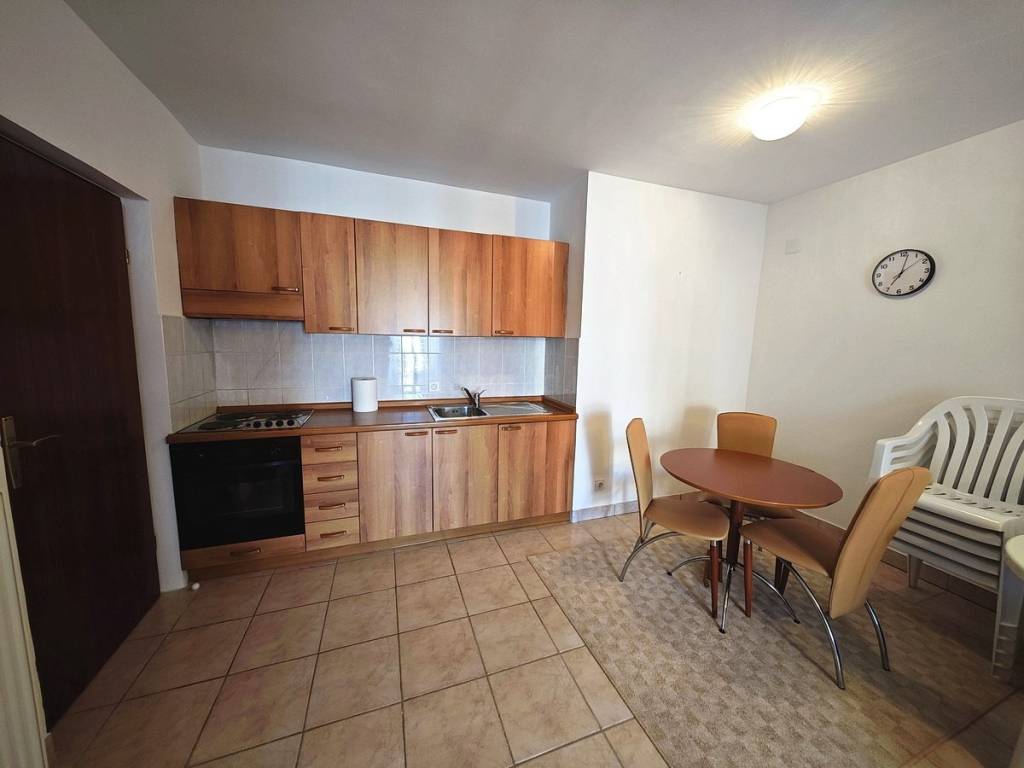 U vrlo dobrom i kvalitetnom objektu, apartman je smješten na 1. etaži. Površina ovog apartmana iznosi ukupno 48 m2. Tom površinom obuhvaćeni su ulazni hodnik, dnevni boravak i kuhinja s blagovaonicom, spavaća soba, kupaonica i natkriveni balkon. Odlično održavana unutrašnjost nekretnine je u potpunosti uređena kvalitetnim namještajem i svom potrebnom tehničkom opremom.