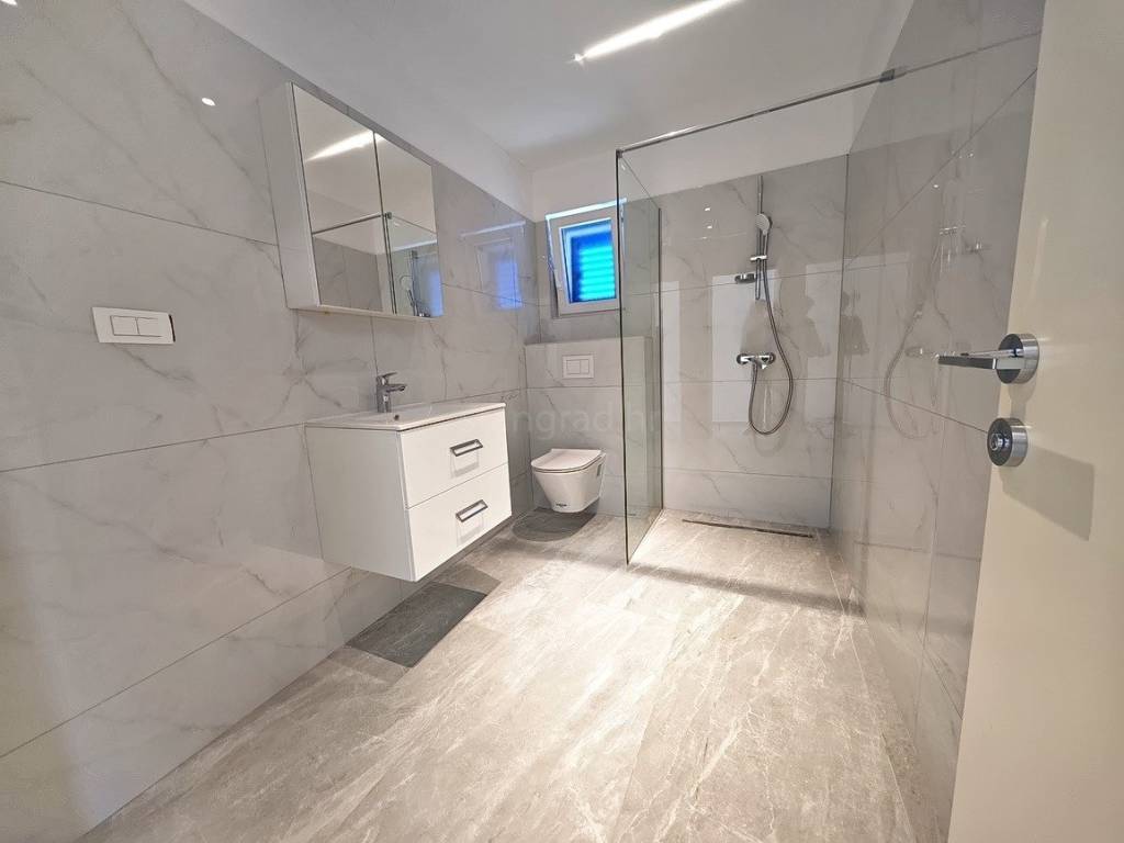 Suvremeno građena kuća se sastoji od prostora raspoređenog na ukupno 2 etaže. Kuća zauzima prostor ukupne površine 240 m2. U navedenoj površini sadržani su ulazni hodnik, dnevni boravak i kuhinja s blagovaonicom, spavaća soba, kupaonica, spremište i terasa. Unutarnji prostori nekretnine su osobito dobro održavani te u potpunosti opremljeni potrebnim tehničkim uređajima i vrlo kvalitetnim namještajem.