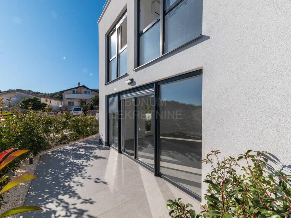 Kuća je u potpunosti dovršena i odmah useljiva. Opremljena je protuprovalnim vratima, aluminijskom stolarijom s električnim roletama, podnim grijanjem u kupaonicama te klima uređajem u svakoj prostoriji. Okoliš je uređen mediteranskim biljem, a parkirni prostor je popločan. Udaljenost do mora iznosi 300 metara, dok je centar mjesta na 1000 metara.
