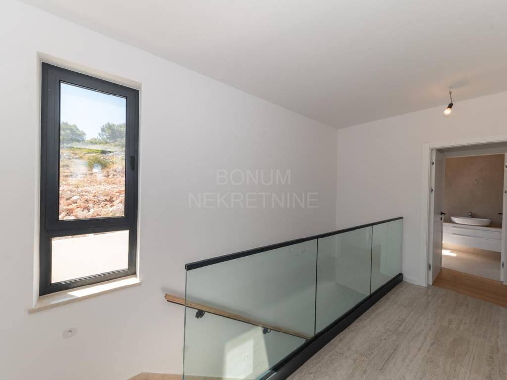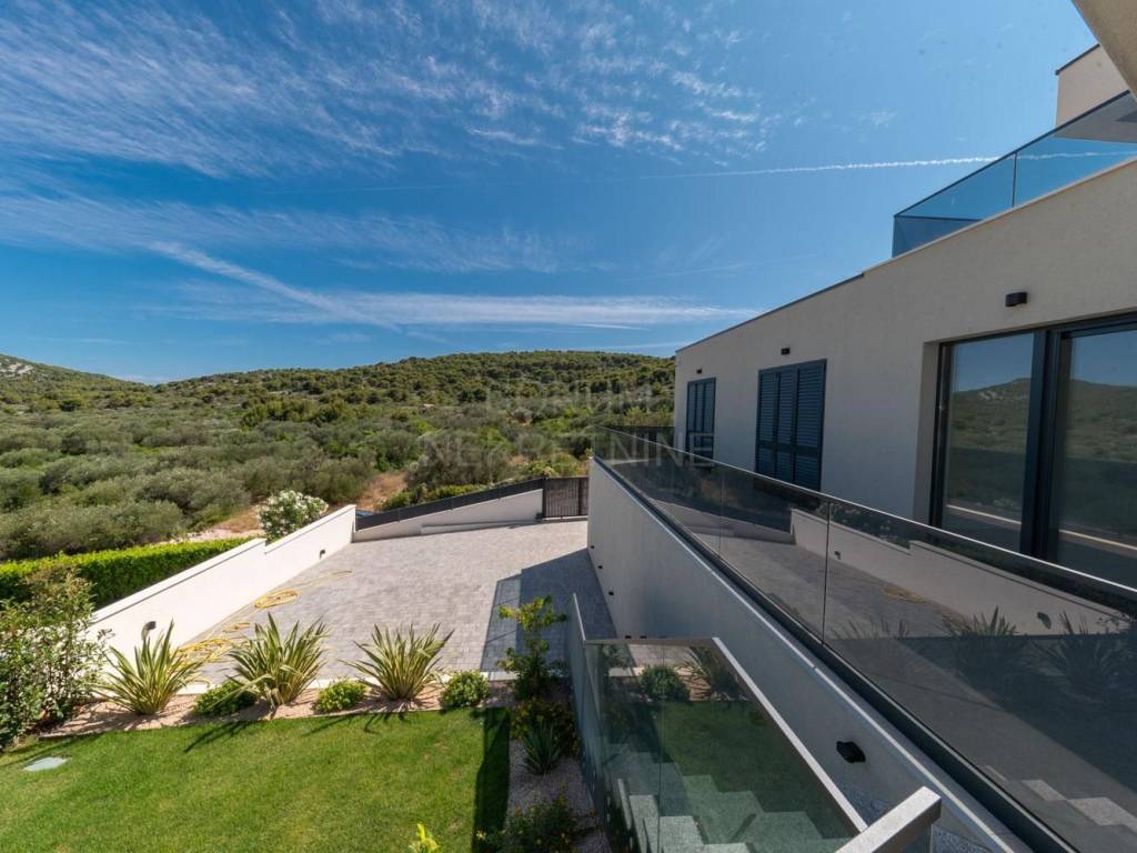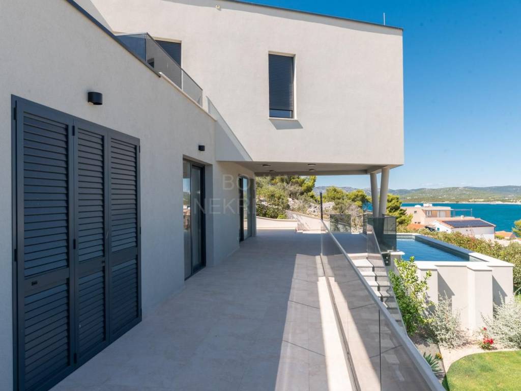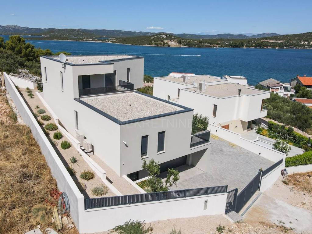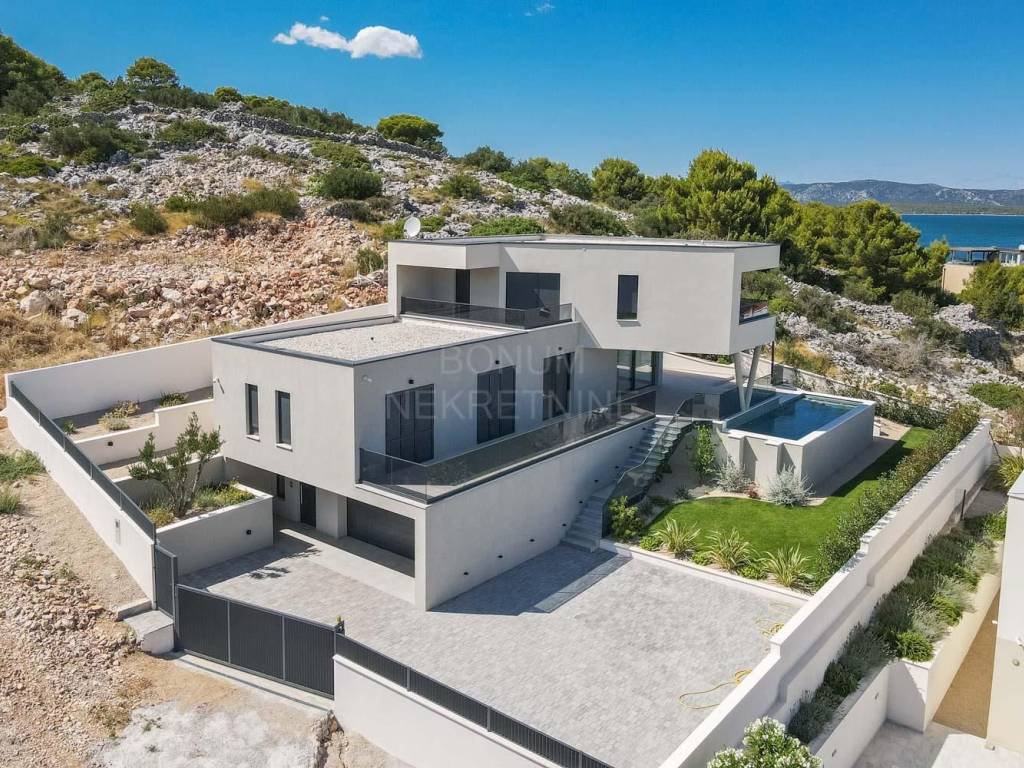 Moderna vila suvremenog dizajna smještena na atraktivnoj lokaciji na otoku Murteru, završena i spremna za useljenje, nudi luksuzan život s otvorenim pogledom na more. Pozicionirana na blagoj uzvisini, samo 150 metara od kristalno čistog mora i prekrasnih plaža, ova vila savršeno spaja eleganciju, funkcionalnost i vrhunsku kvalitetu gradnje.