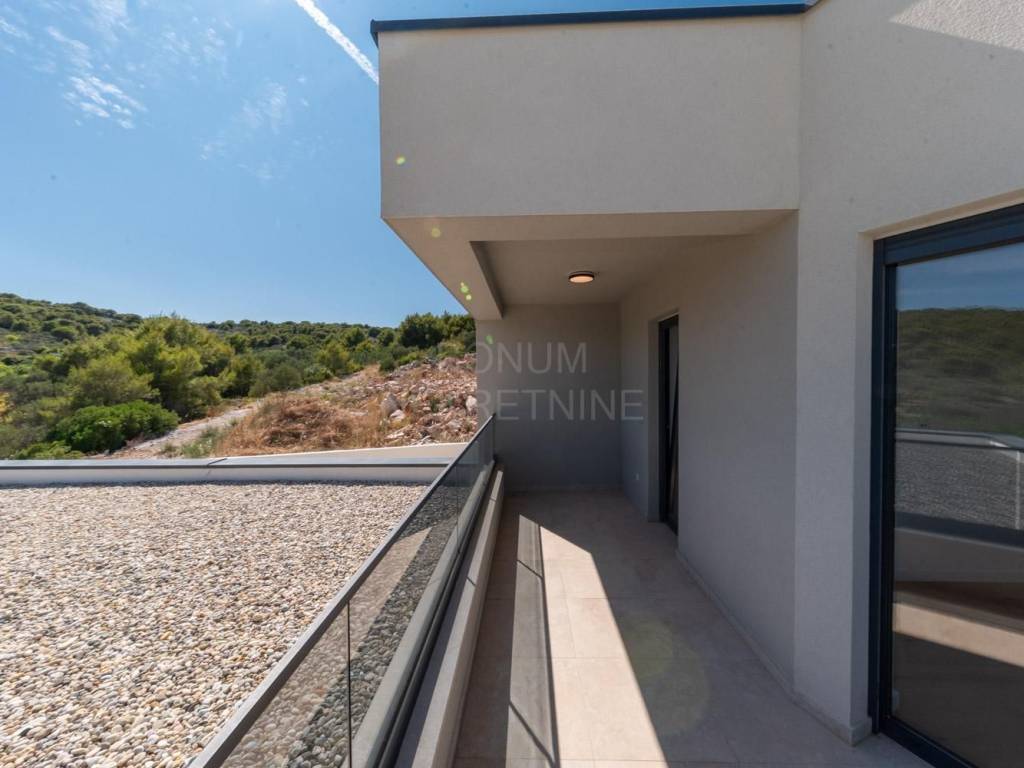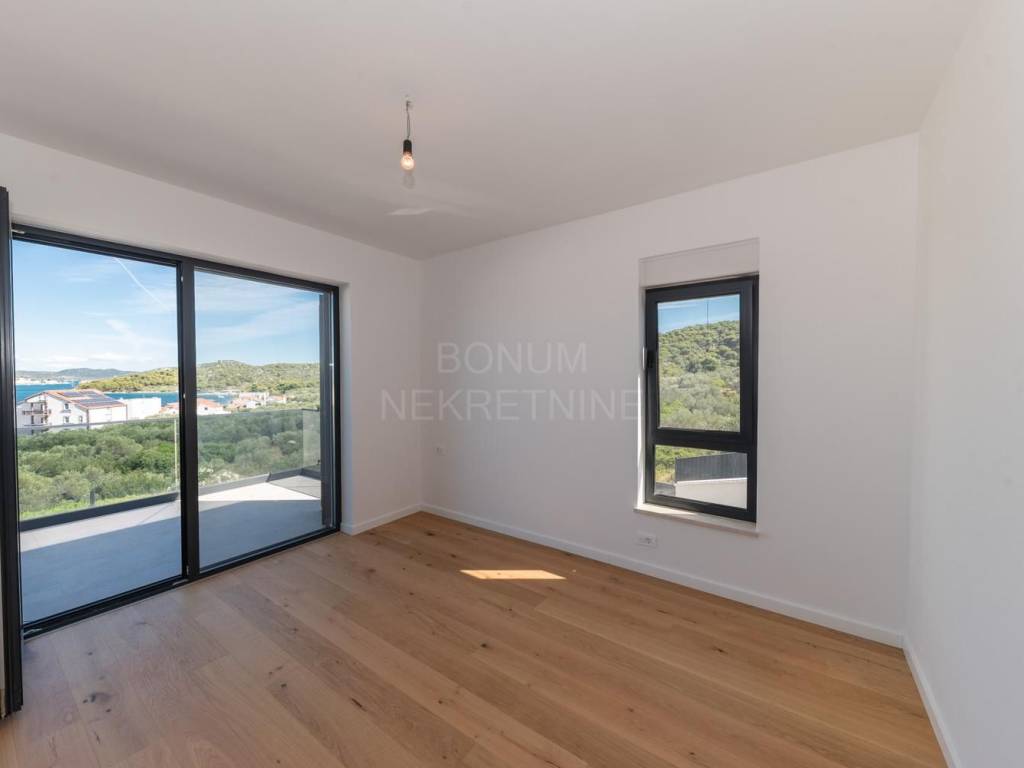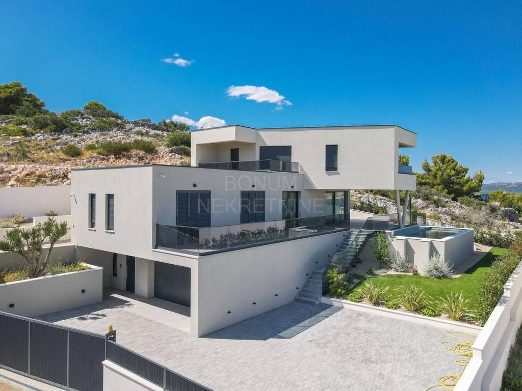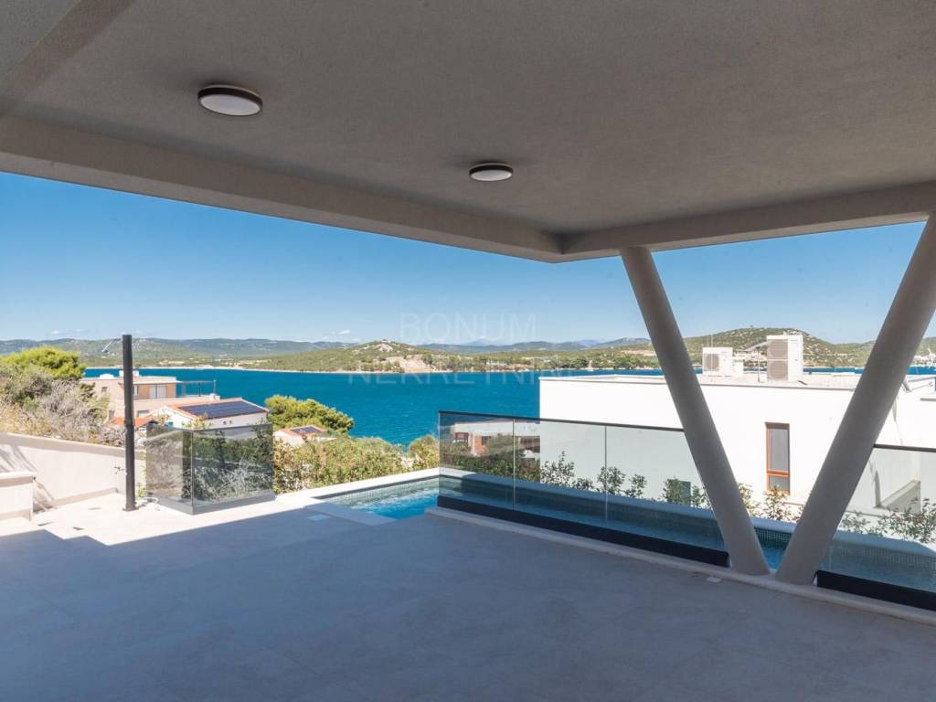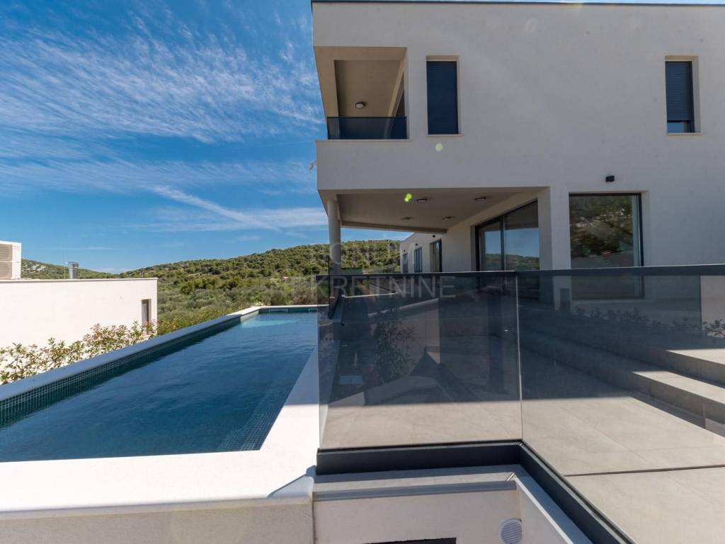 Moderna vila suvremenog dizajna smještena na atraktivnoj lokaciji na otoku Murteru, završena i spremna za useljenje, nudi luksuzan život s otvorenim pogledom na more. Pozicionirana na blagoj uzvisini, samo 150 metara od kristalno čistog mora i prekrasnih plaža, ova vila savršeno spaja eleganciju, funkcionalnost i vrhunsku kvalitetu gradnje.