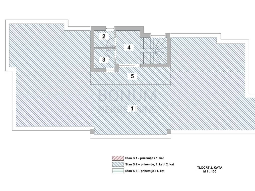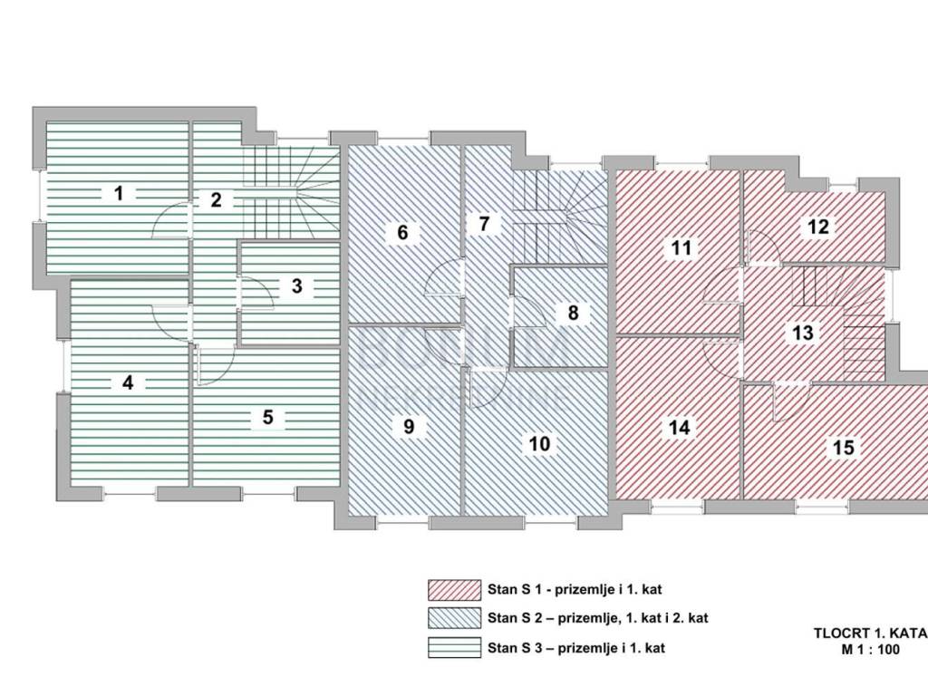 Kuća S1 je dio trojnog objekta i prostire se na dvije etaže — prizemlje i prvi kat, s ukupnom korisnom površinom od 115,11 m². Uz to, ima i vrt površine 11,59 m² te osigurana dva parkirna mjesta. Prizemlje kuće obuhvaća prostrani dnevni boravak s kuhinjom i blagovaonicom, s izlazom na veliku terasu i vrt, kao i modernu kupaonicu. Unutarnje stepenice vode na prvi kat gdje se nalaze hodnik, tri prostrane spavaće sobe i još jedna kupaonica. Kuća će biti opremljena protuprovalnim vratima, PVC stolarijom s komarnicima i električnim podizačima roleta, visokokvalitetnim keramičkim podnim oblogama, podnim grijanjem u svim kupaonicama te klima uređajima u dnevnom boravku i svim spavaćim sobama. Također, imat će instalacije za telefon i internet te satelitsku TV.
