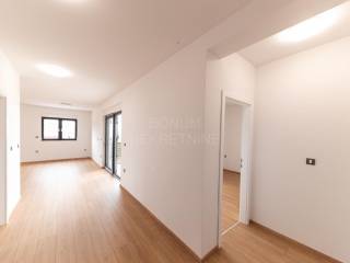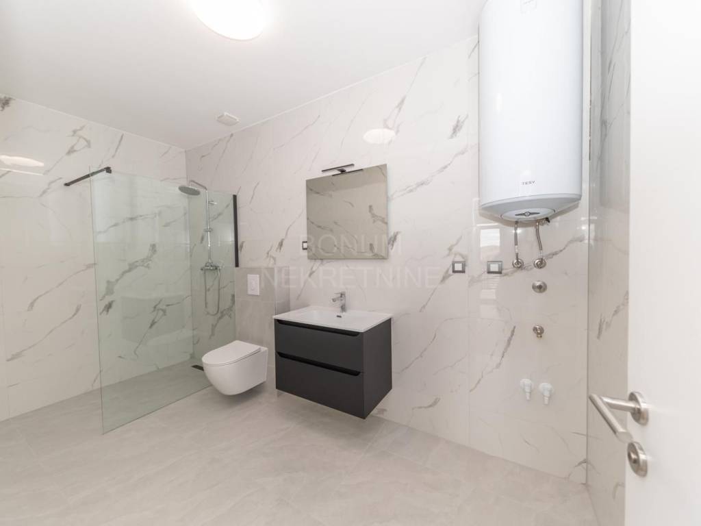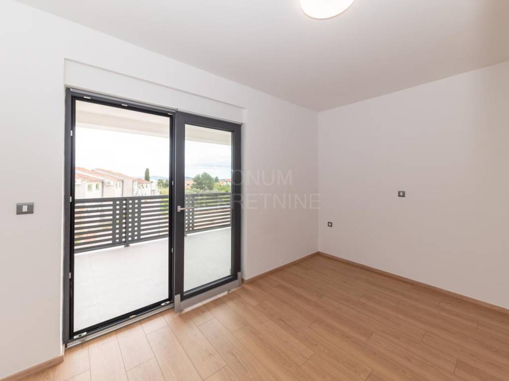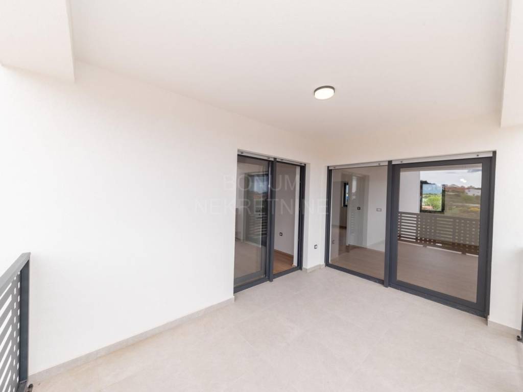 Na prodaju je apartman na prvom katu manje stambene zgrade u Vodicama, smješten u mirnom dijelu grada. Stan se sastoji od ulaznog prostora, dvije spavaće sobe, kupaonice, dnevnog boravka s kuhinjom i blagovaonicom te natkrivene terase. Ukupna neto korisna površina apartmana iznosi 74,76 m² te natkrivena terasa 9,59 m2. Apartman je opremljen klima uređajem, podno grijanje u kupaoni te ima funkcionalan raspored i puno prirodnog svjetla.