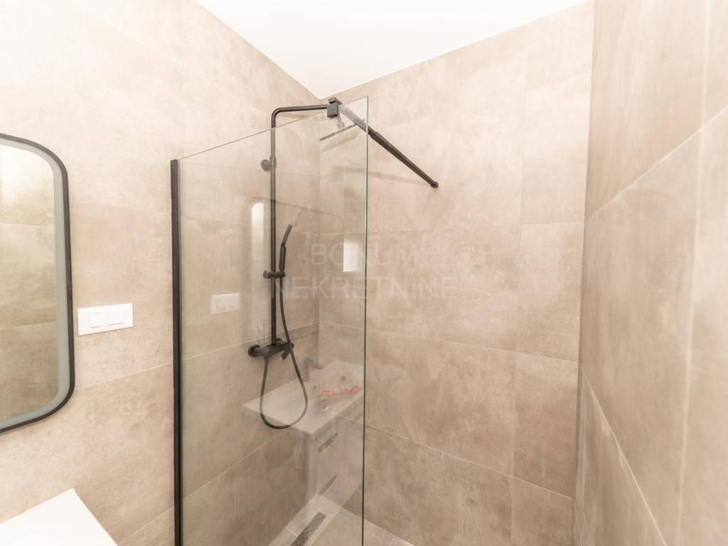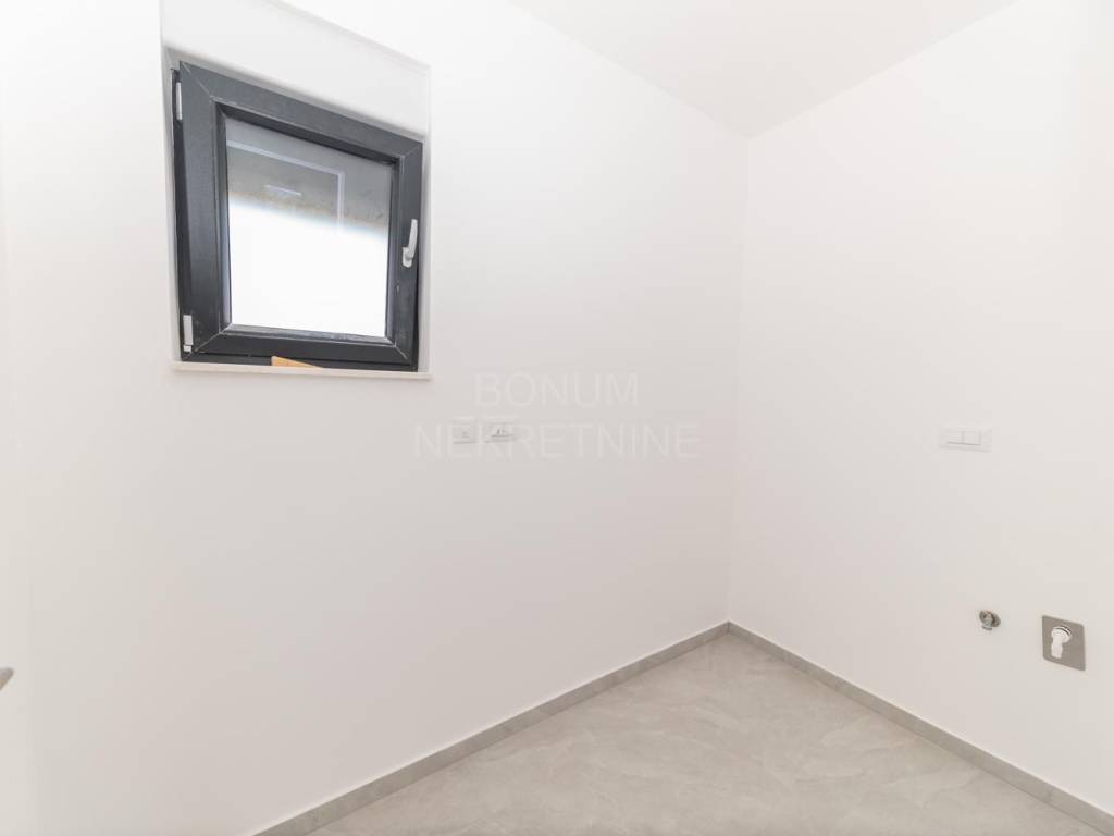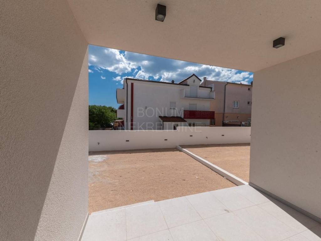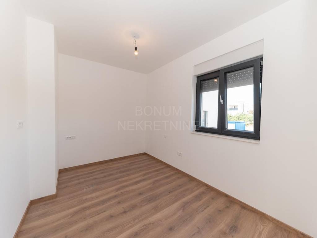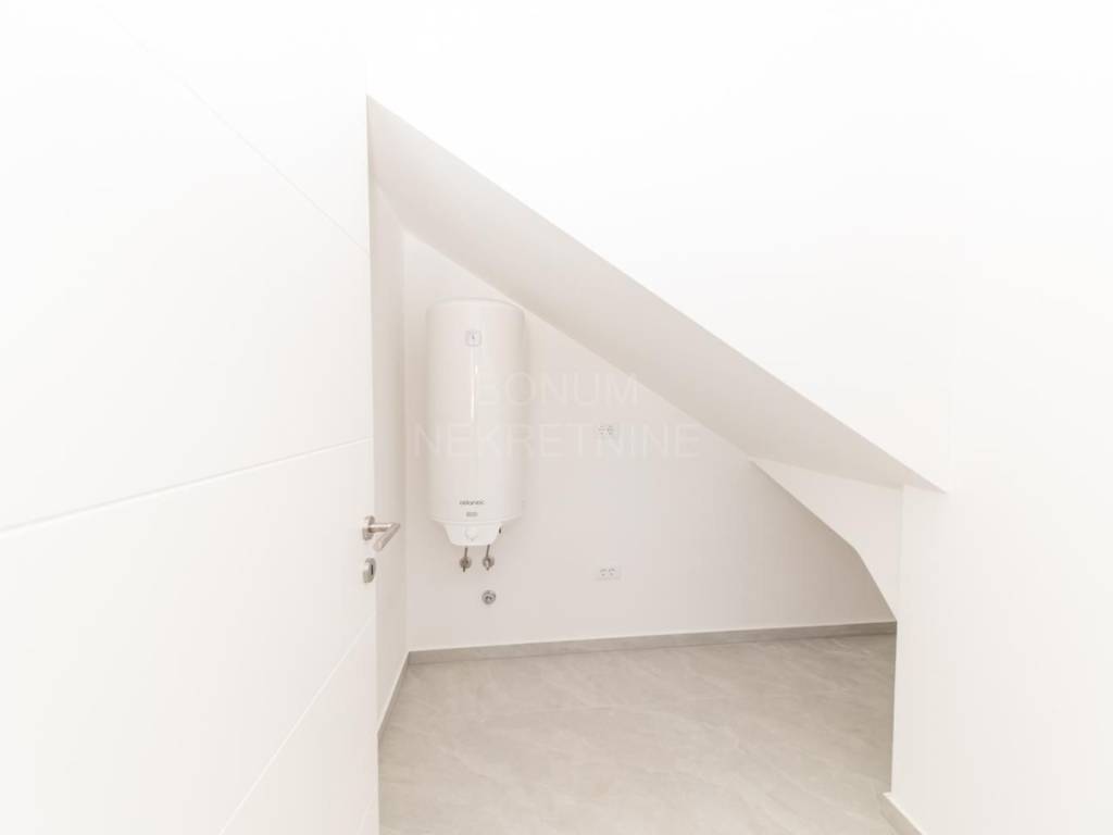 Ovaj funkcionalan dvoetažni stan površine 125,82 m² savršen je za one koji traže udobnost i privatnost. U prizemlju se nalazi dnevni dio s kuhinjom, blagovaonicom, kupaonicom i lođom, dok se na katu nalaze tri spavaće sobe, kupaonica, vešeraj, predsoblje i dvije lođe. Stan ima vrt od 35,88 m² i dva parkirna mjesta.