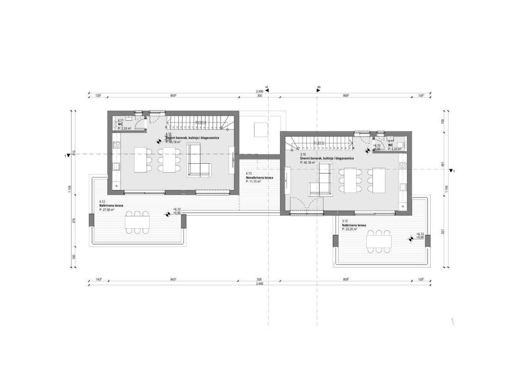 Unutarnjim stubištem dolazi se do drugog kata, gdje se otvara prostrani dnevni boravak povezan s kuhinjom i blagovaonicom u jedinstven, otvoreni prostor. Iz dnevnog se izlazi na natkrivenu terasu od 27,58 m² i nenatkrivenu terasu od 11,15 m2 koje se pruža očaravajući pogled na more i okolni krajolik. Na istoj etaži nalazi se i dodatni toalet, što osigurava maksimalnu praktičnost.
